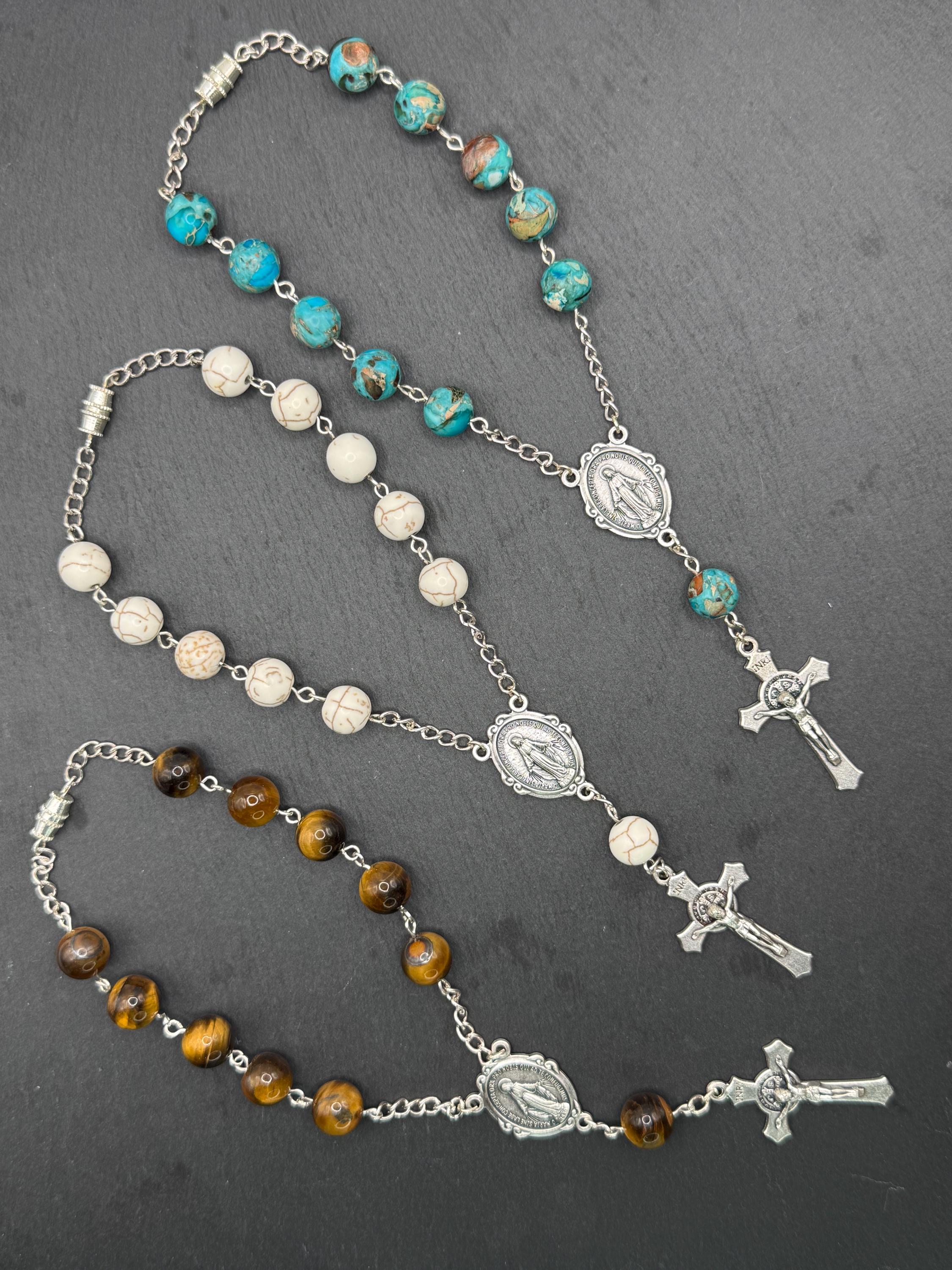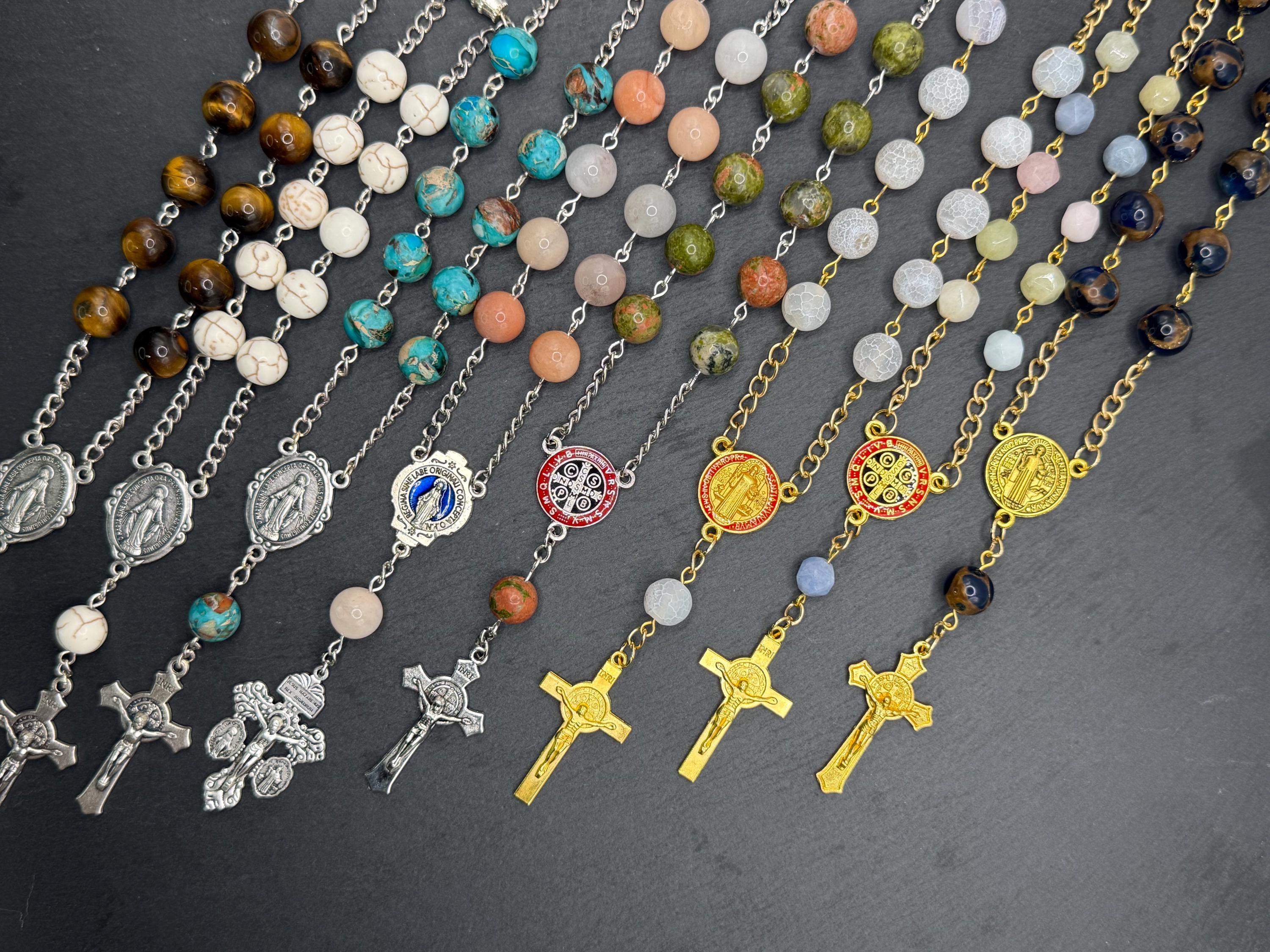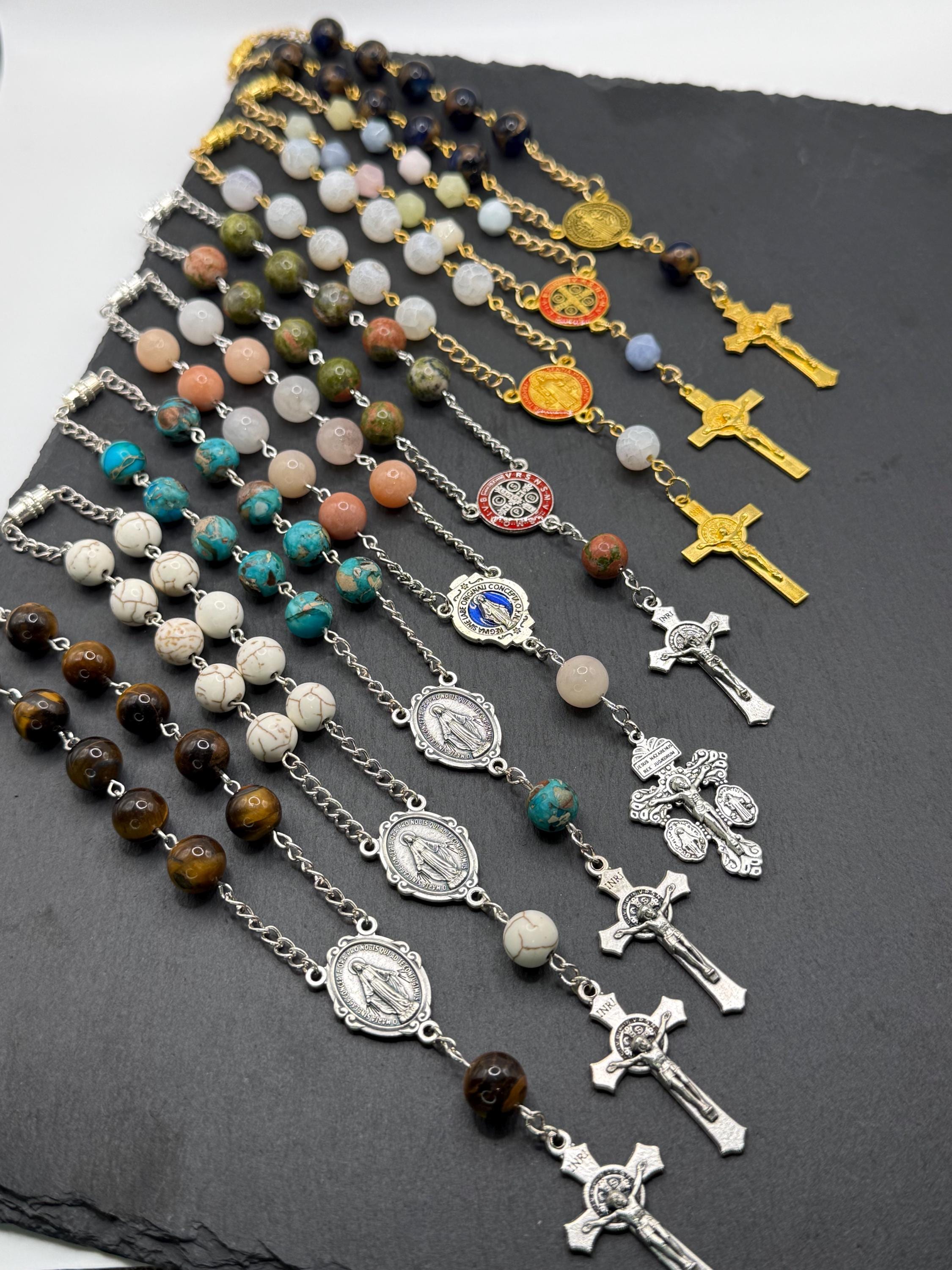 Elevate your daily commute with a gemstone car rosary designed to bring peace and spiritual comfort on the road. This one decade prayer beads accessory, featuring a secure barrel clasp, hangs beautifully from your car mirror, blending faith and function effortlessly. Whether you seek a Catholic faith gift or a personal devotional tool, these prayer beads offer a meaningful connection during travel.