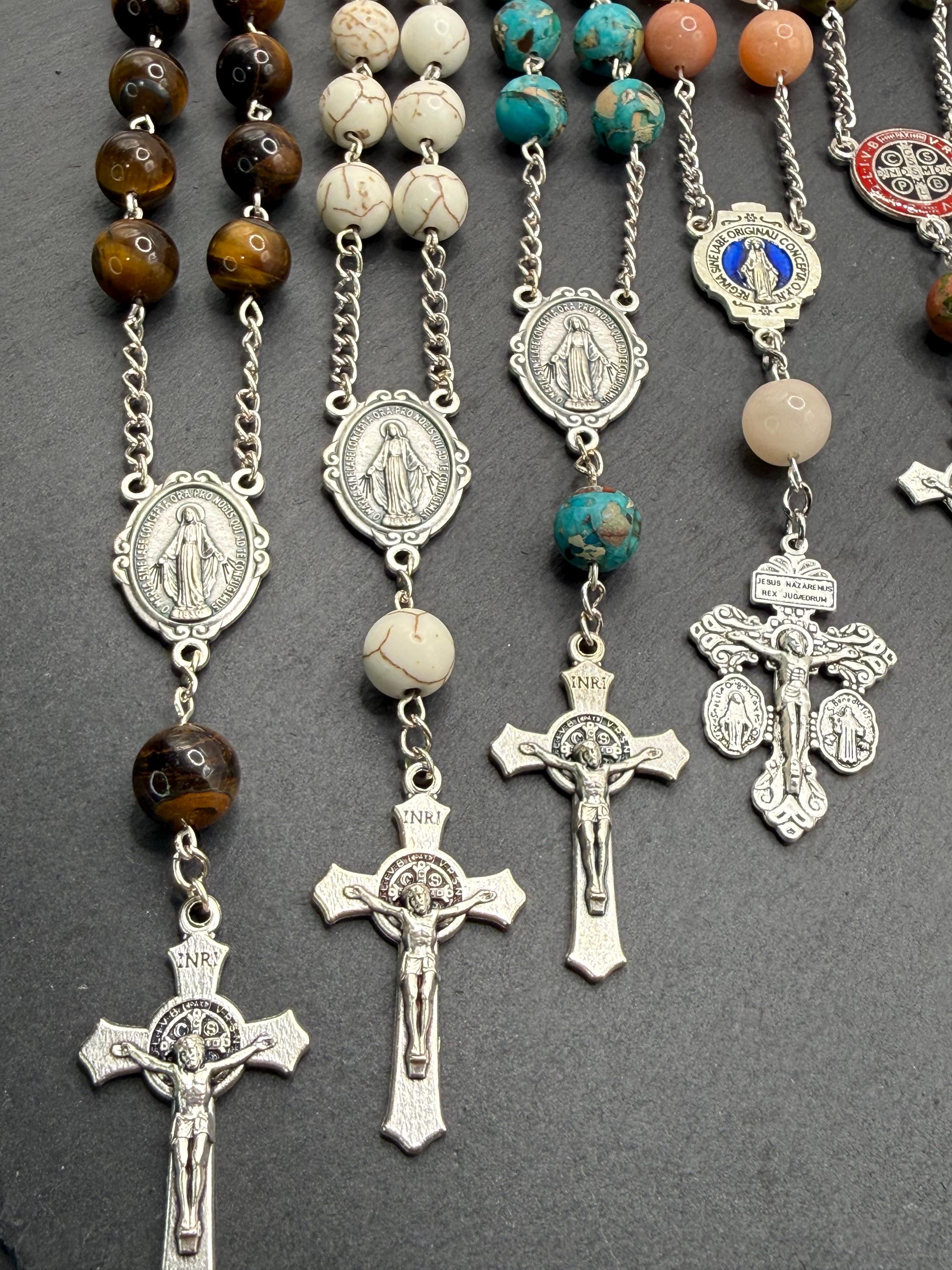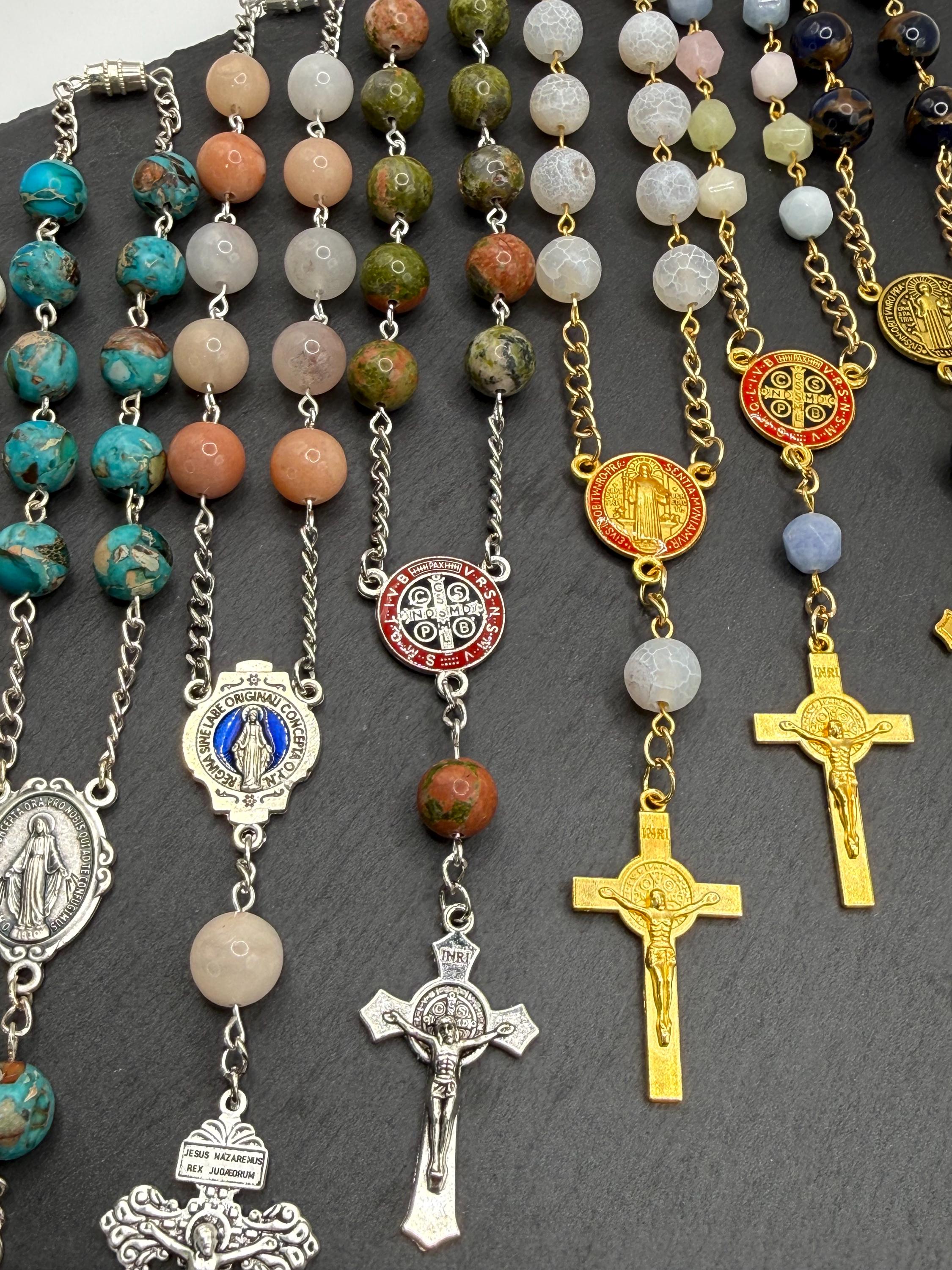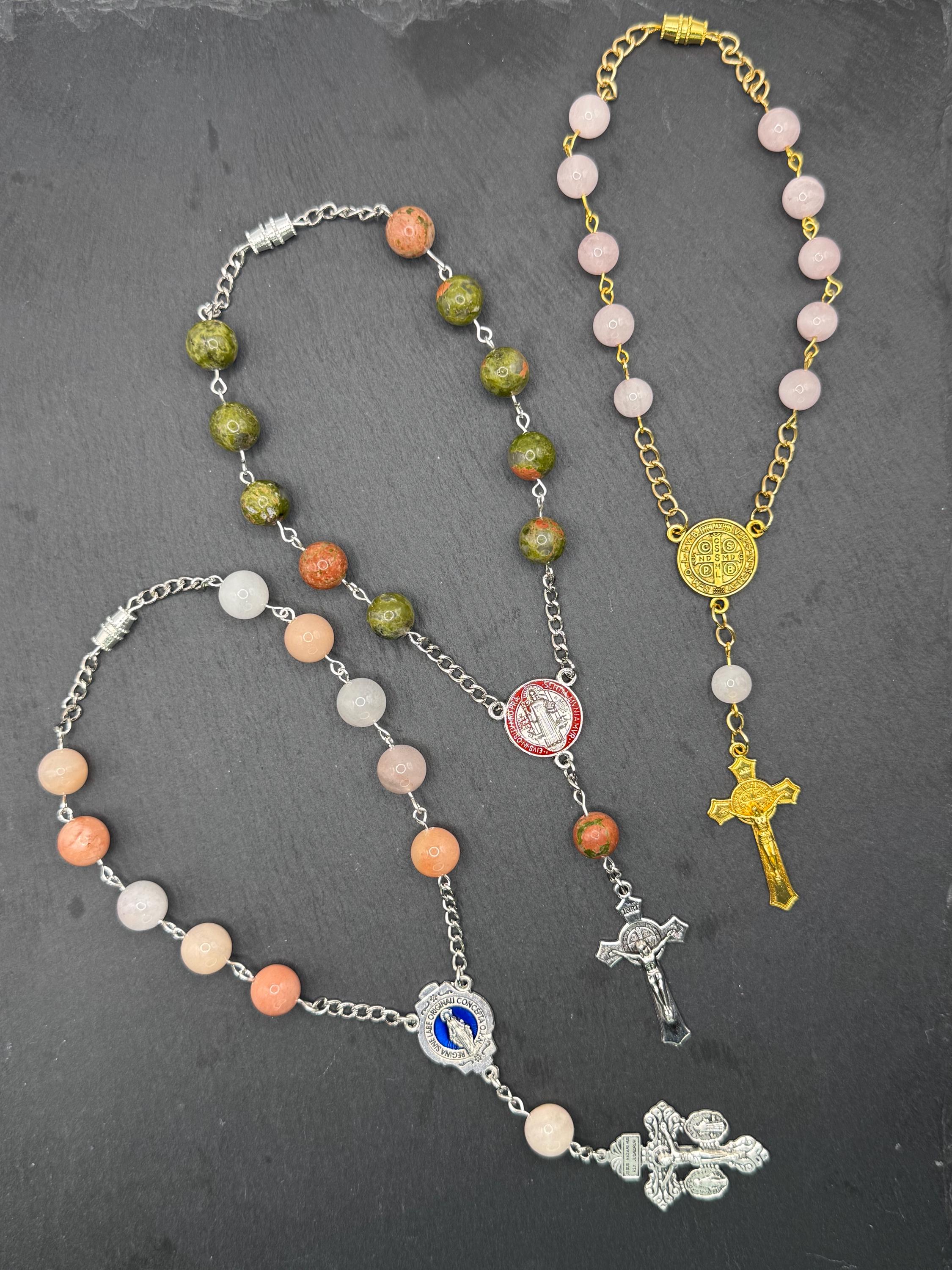 Elevate your daily commute with a gemstone car rosary designed to bring peace and spiritual comfort on the road. This one decade prayer beads accessory, featuring a secure barrel clasp, hangs beautifully from your car mirror, blending faith and function effortlessly. Whether you seek a Catholic faith gift or a personal devotional tool, these prayer beads offer a meaningful connection during travel.