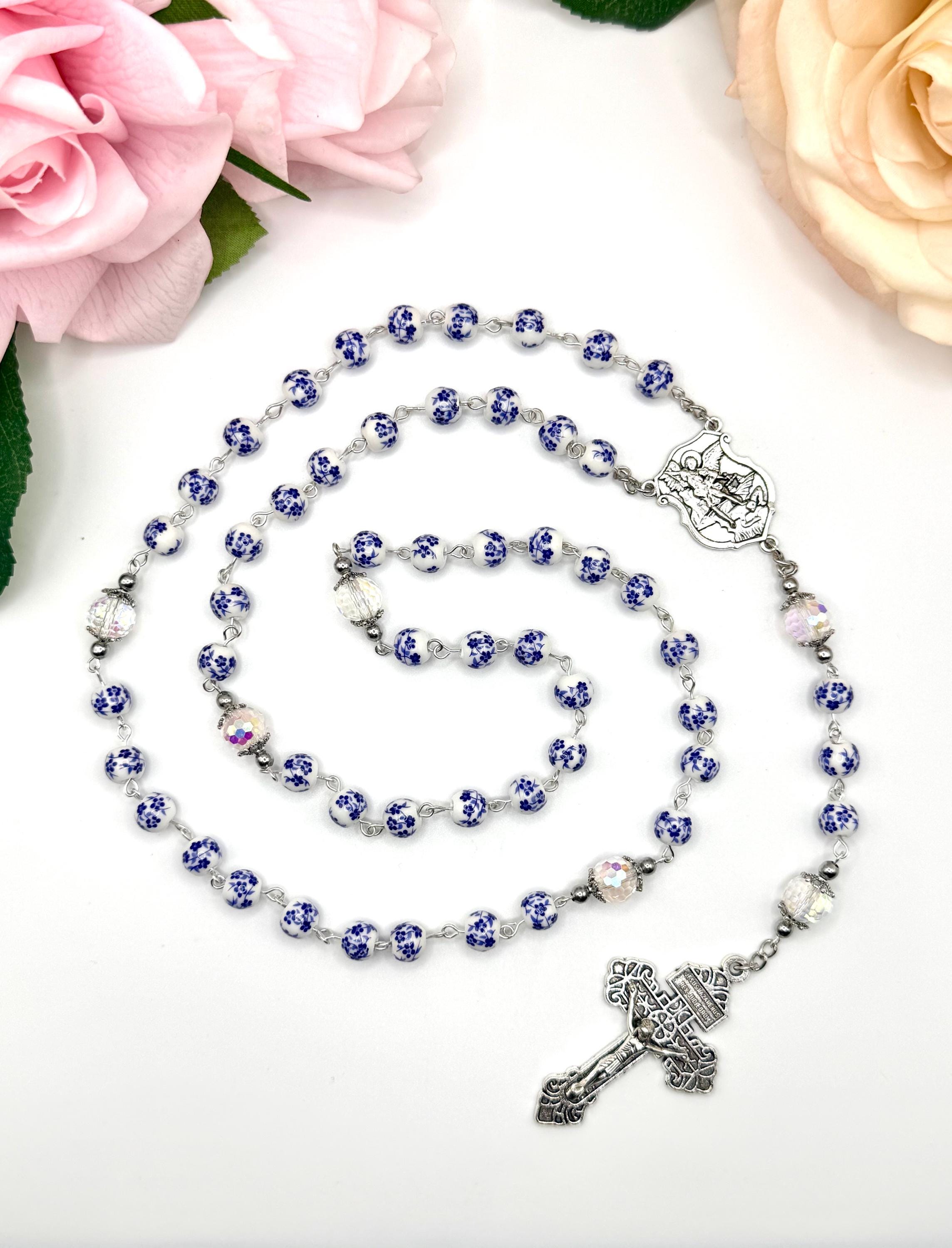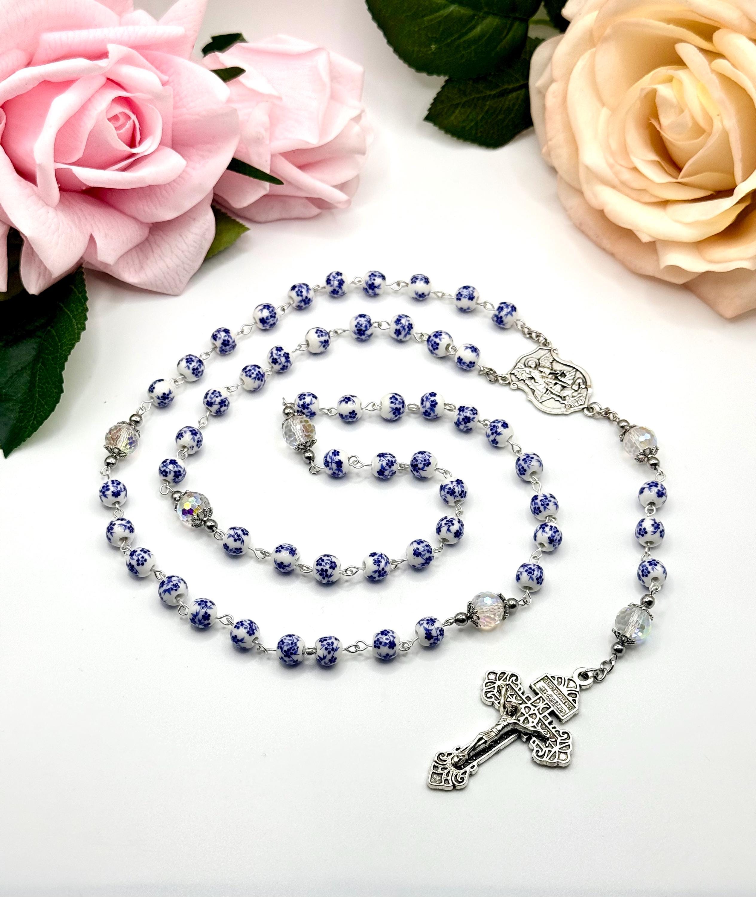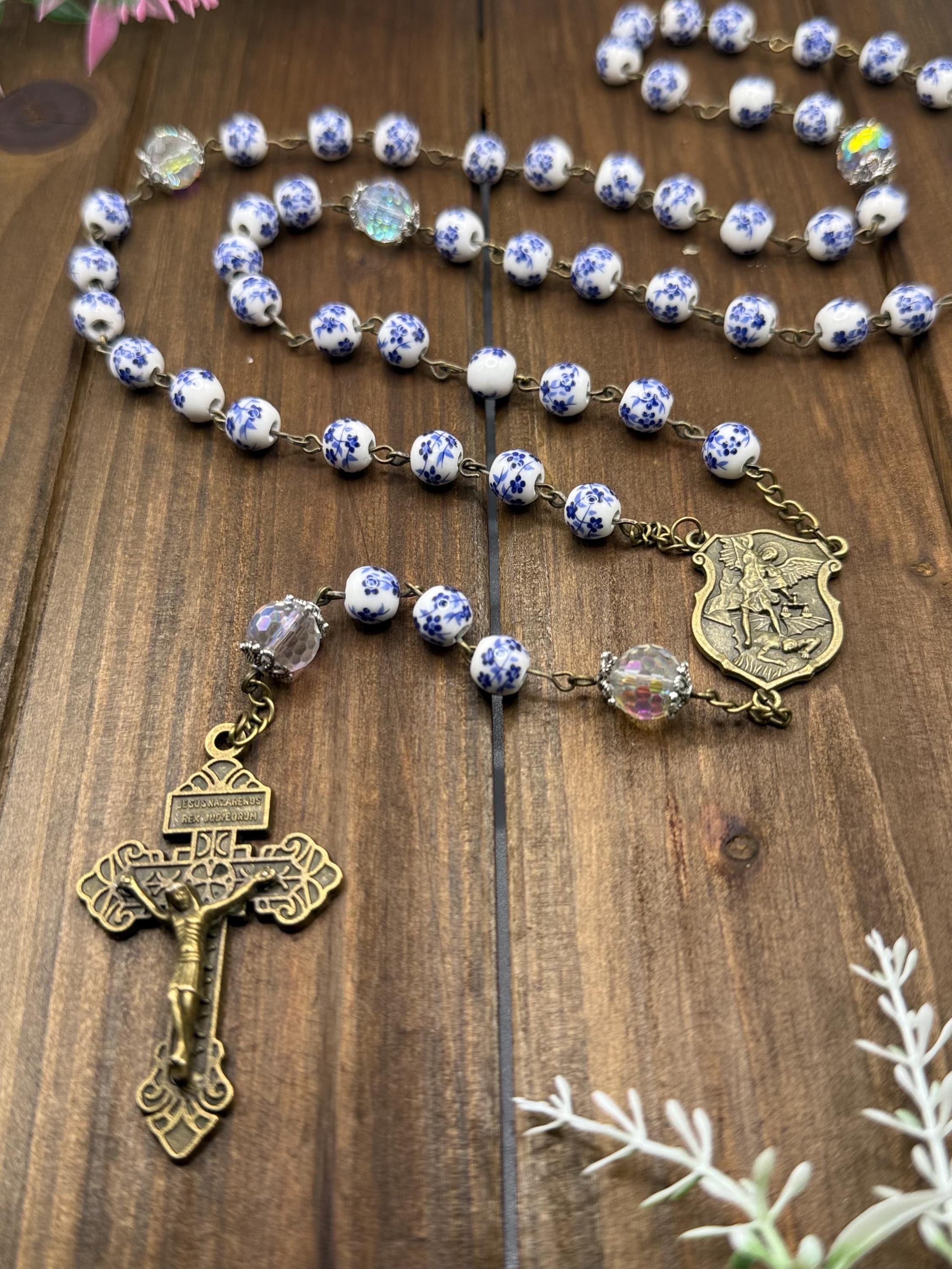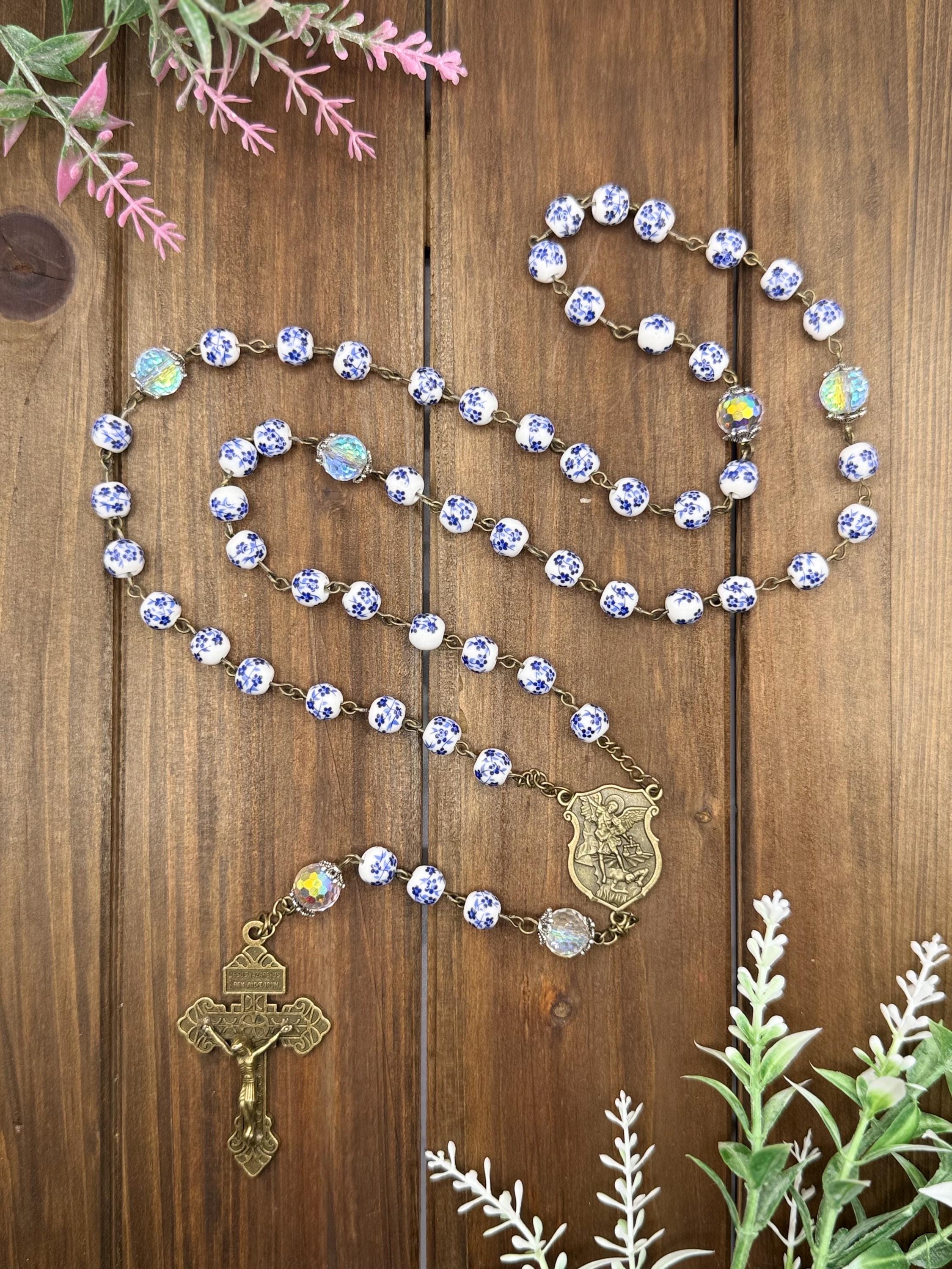Discover a rosary that beautifully blends tradition and artistry, featuring delicate blue flower ceramic beads that inspire peaceful prayer moments. This antique rosary, accented with a Saint Michael medal, offers both spiritual significance and vintage charm for daily devotion or special occasions. Crafted with care, it makes a thoughtful Catholic gift cherished for years.