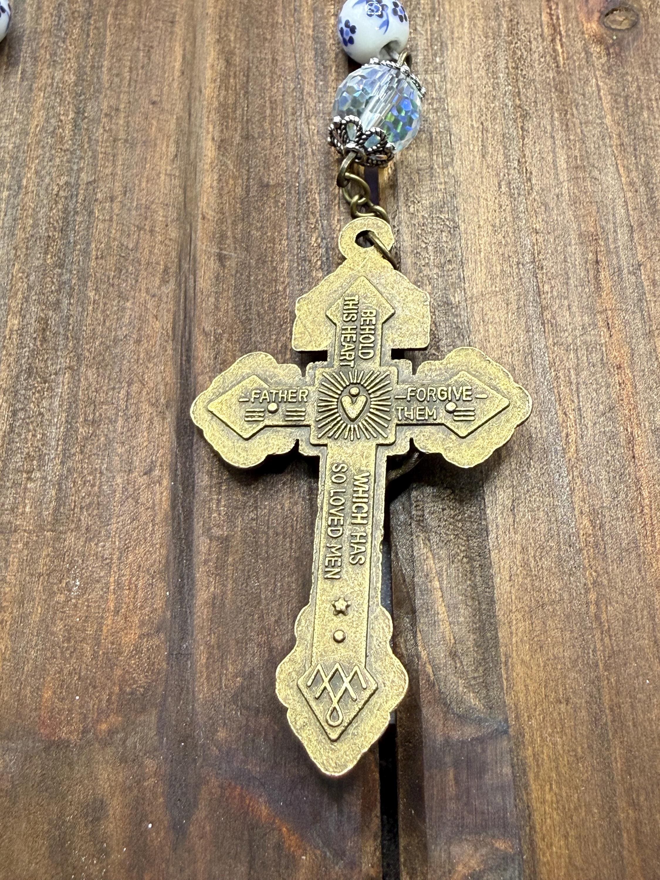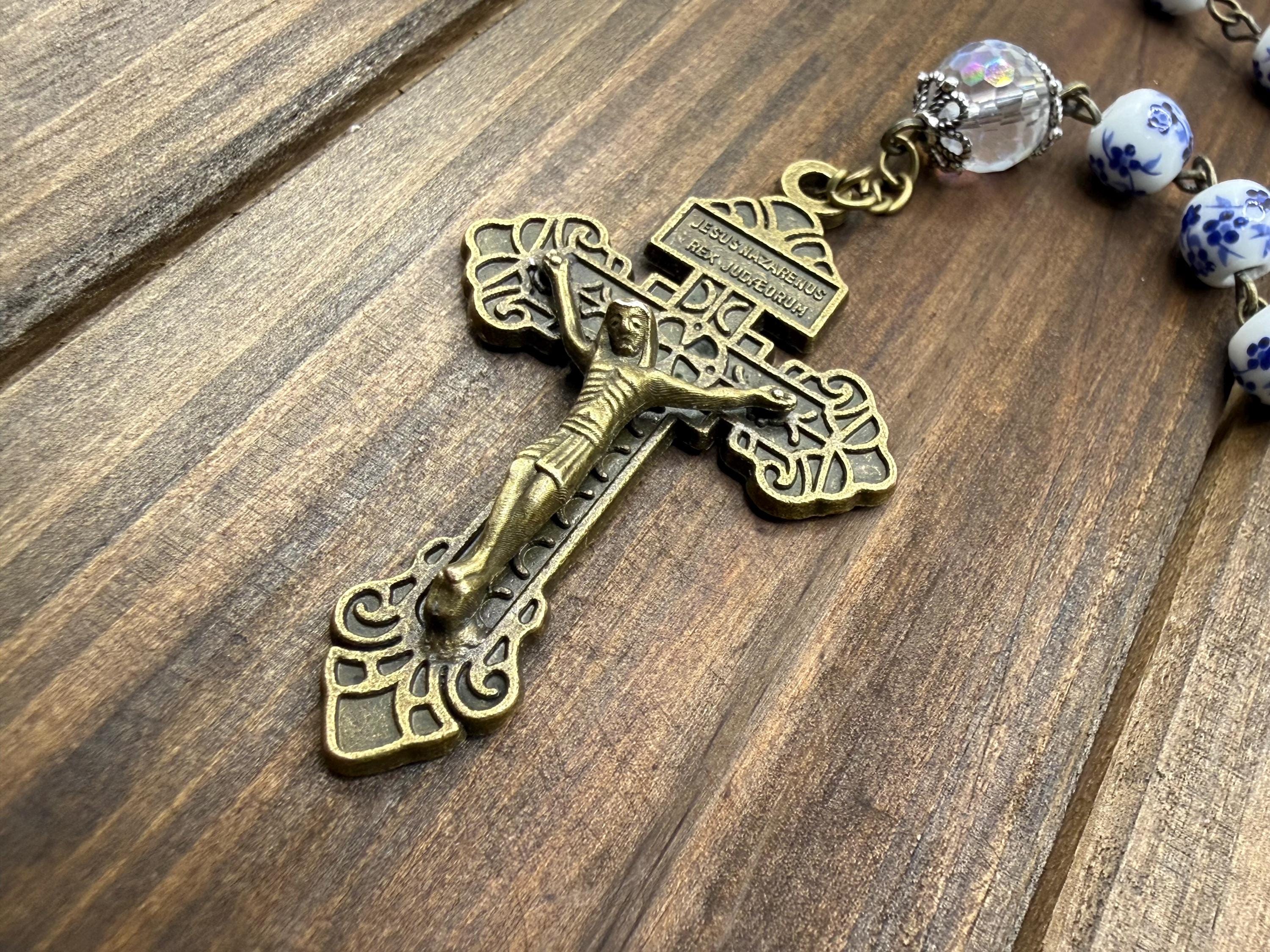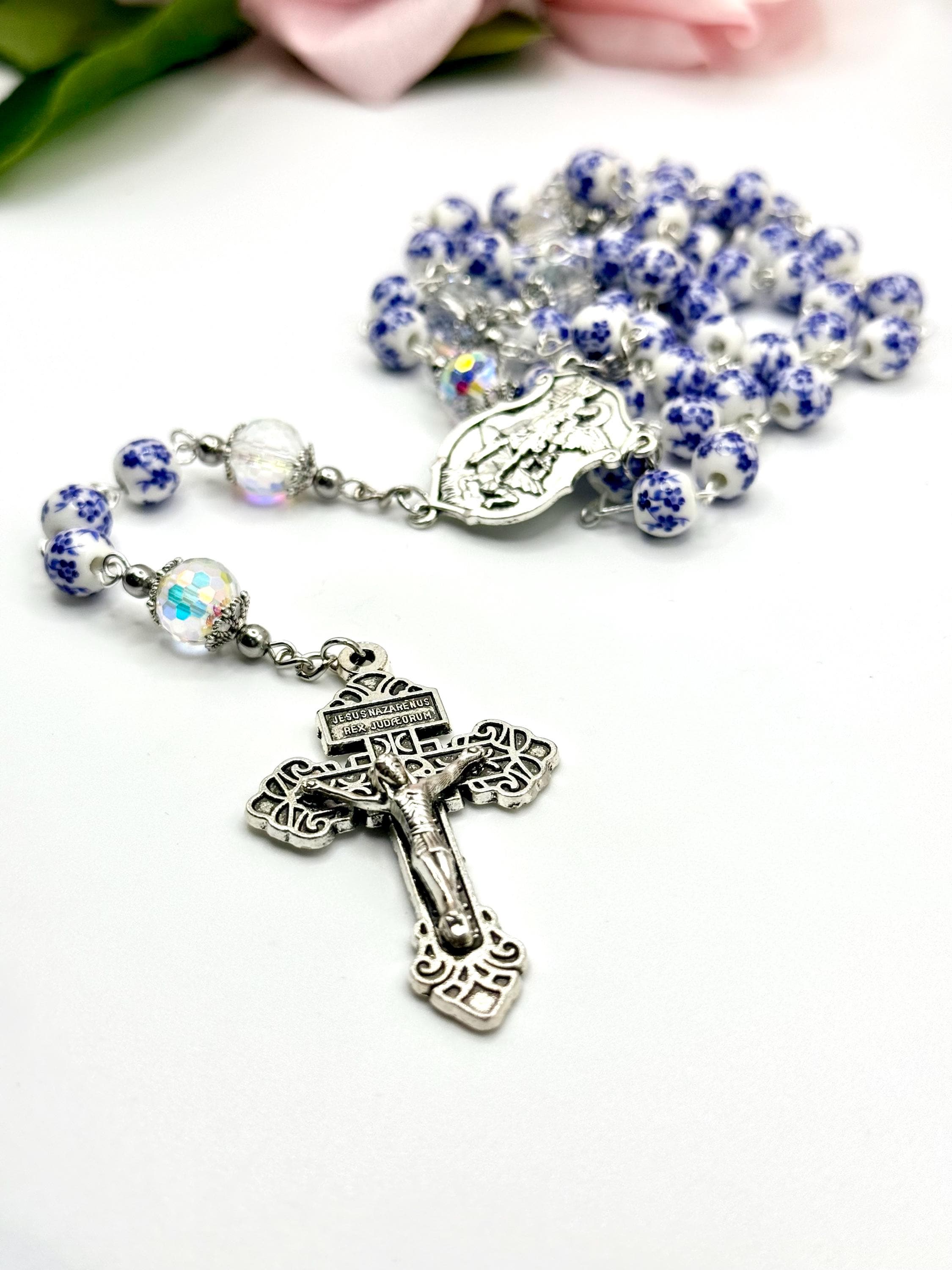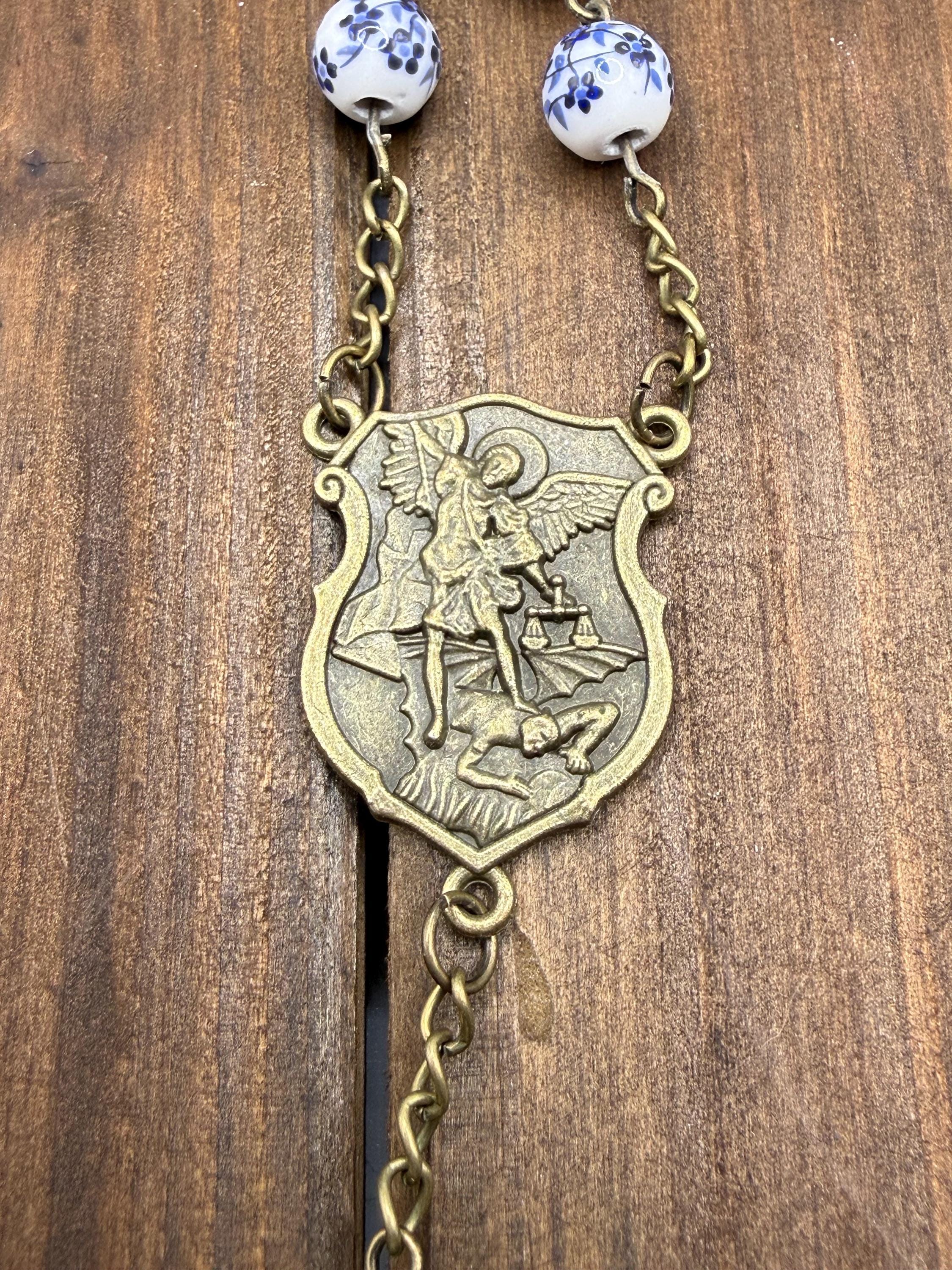 Discover a rosary that beautifully blends tradition and artistry, featuring delicate blue flower ceramic beads that inspire peaceful prayer moments. This antique rosary, accented with a Saint Michael medal, offers both spiritual significance and vintage charm for daily devotion or special occasions. Crafted with care, it makes a thoughtful Catholic gift cherished for years.
