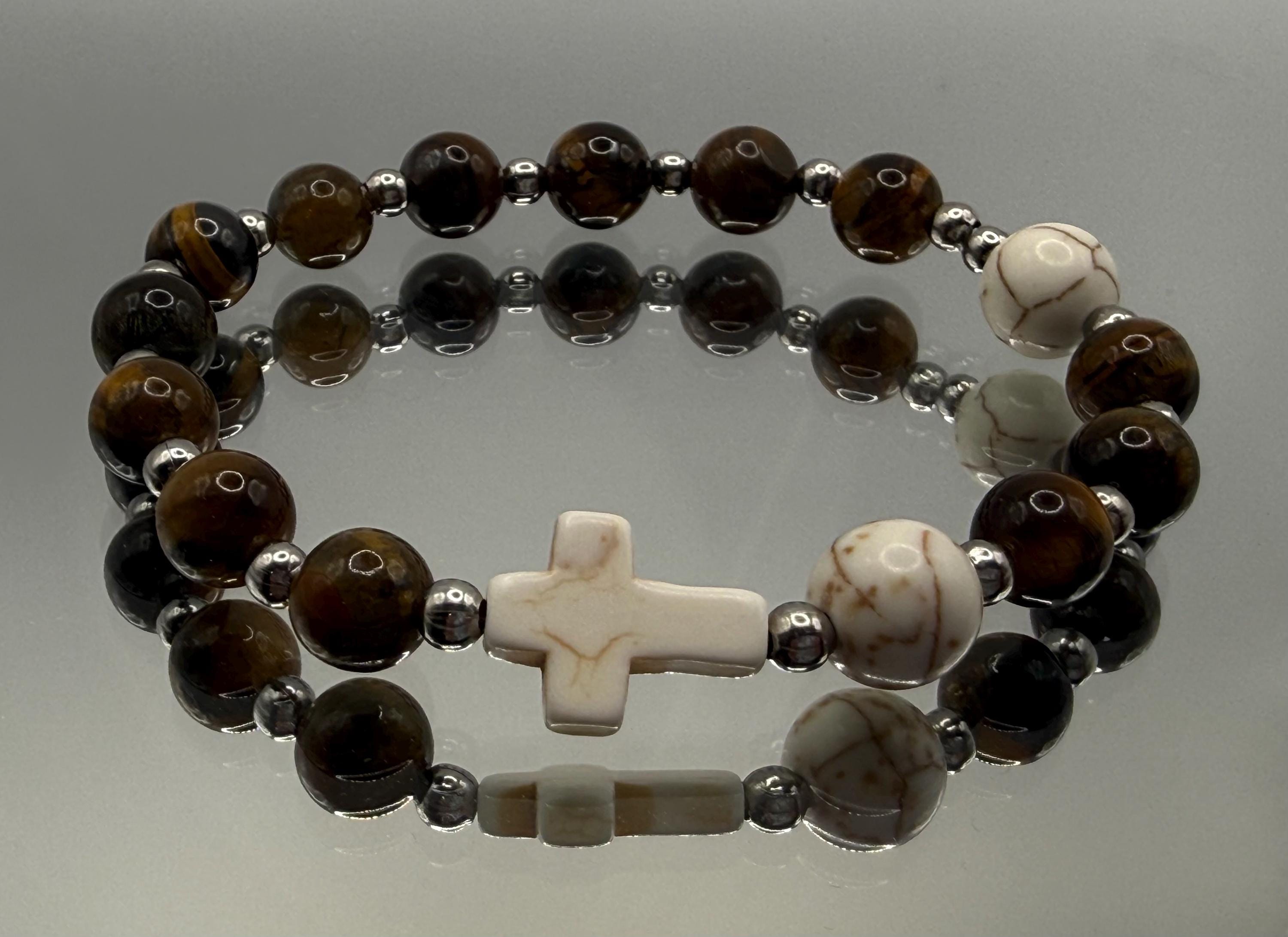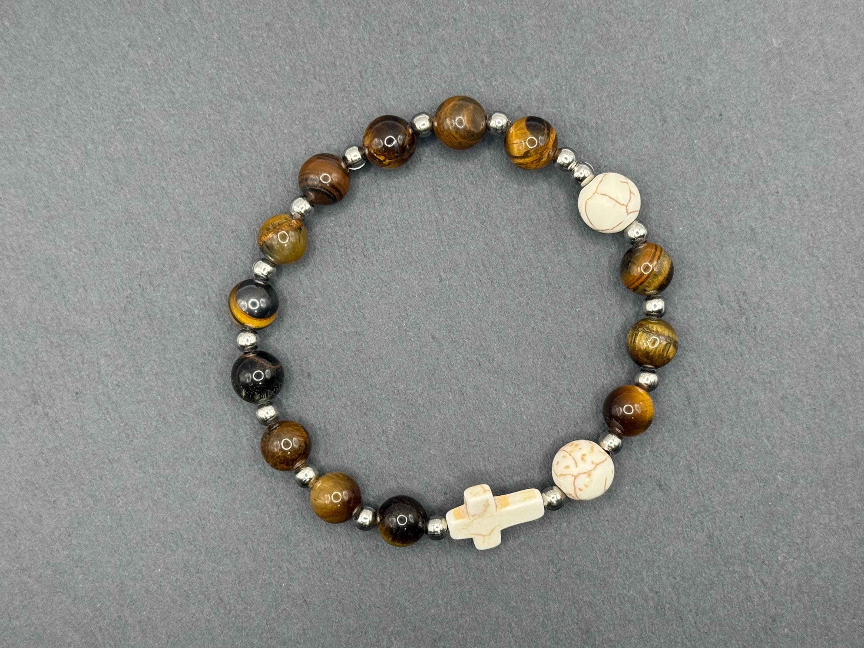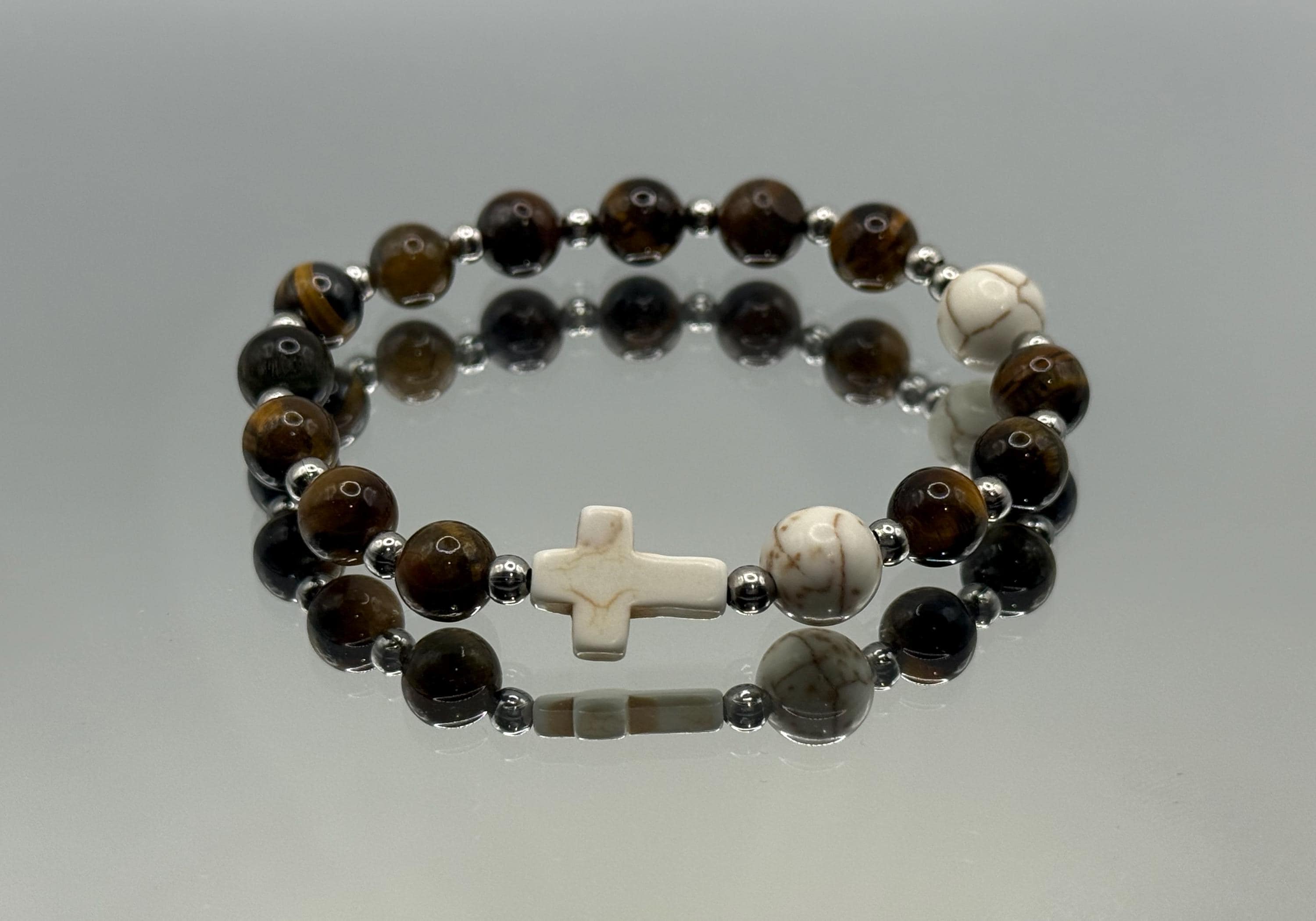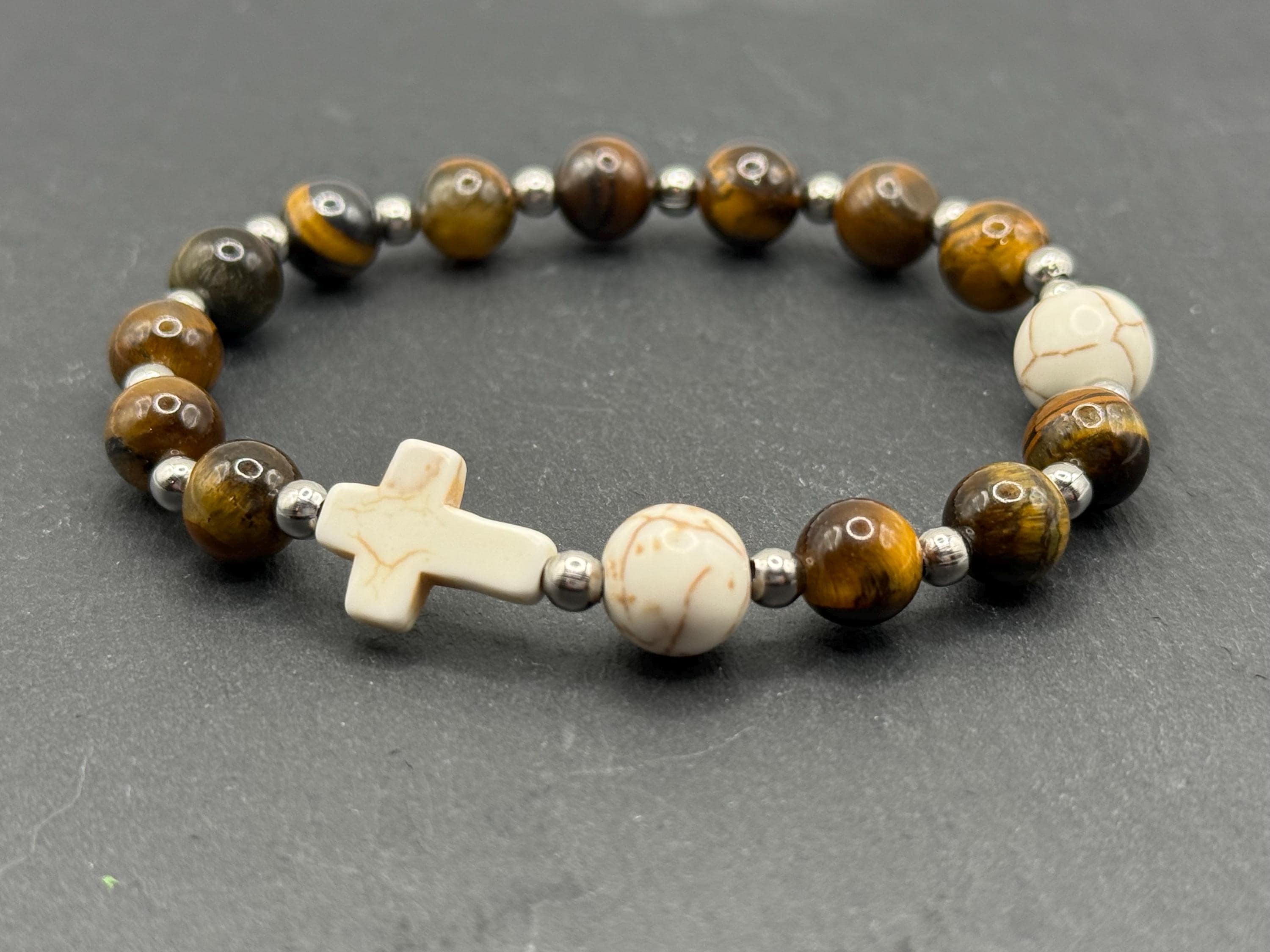 Experience a meaningful blend of faith and style with this men's rosary bracelet, crafted to inspire devotion and confidence. Featuring genuine Tiger’s Eye beads paired with Howlite prayer beads, this elegant men’s rosary serves as a powerful faith reminder gift for any occasion. Each piece is designed to support your spiritual journey while adding a touch of refined masculinity.