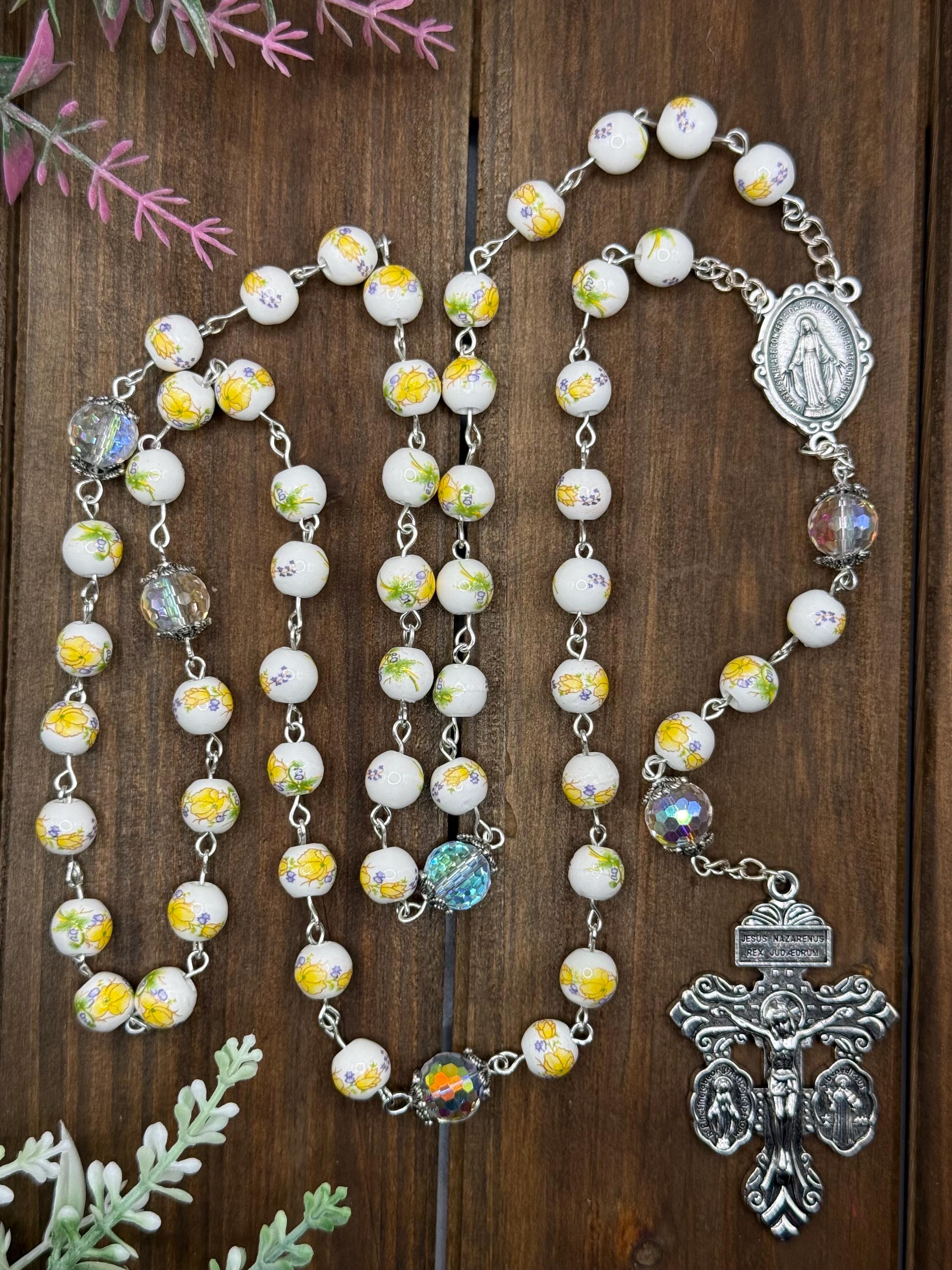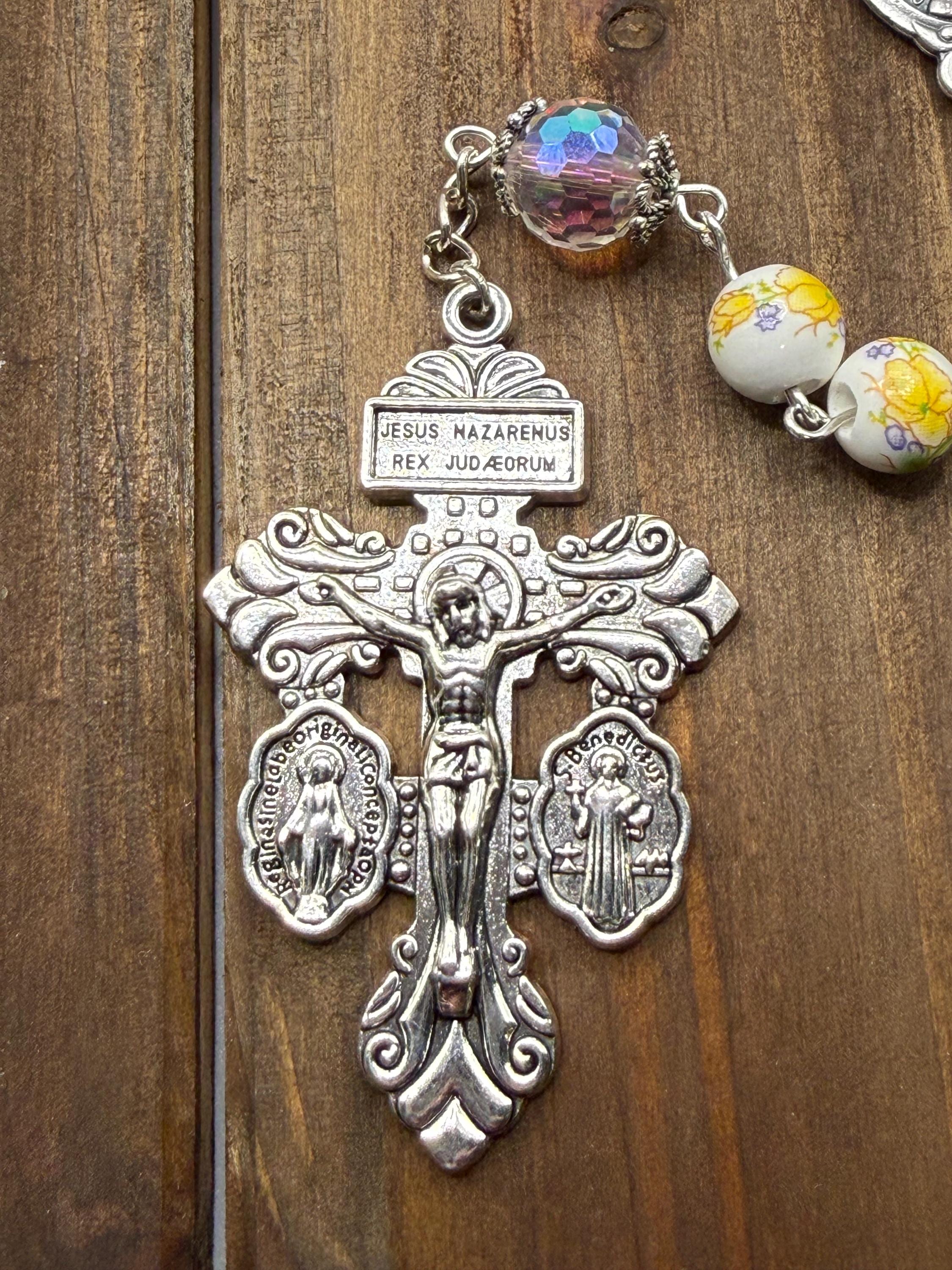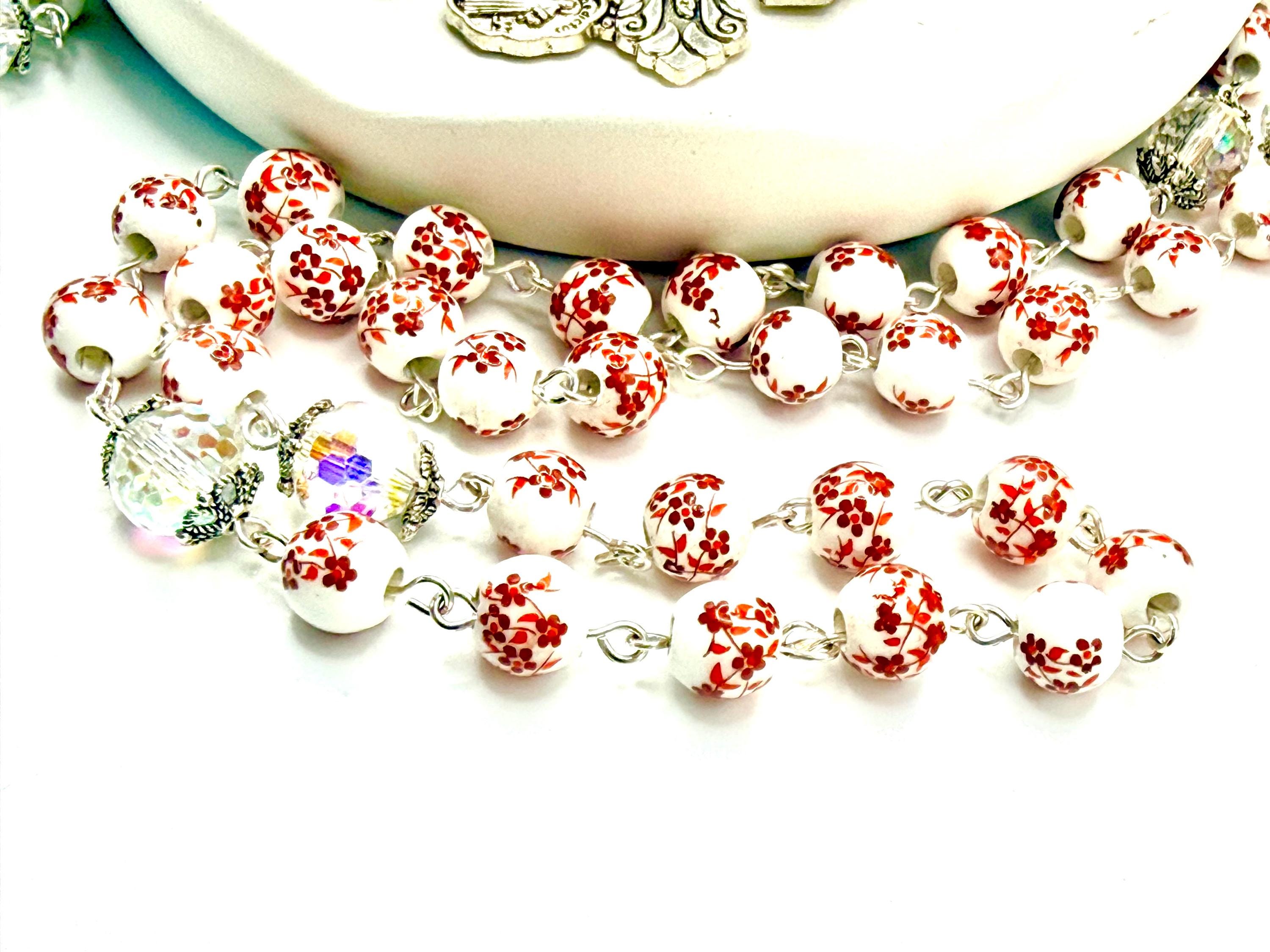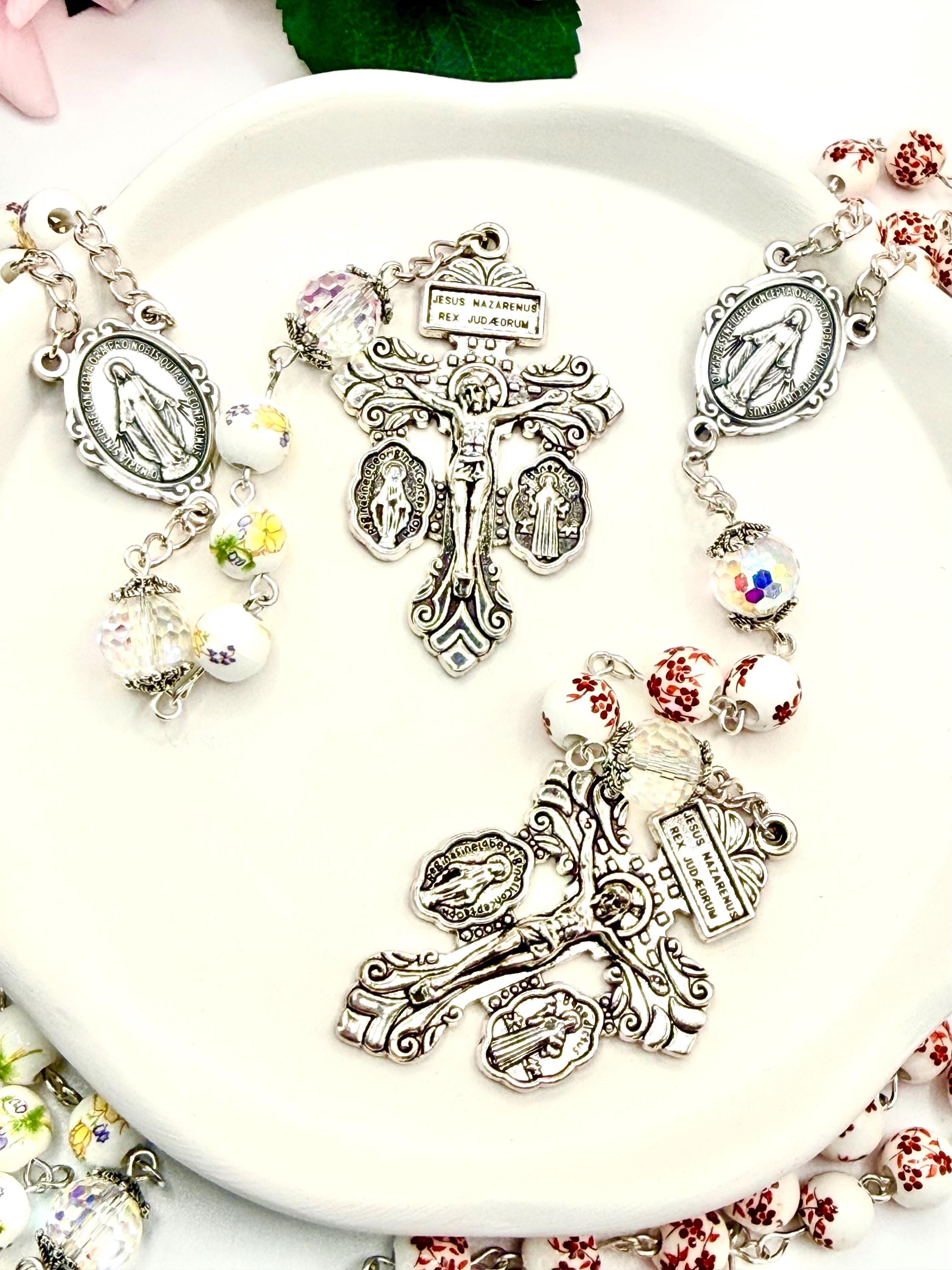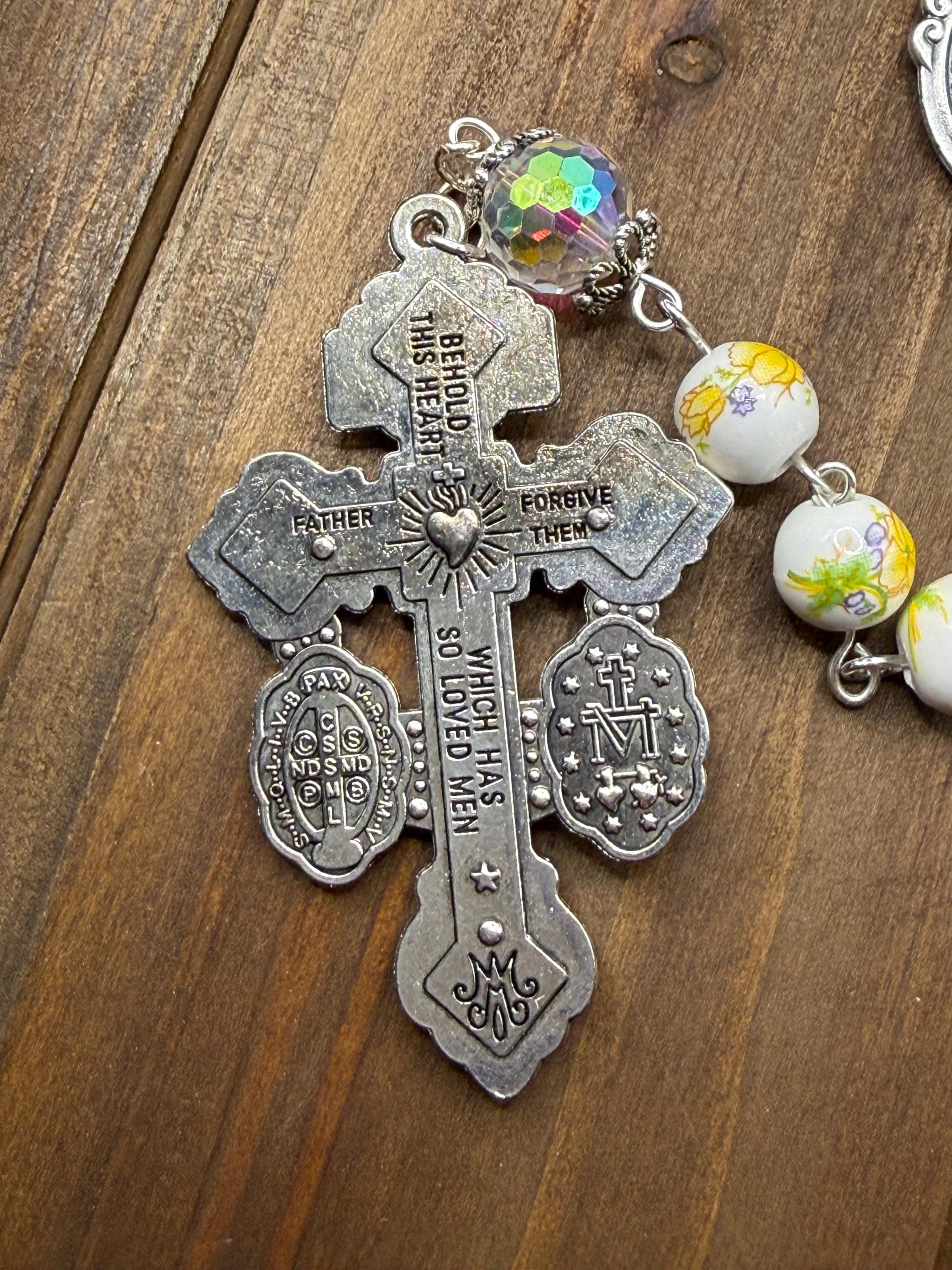 Experience a serene moment of devotion with our floral prayer beads, thoughtfully crafted to inspire faith and reflection. Featuring vibrant yellow floral beads or rich red ceramic rosary elements, each piece carries the sacred symbolism of the Pardon Crucifix. The delicate Our Lady centerpiece adds a reverent touch, making this a cherished Catholic prayer gift for meaningful occasions.