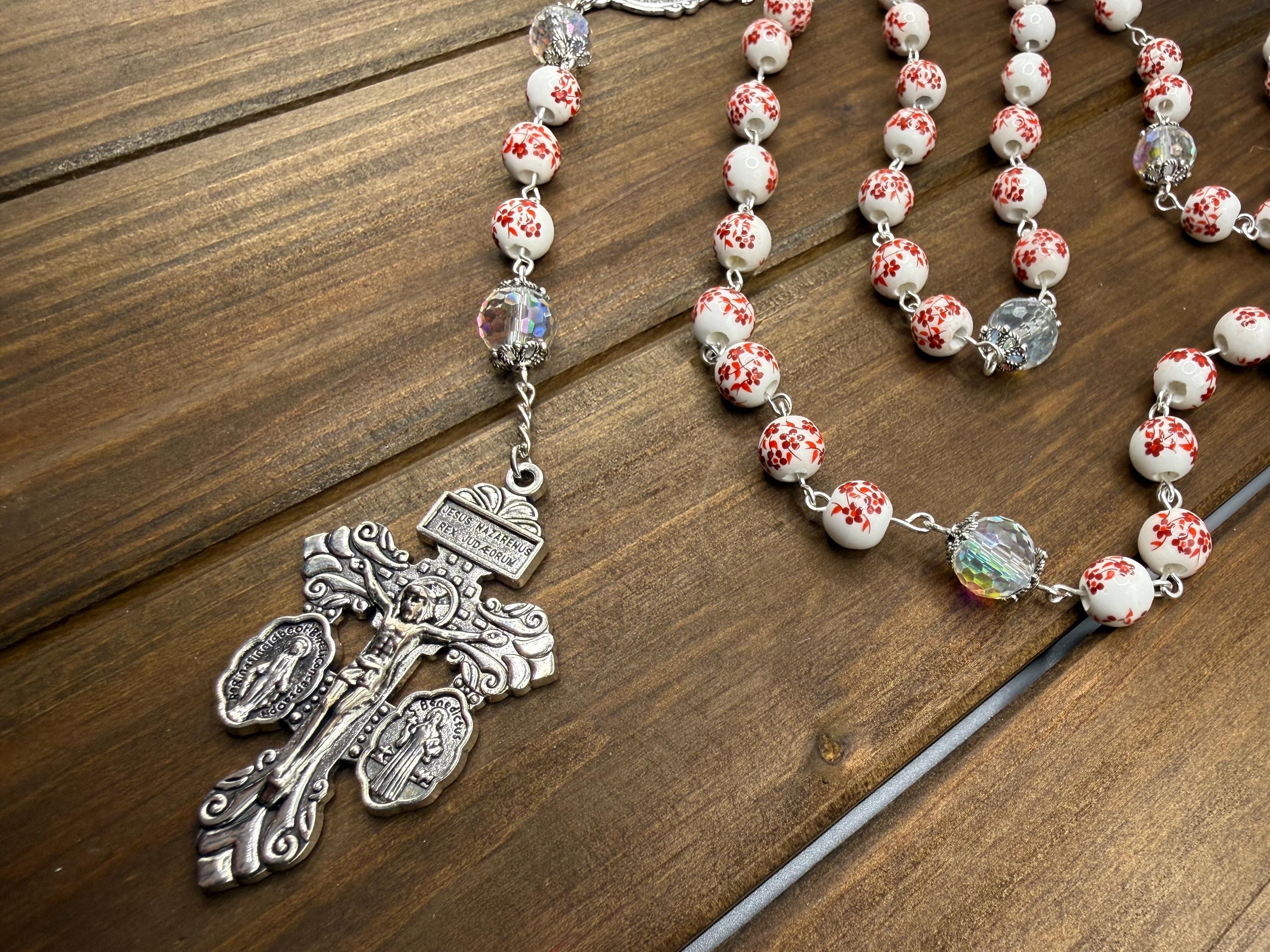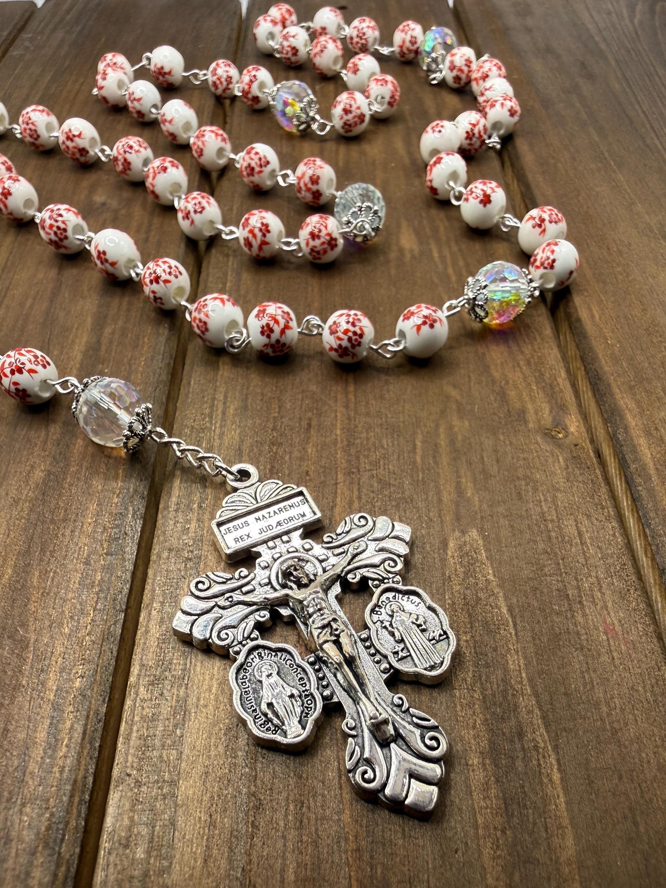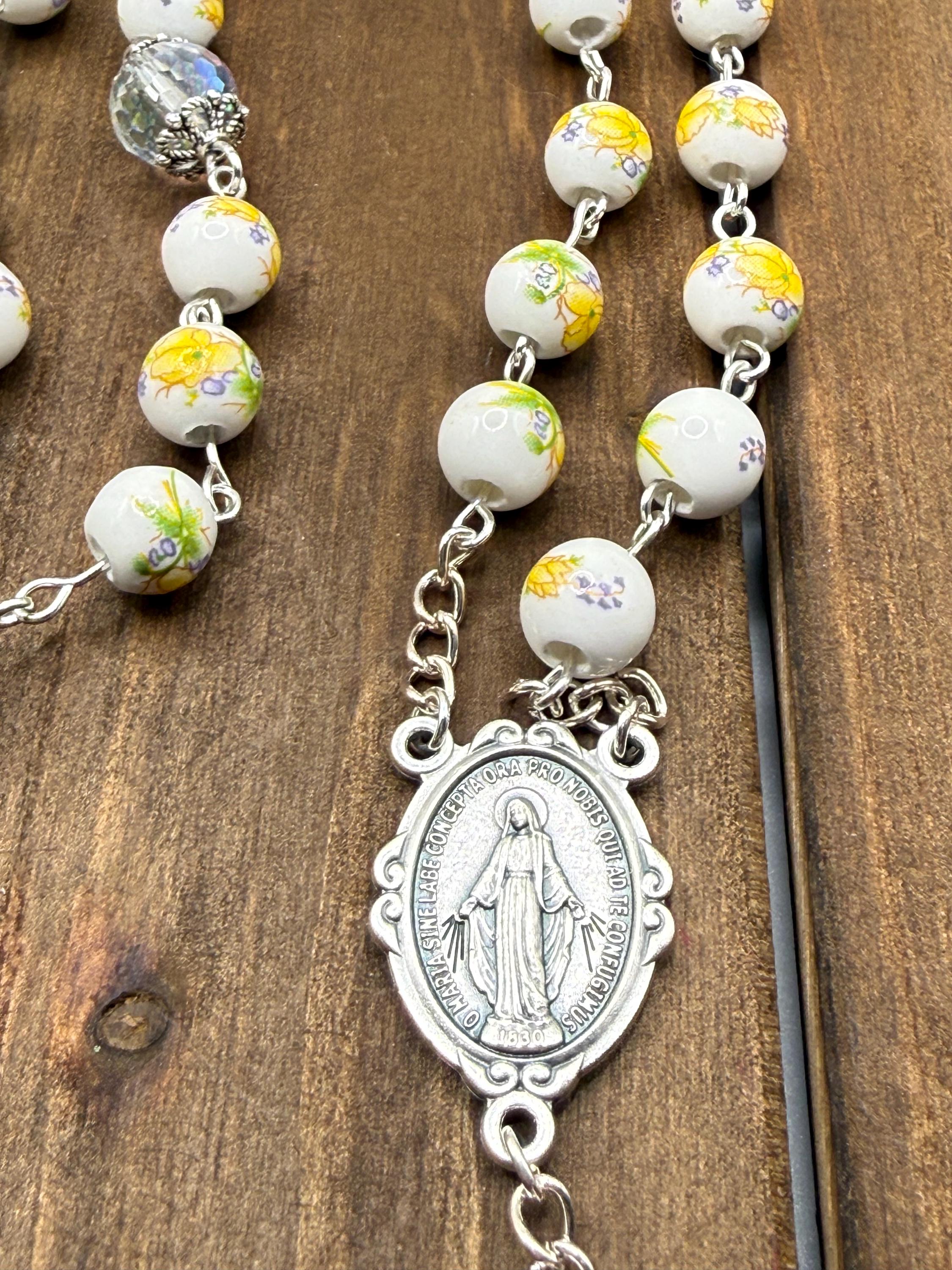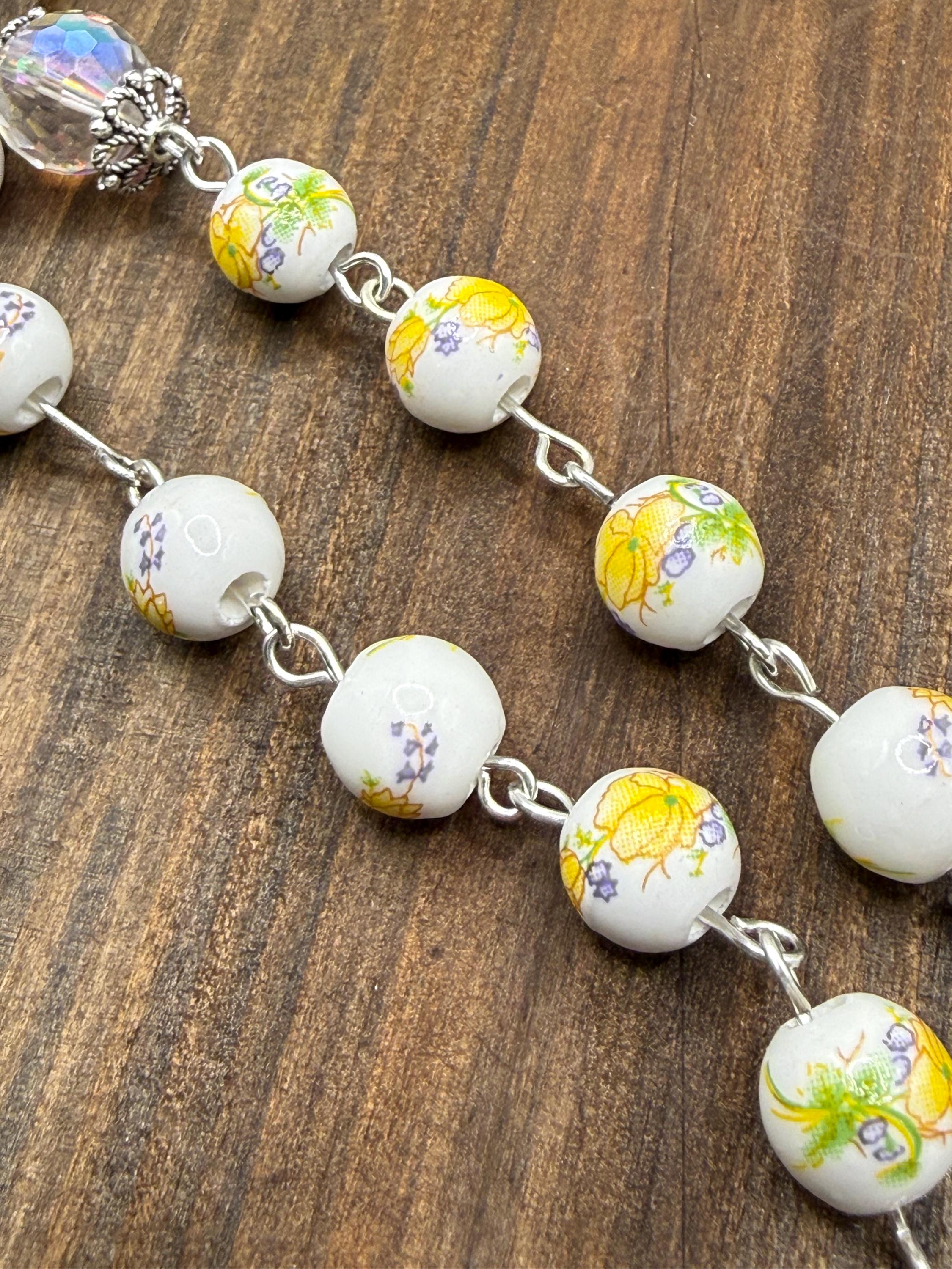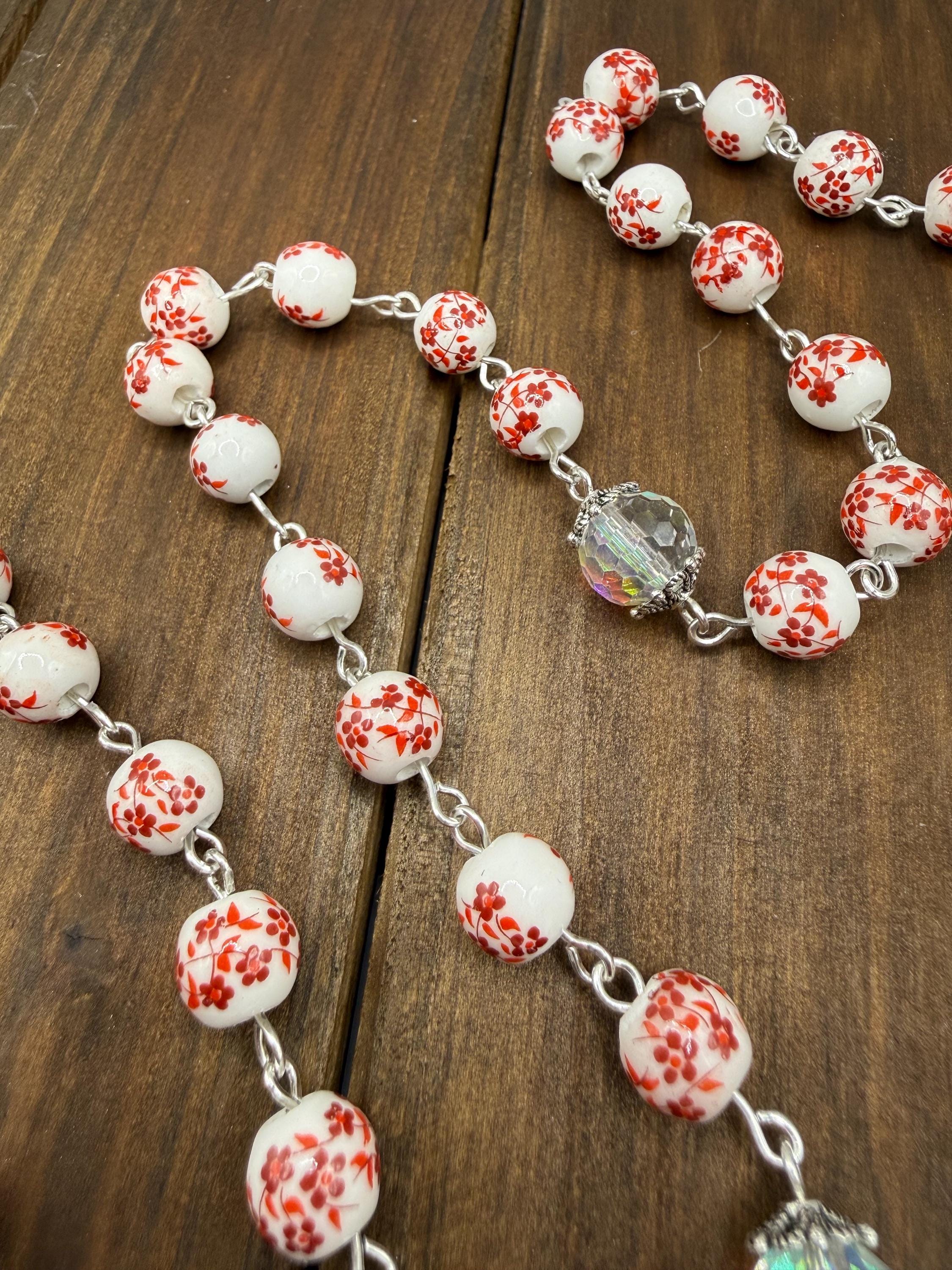 Experience a serene moment of devotion with our floral prayer beads, thoughtfully crafted to inspire faith and reflection. Featuring vibrant yellow floral beads or rich red ceramic rosary elements, each piece carries the sacred symbolism of the Pardon Crucifix. The delicate Our Lady centerpiece adds a reverent touch, making this a cherished Catholic prayer gift for meaningful occasions.