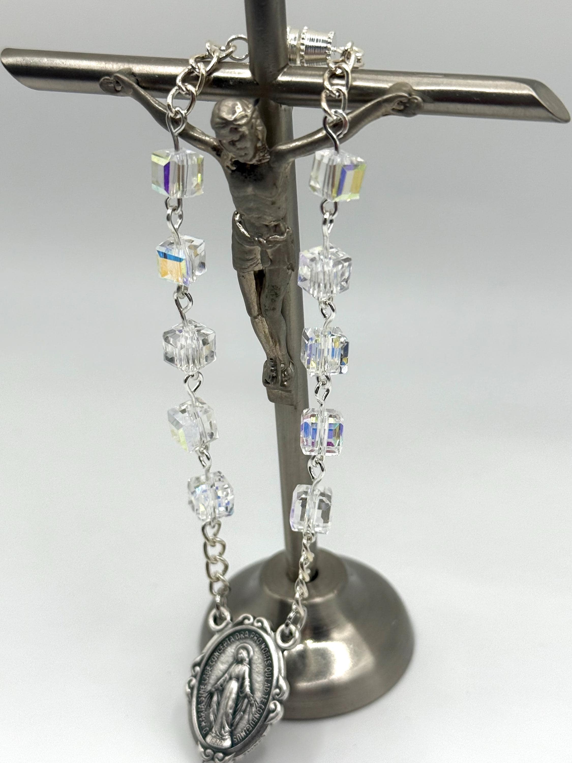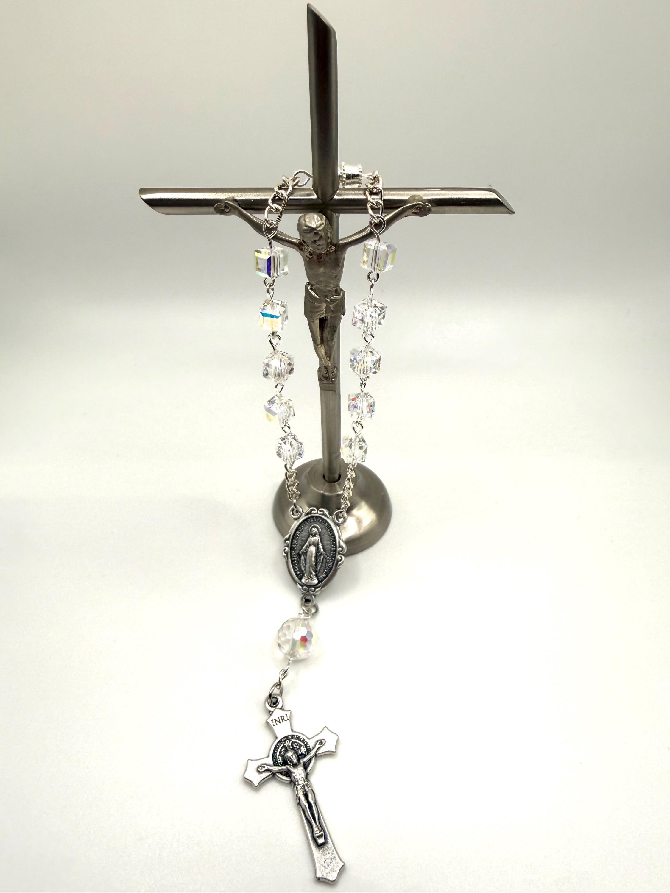 Start each journey with serenity and protection through this exquisite car rosary, thoughtfully designed to bring peace and reflection on the road. Crafted with shimmering square crystal car beads and featuring a beautifully detailed Italian Our Lady centerpiece, this faith-inspired gift offers both spiritual comfort and elegant charm. Whether as a prayer companion or a symbolic rosary gift, it’s perfect for anyone seeking a blessed car ornament that inspires devotion.