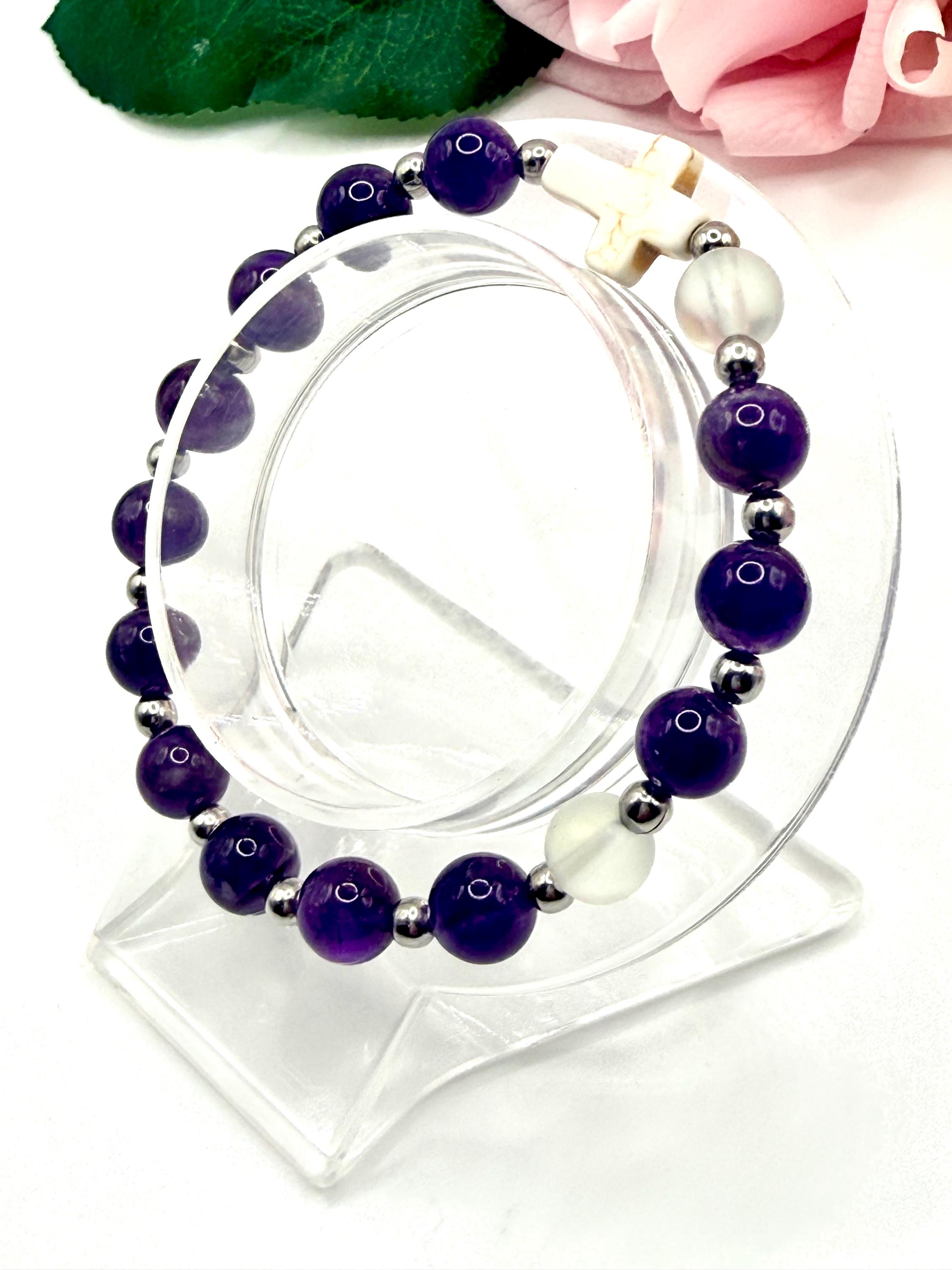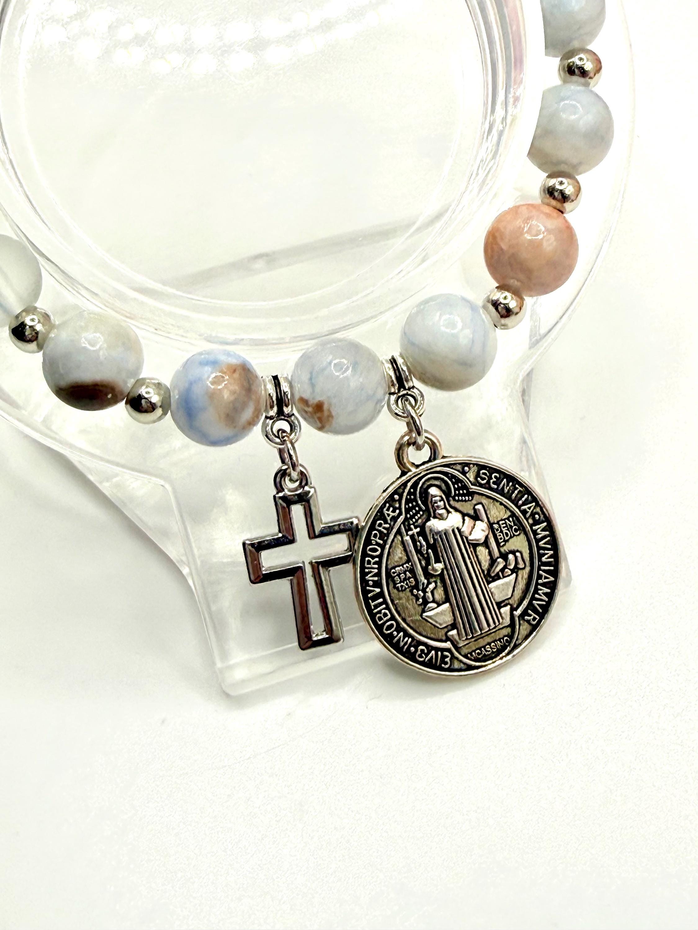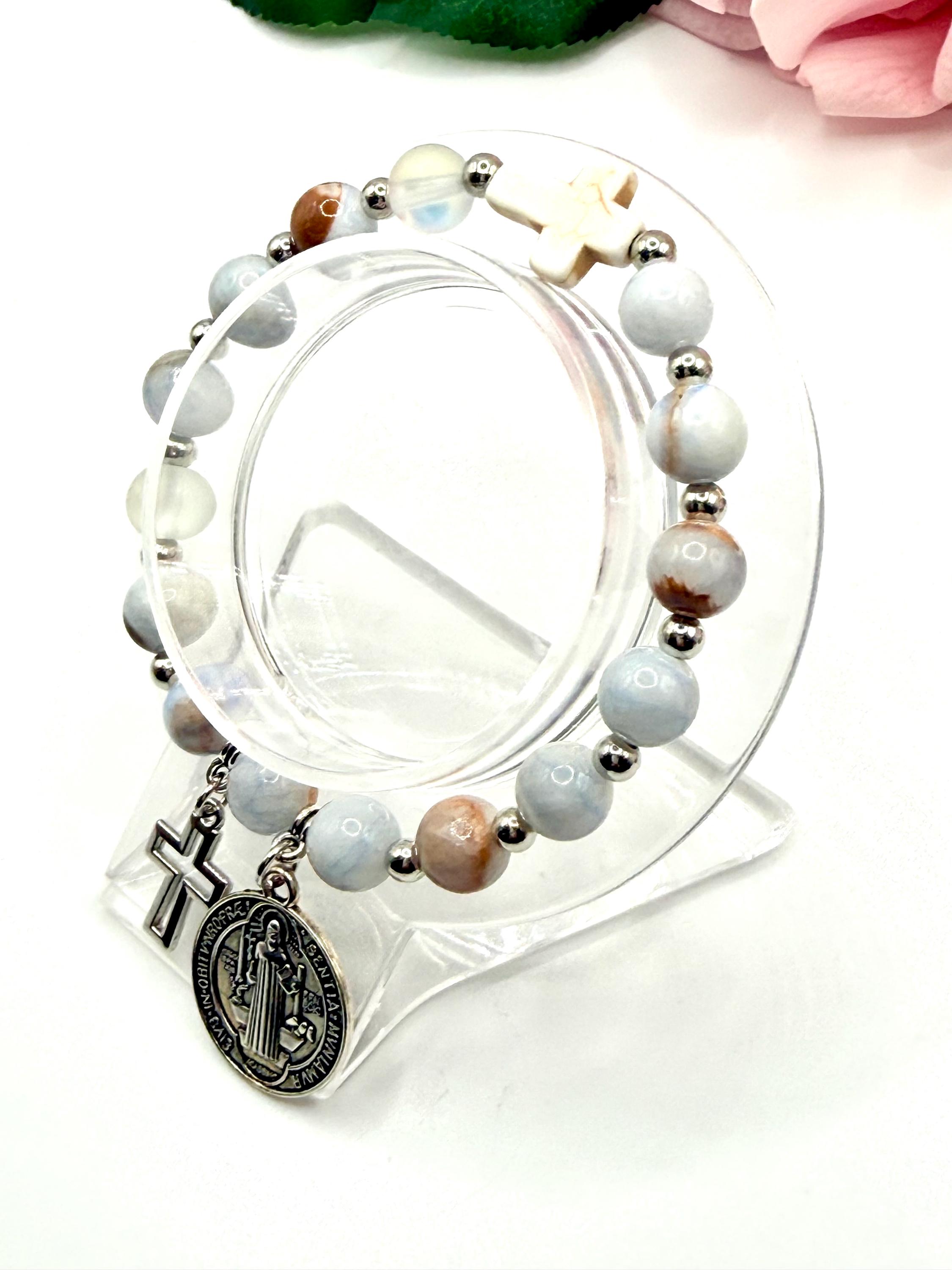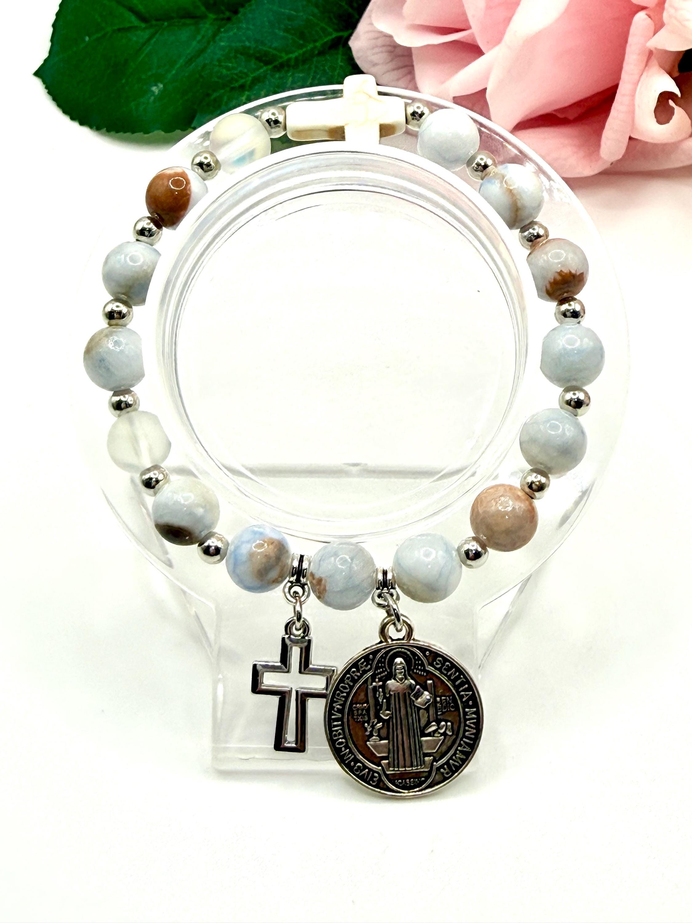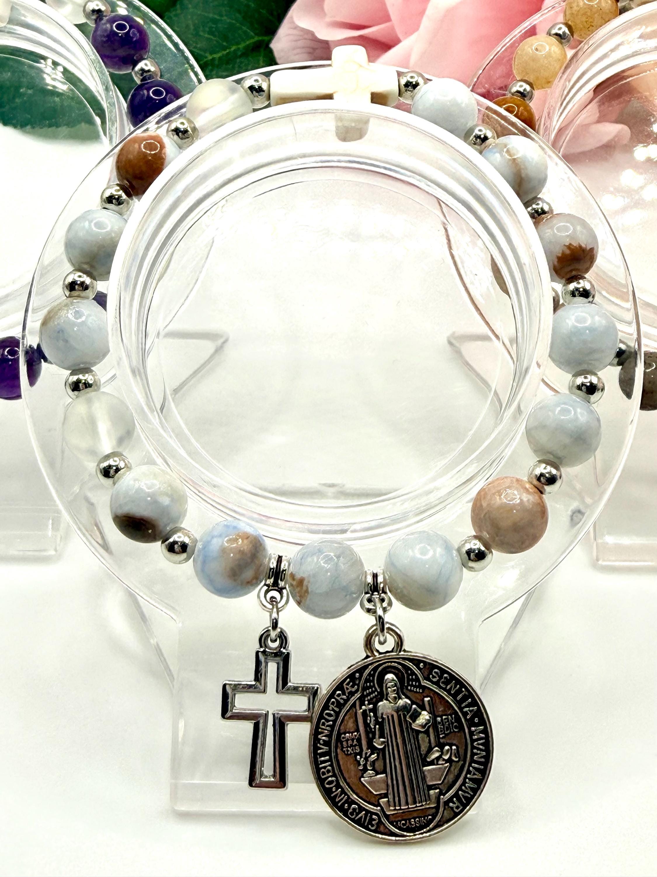 Discover the perfect blend of faith and style with our gemstone rosary bracelet, designed to inspire daily devotion and spiritual reflection. Featuring the calming amethyst purple hues, soothing azure ocean tones, and a distinctive seashell cross charm, each bracelet carries a meaningful story of protection and pilgrimage. Handmade with care, this prayer beads jewelry offers a unique way to keep your faith close, whether for yourself or as a thoughtful gift for a faith lover.
