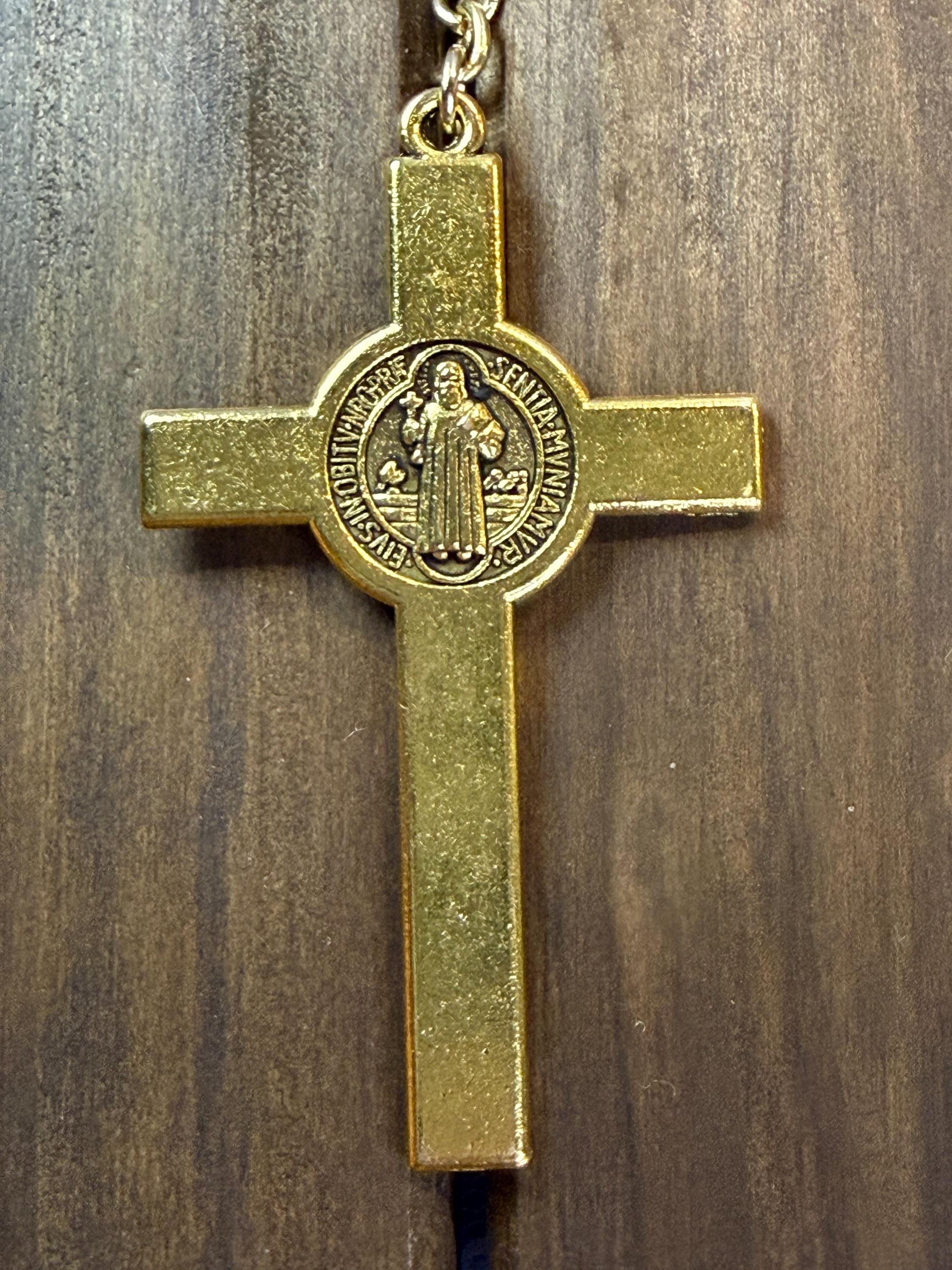 - Gold-plated Saint Benedict centerpiece — detailed and symbolic