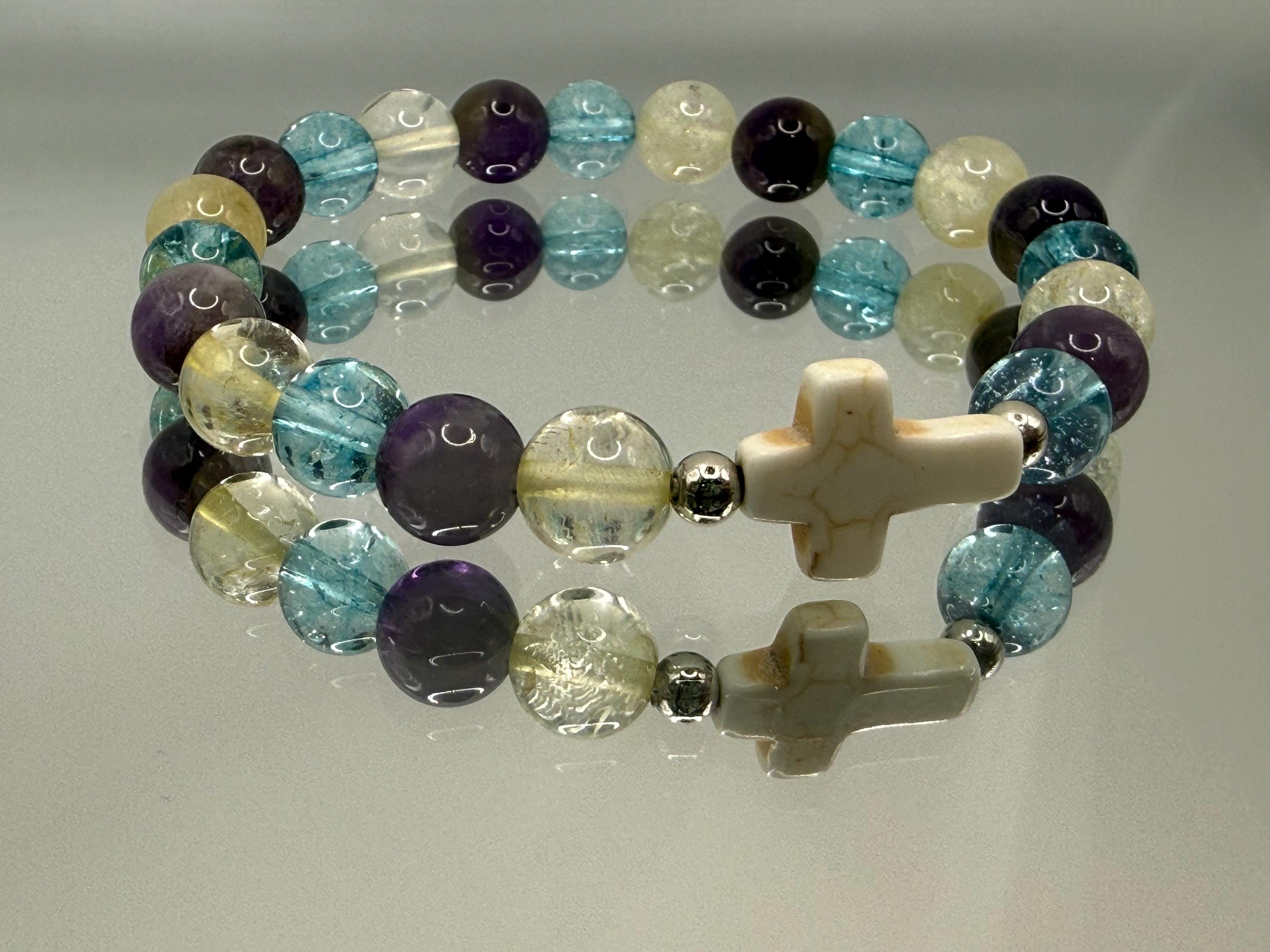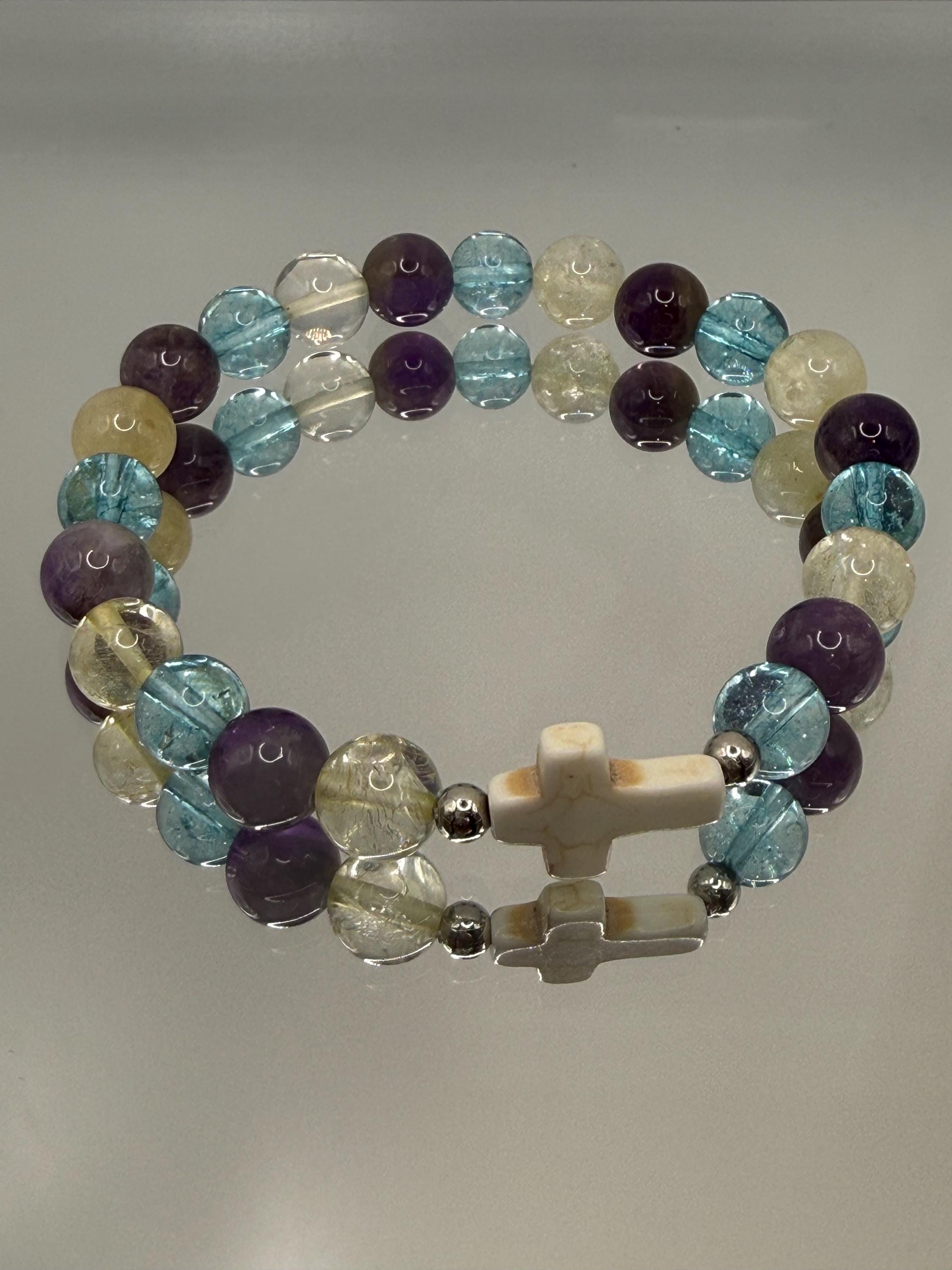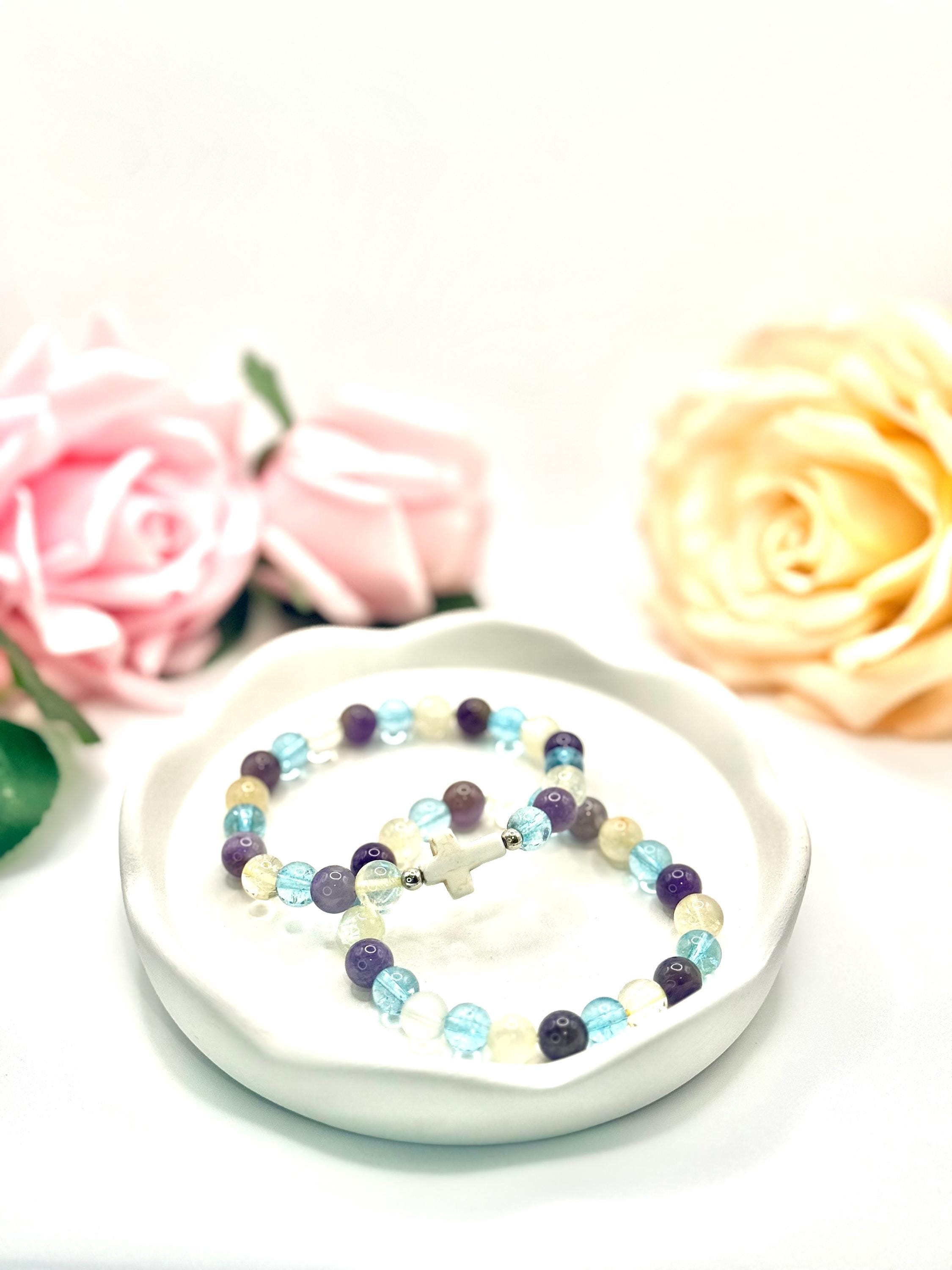 Discover the soothing energy of this handmade gemstone bracelet, designed to bring balance and calm into your daily life. Featuring natural amethyst, blue quartz, and an optional faith seashell cross charm, each piece carries a unique story of spiritual connection and positive vibes. Crafted for comfort and style, this bracelet invites you to embrace mindfulness and protection wherever you go.