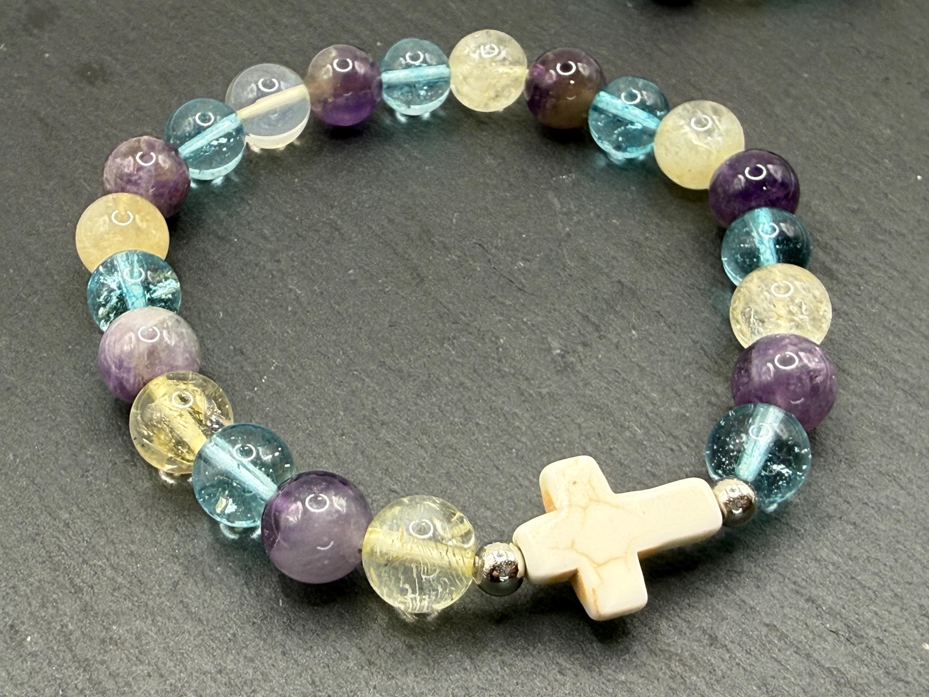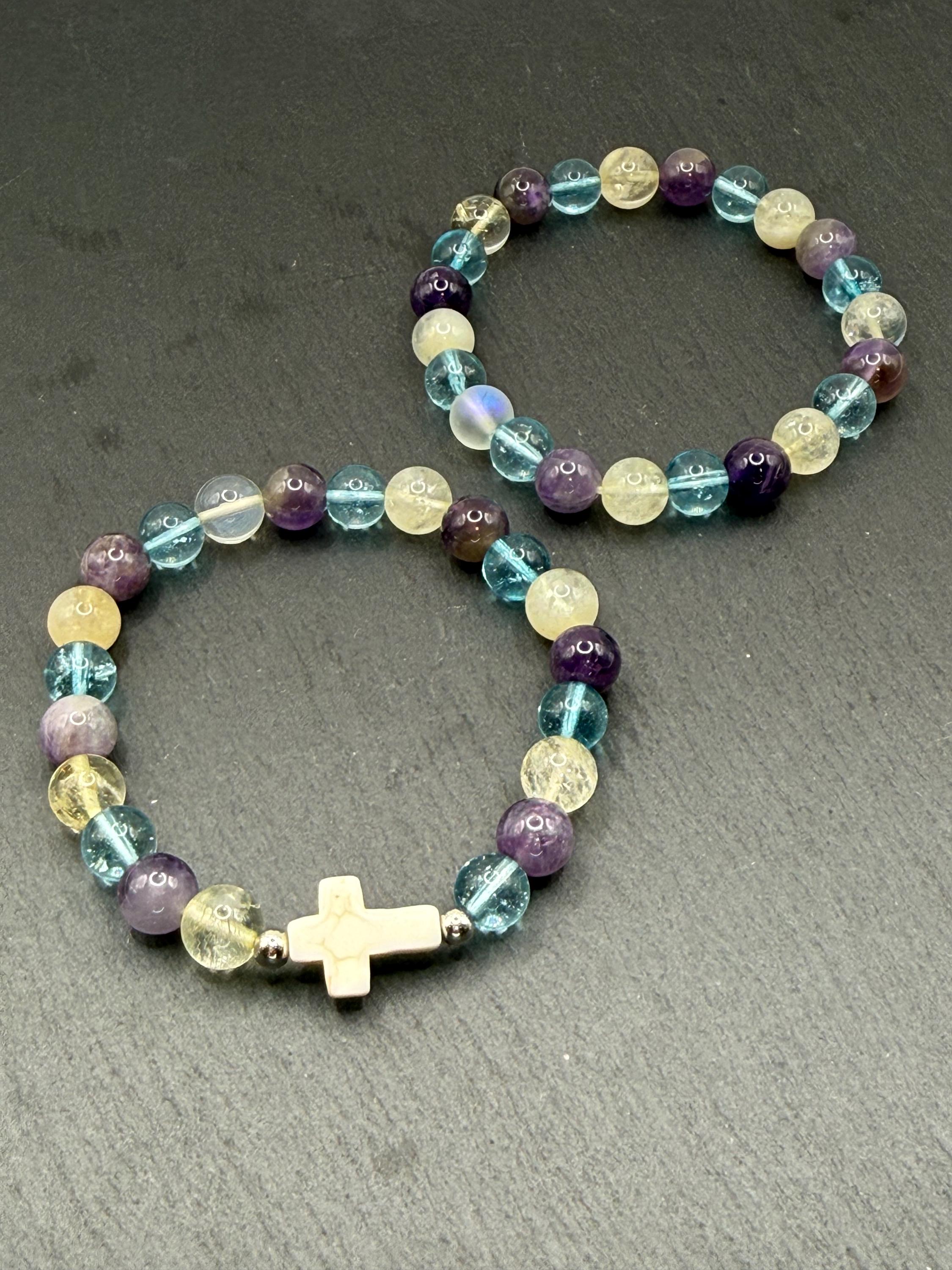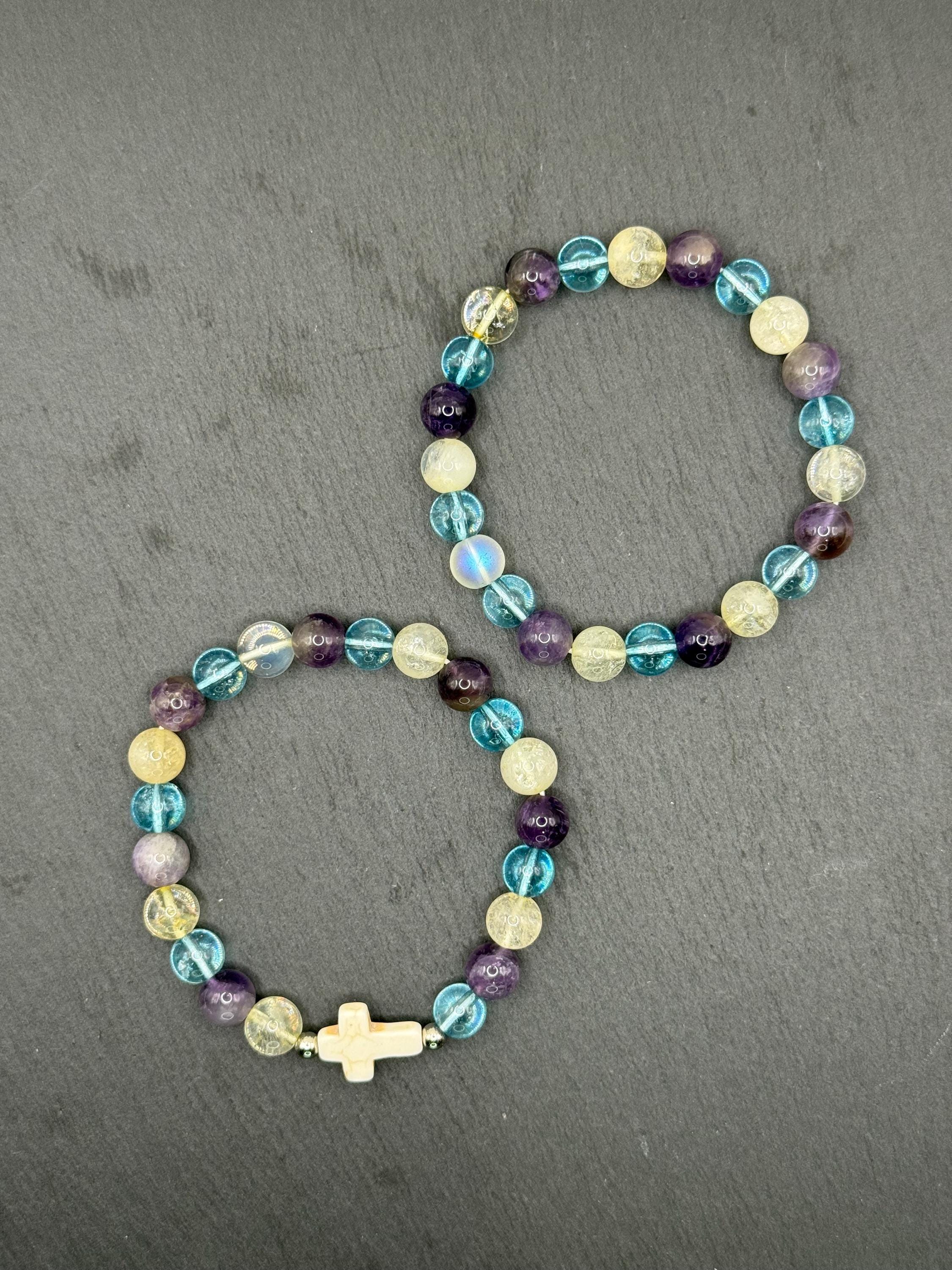 Discover the soothing energy of this handmade gemstone bracelet, designed to bring balance and calm into your daily life. Featuring natural amethyst, blue quartz, and an optional faith seashell cross charm, each piece carries a unique story of spiritual connection and positive vibes. Crafted for comfort and style, this bracelet invites you to embrace mindfulness and protection wherever you go.