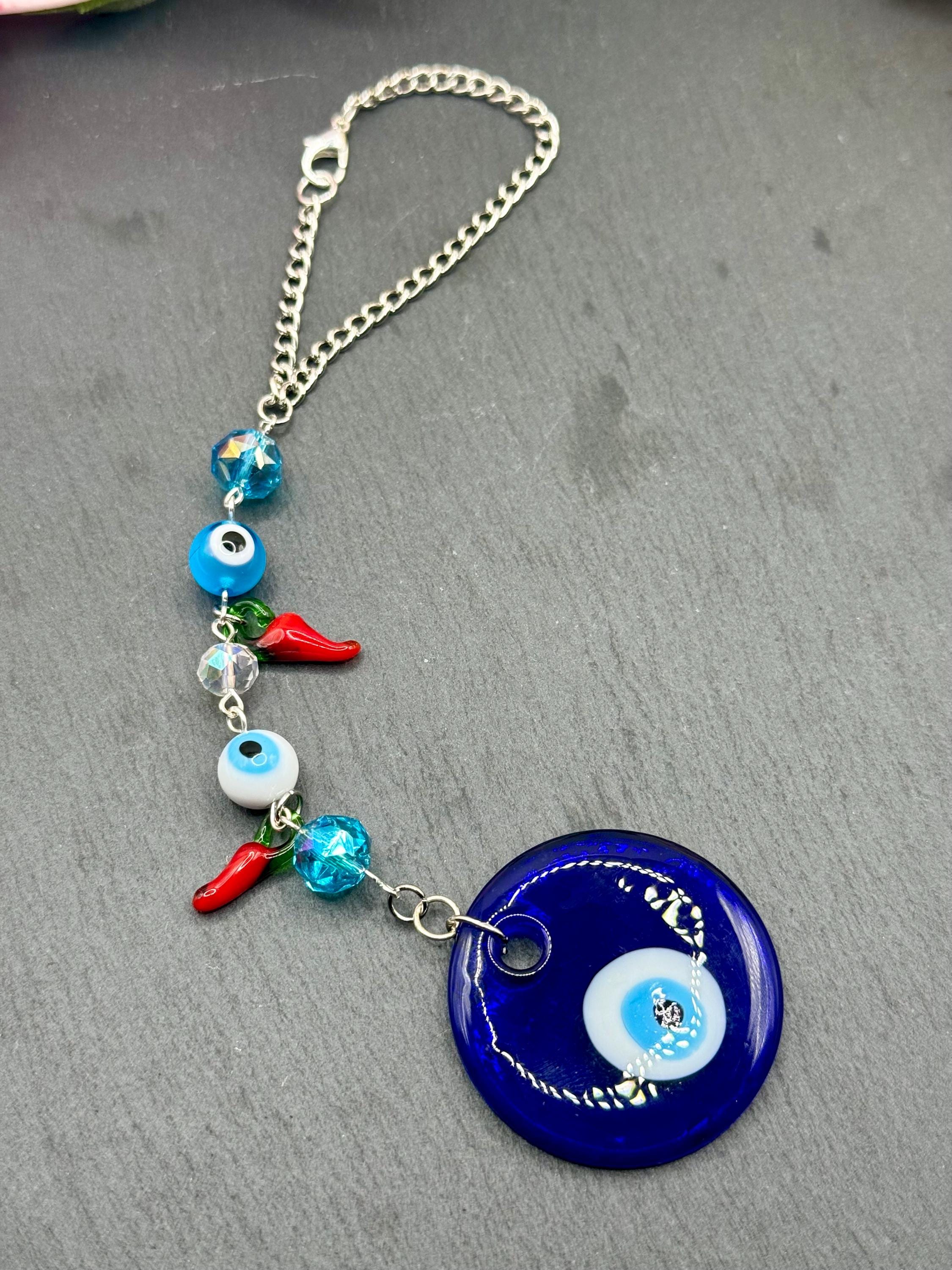 Enhance your daily drive with this handcrafted evil eye charm, a beautiful blend of protection and style designed to hang from your car's rearview mirror. This spiritual car charm carries the ancient symbolism of the evil eye, believed to ward off negative energy and invite good luck wherever your journey takes you. Whether as a meaningful good luck charm or a unique handmade car decor piece, it adds a touch of positive energy and thoughtful intention to any space.
