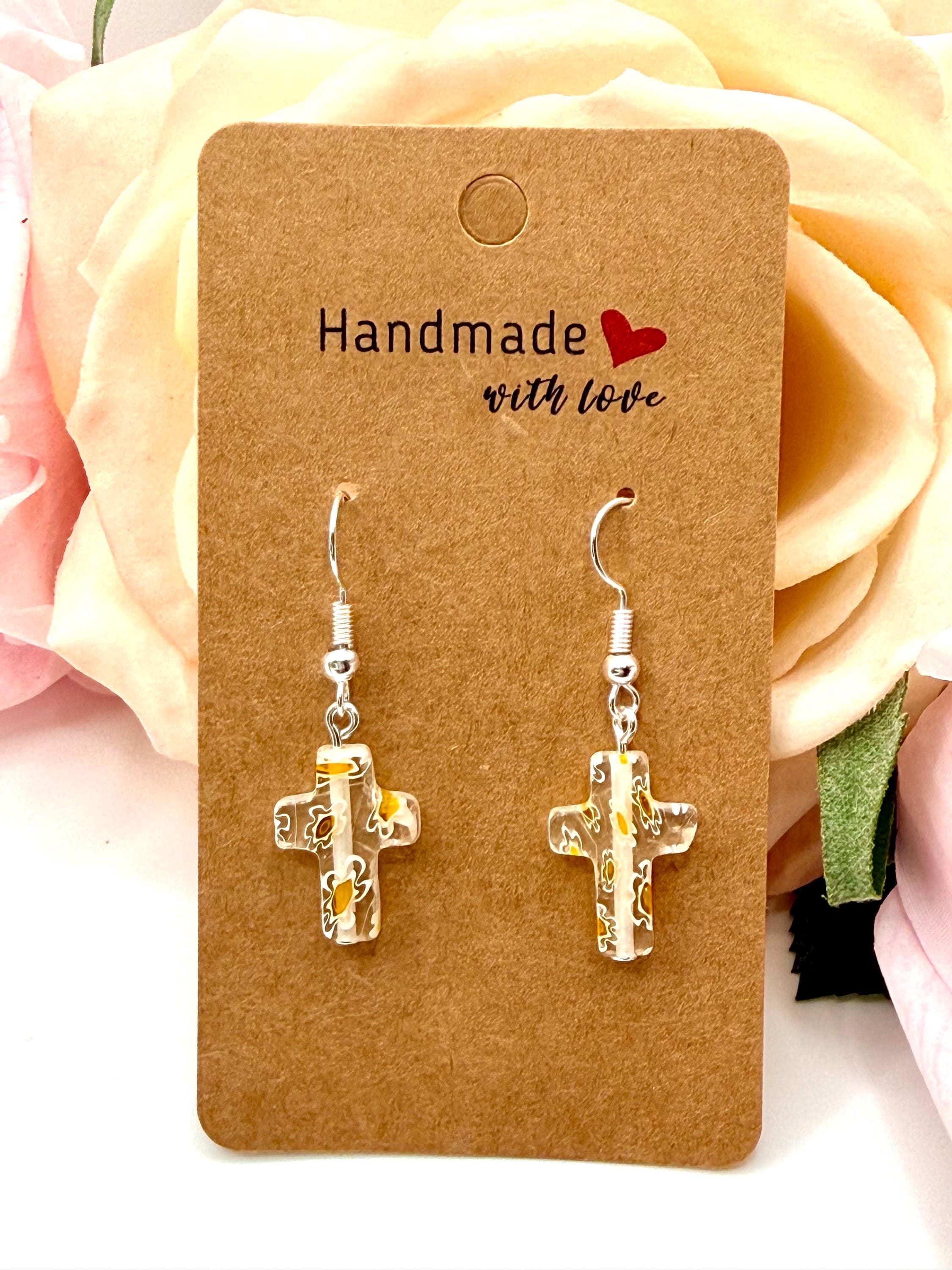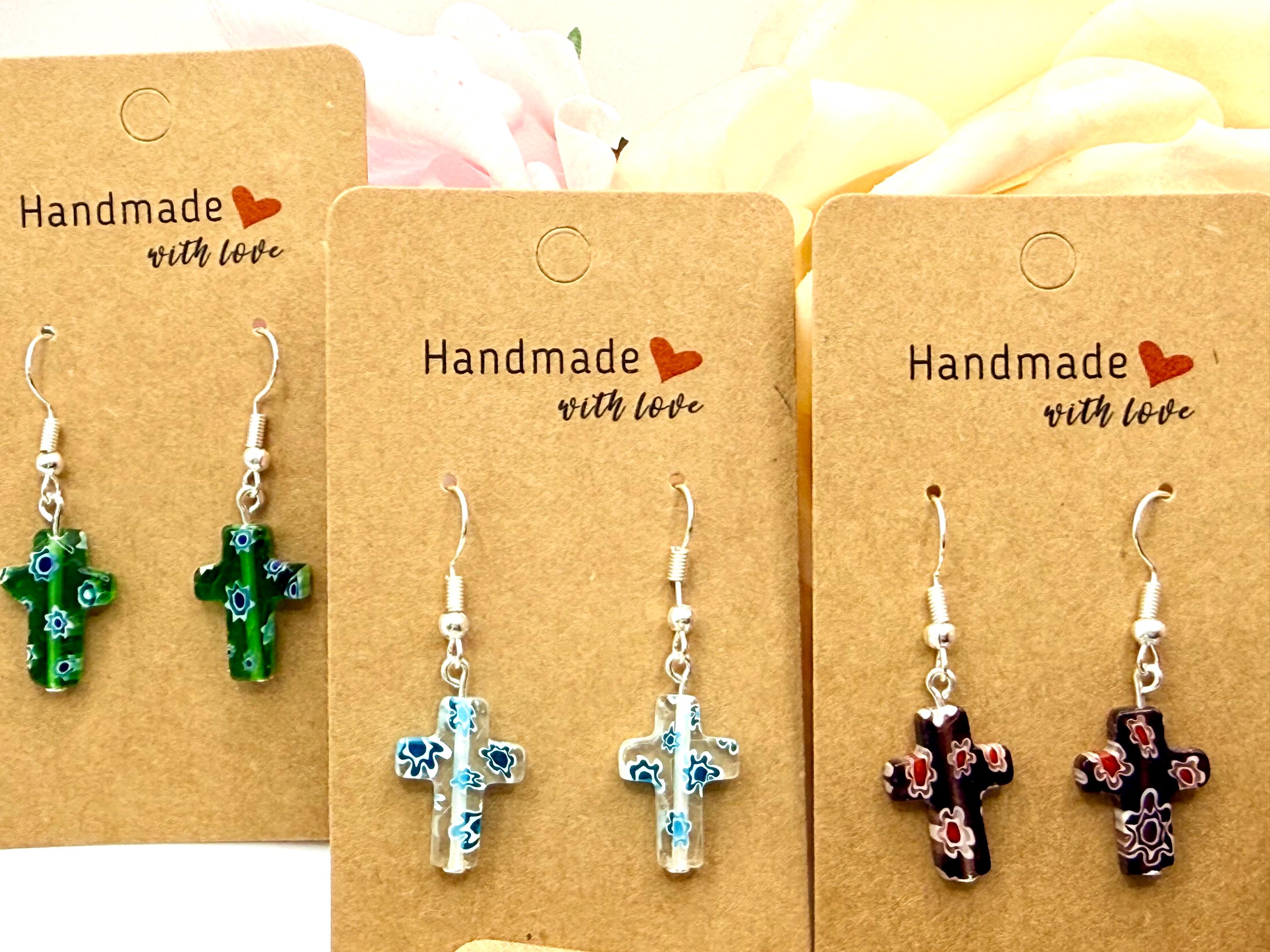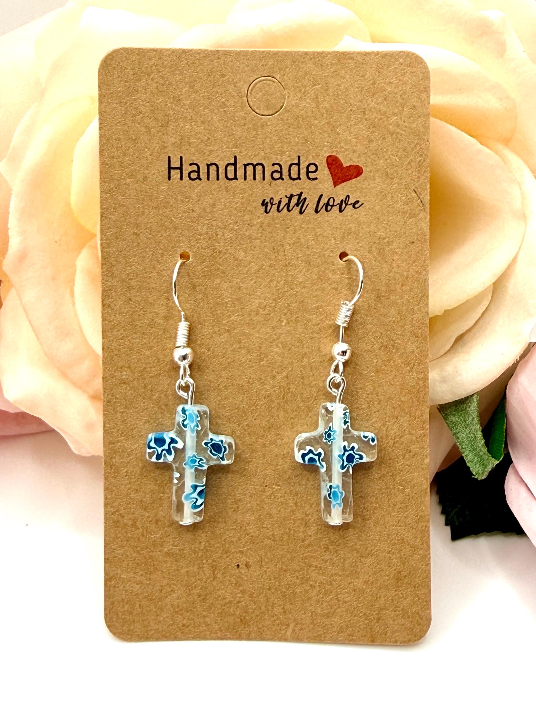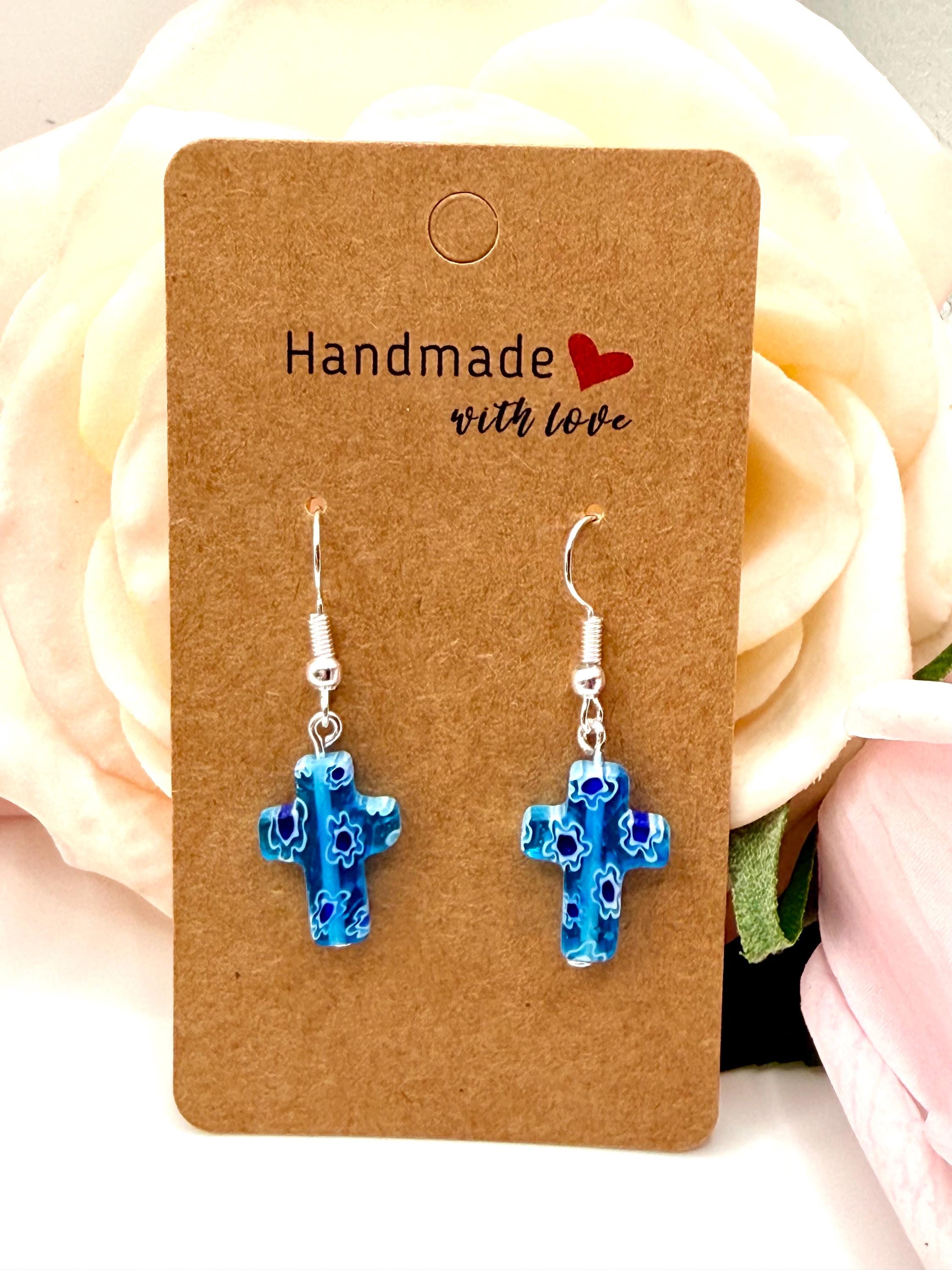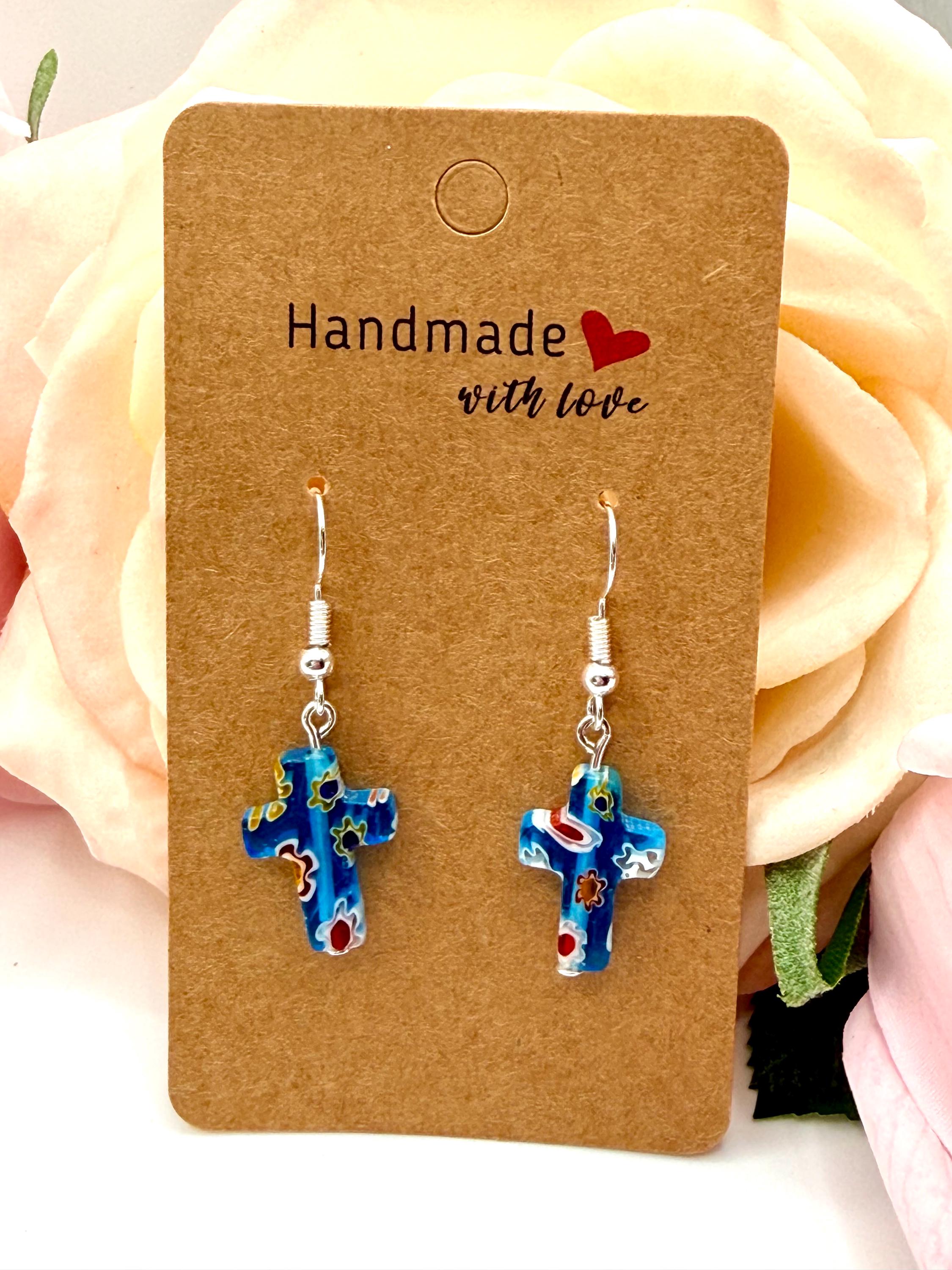 Add a touch of elegance and meaningful craftsmanship to your jewelry collection with these handmade Murano glass cross earrings. Each pair is carefully crafted, making every piece unique. Perfect for daily wear or special occasions, these earrings are hypoallergenic and lightweight, ensuring comfort for sensitive ears.