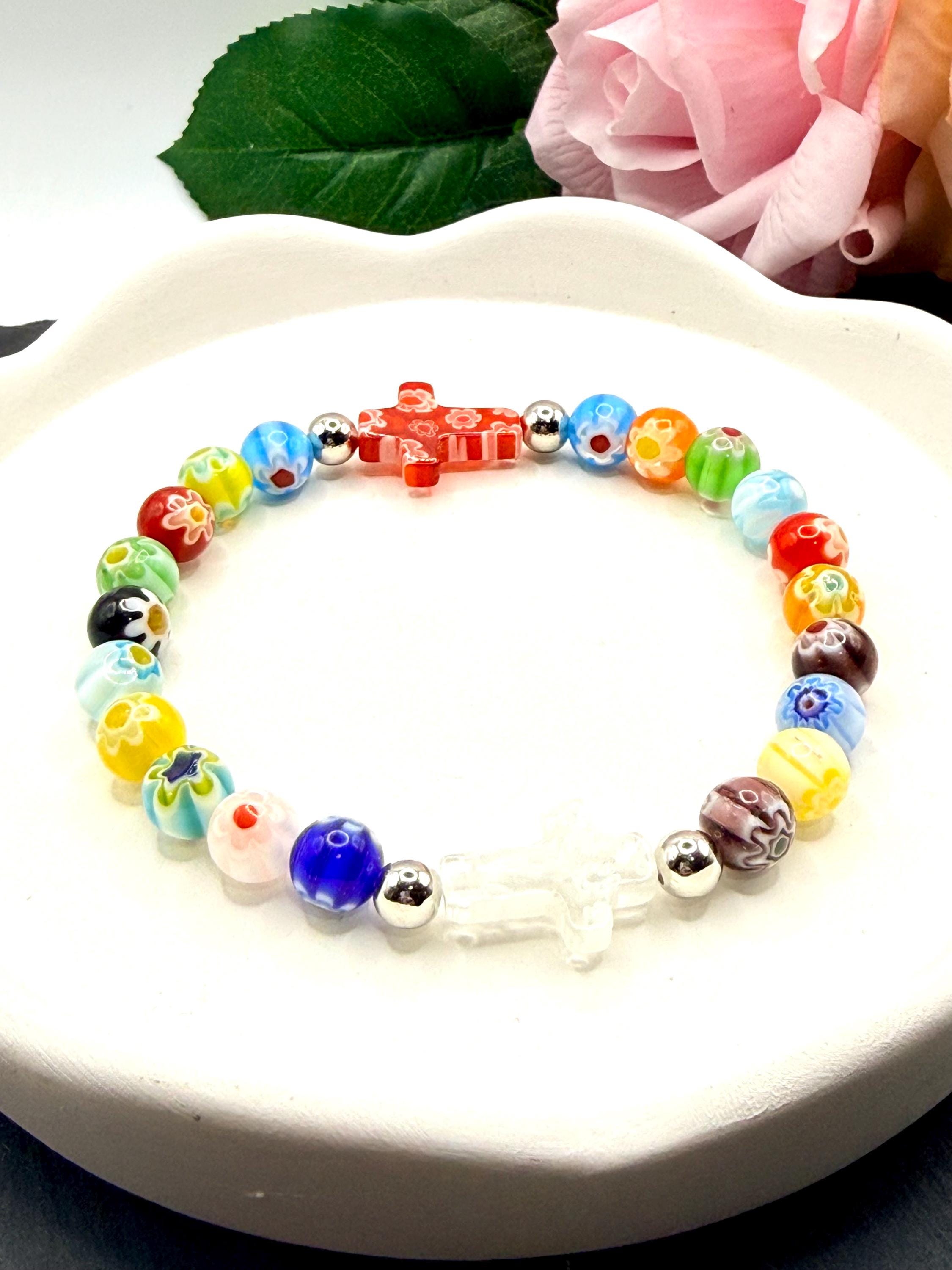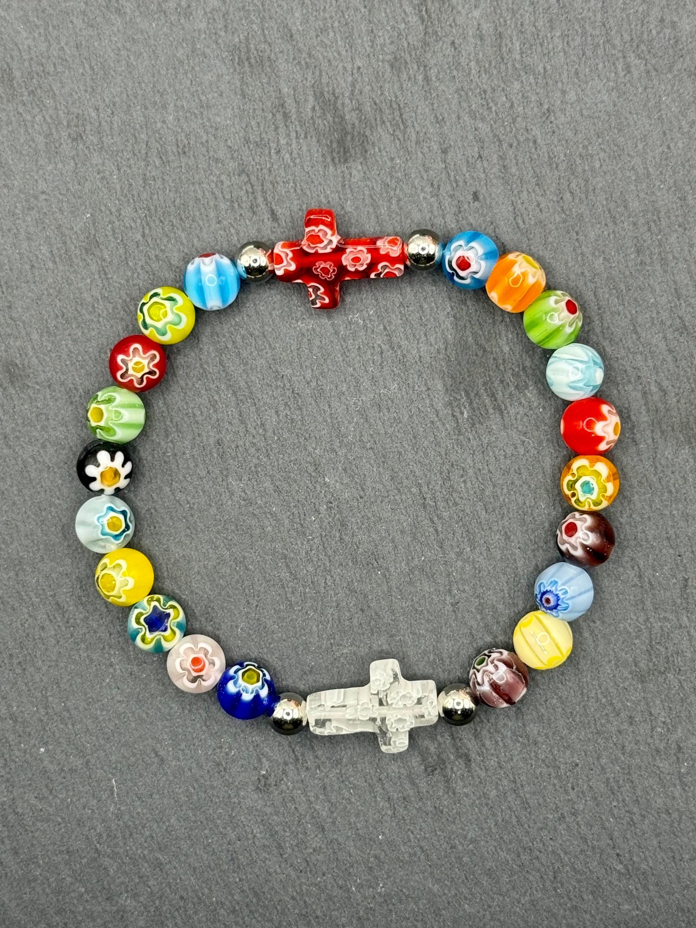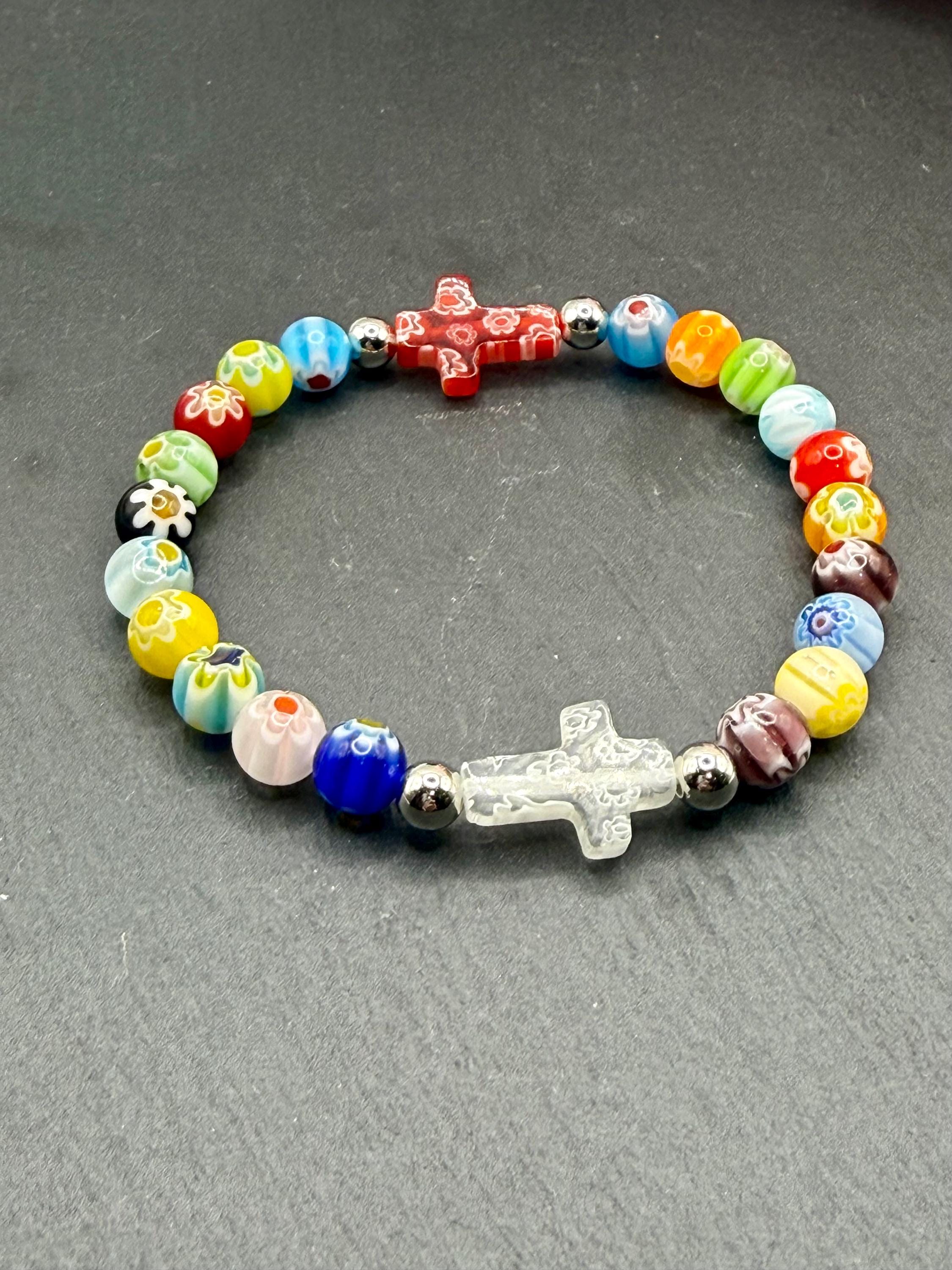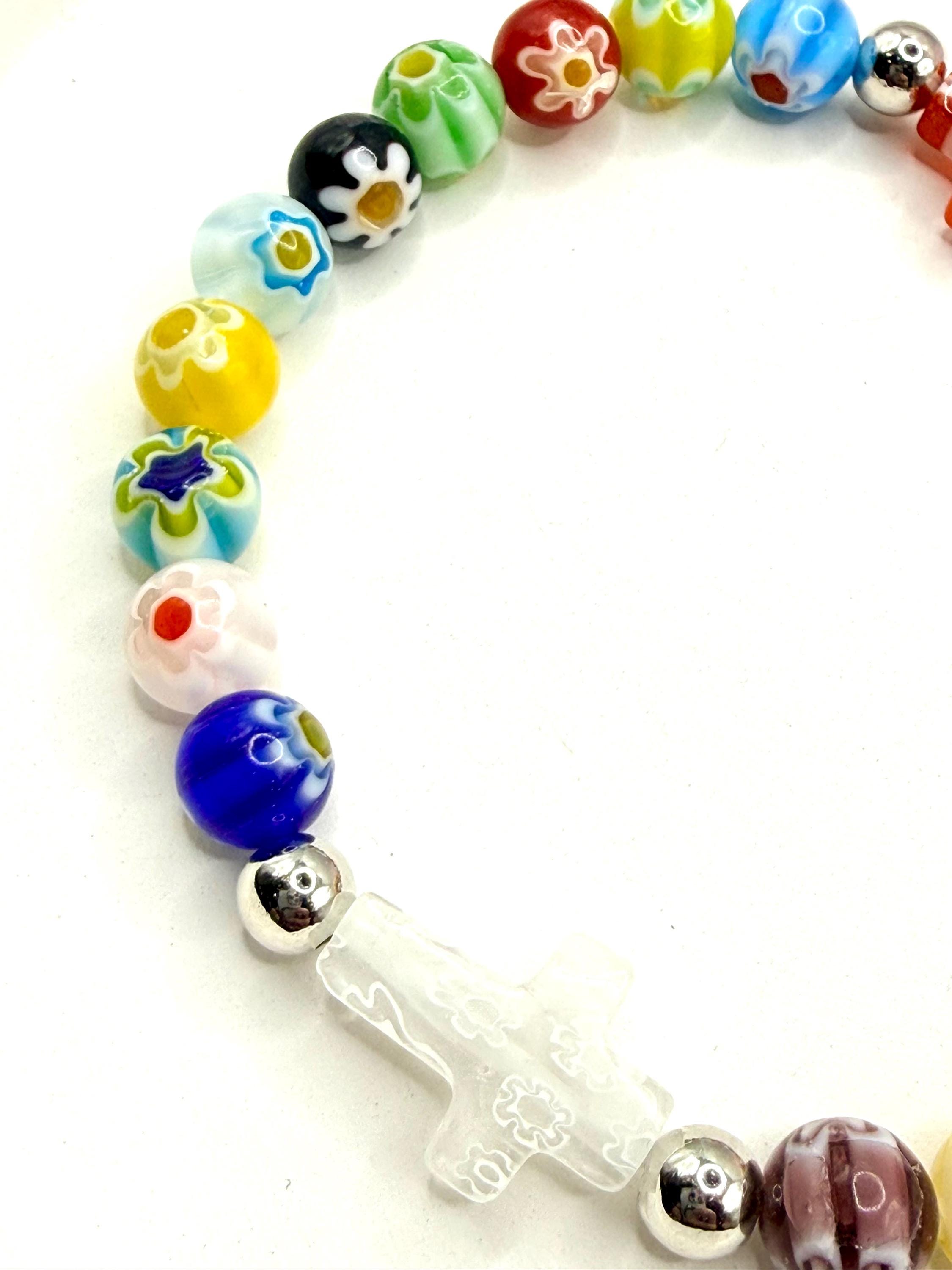 ✔ Handmade with authentic millefiori round glass beads and a symbolic cross bead