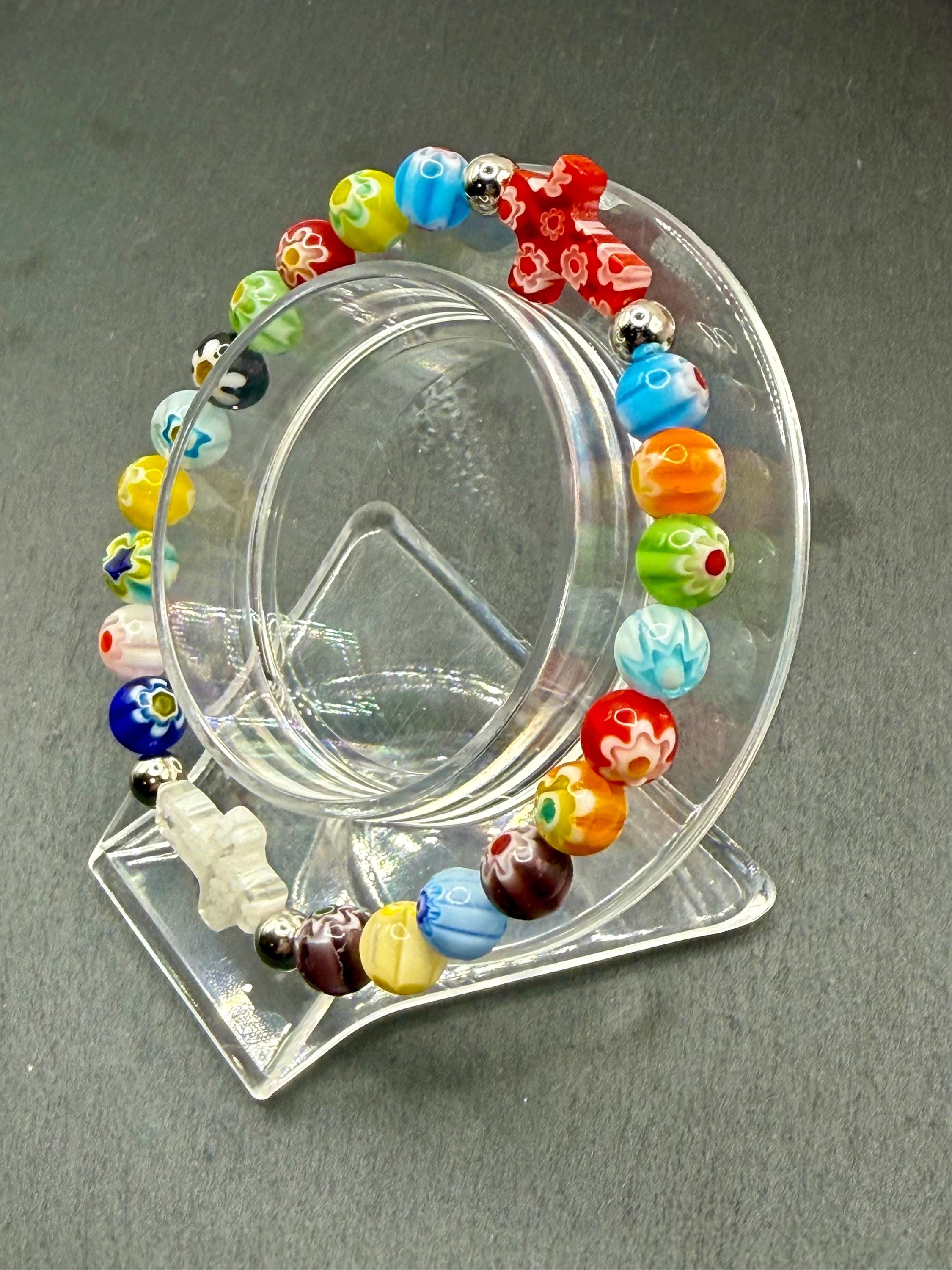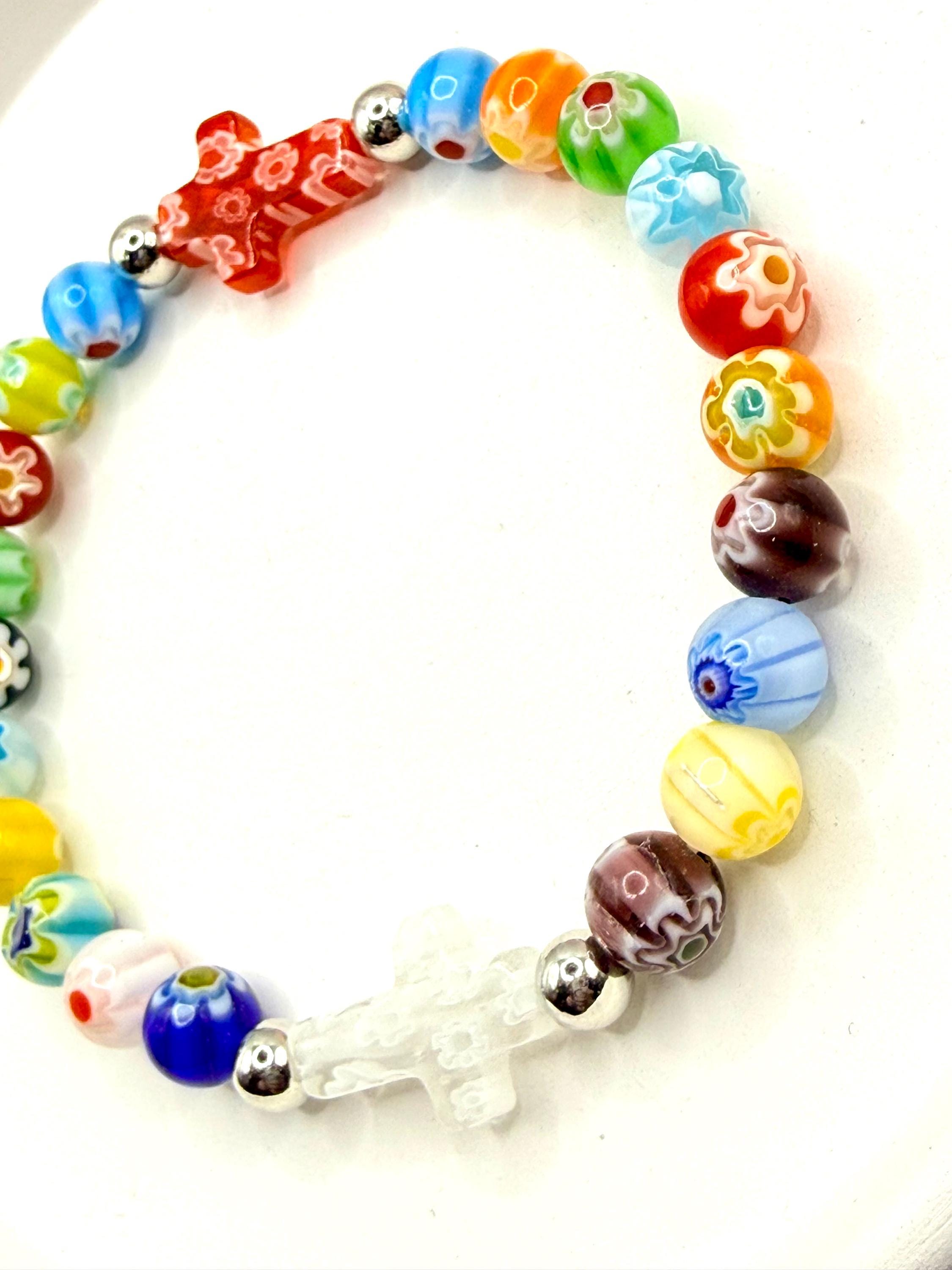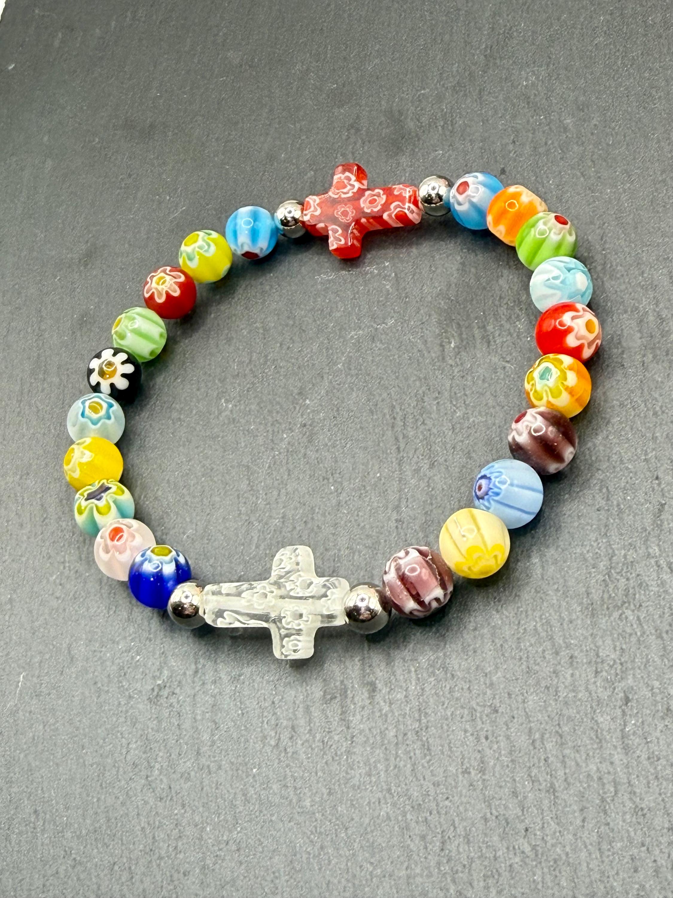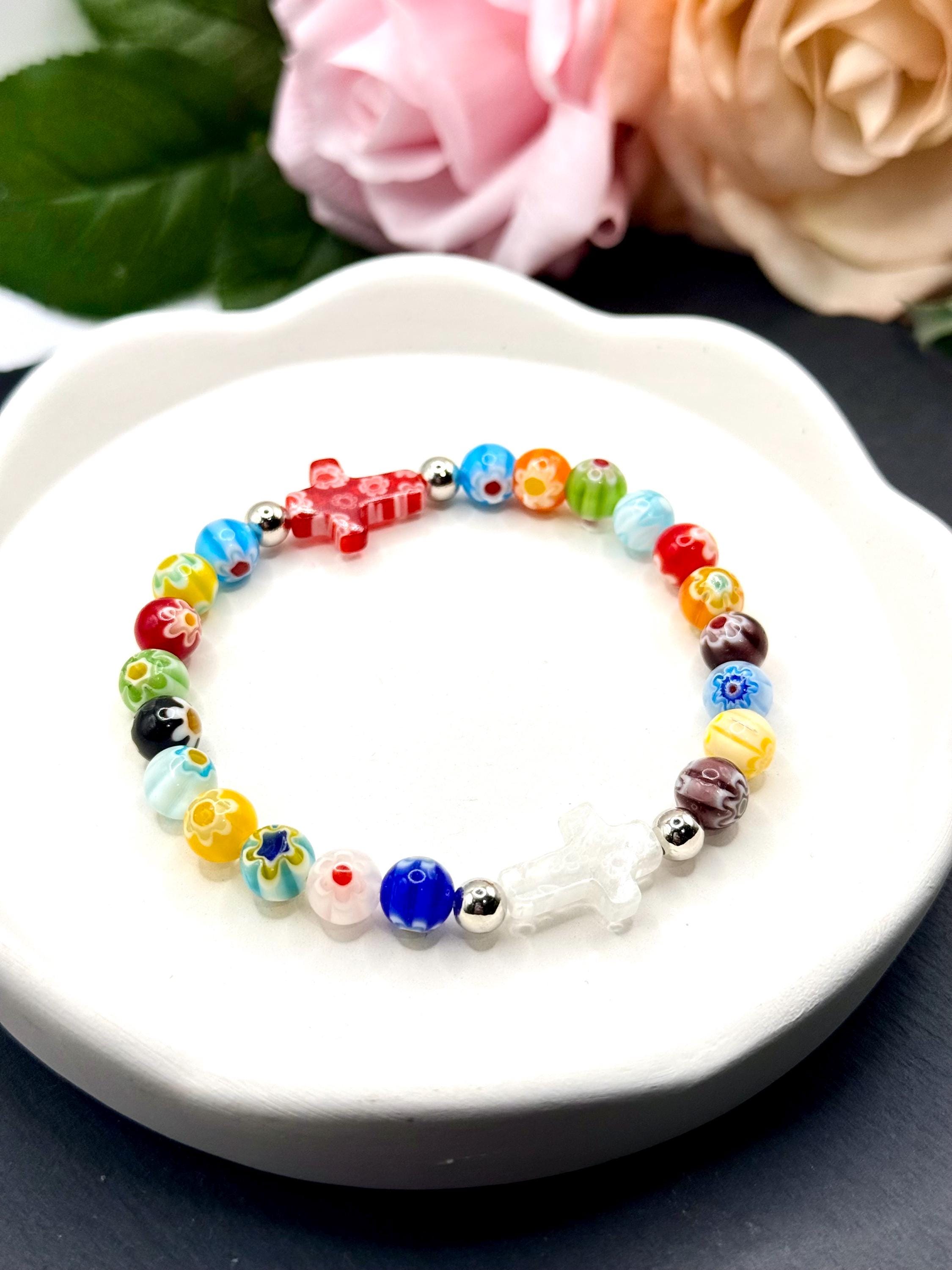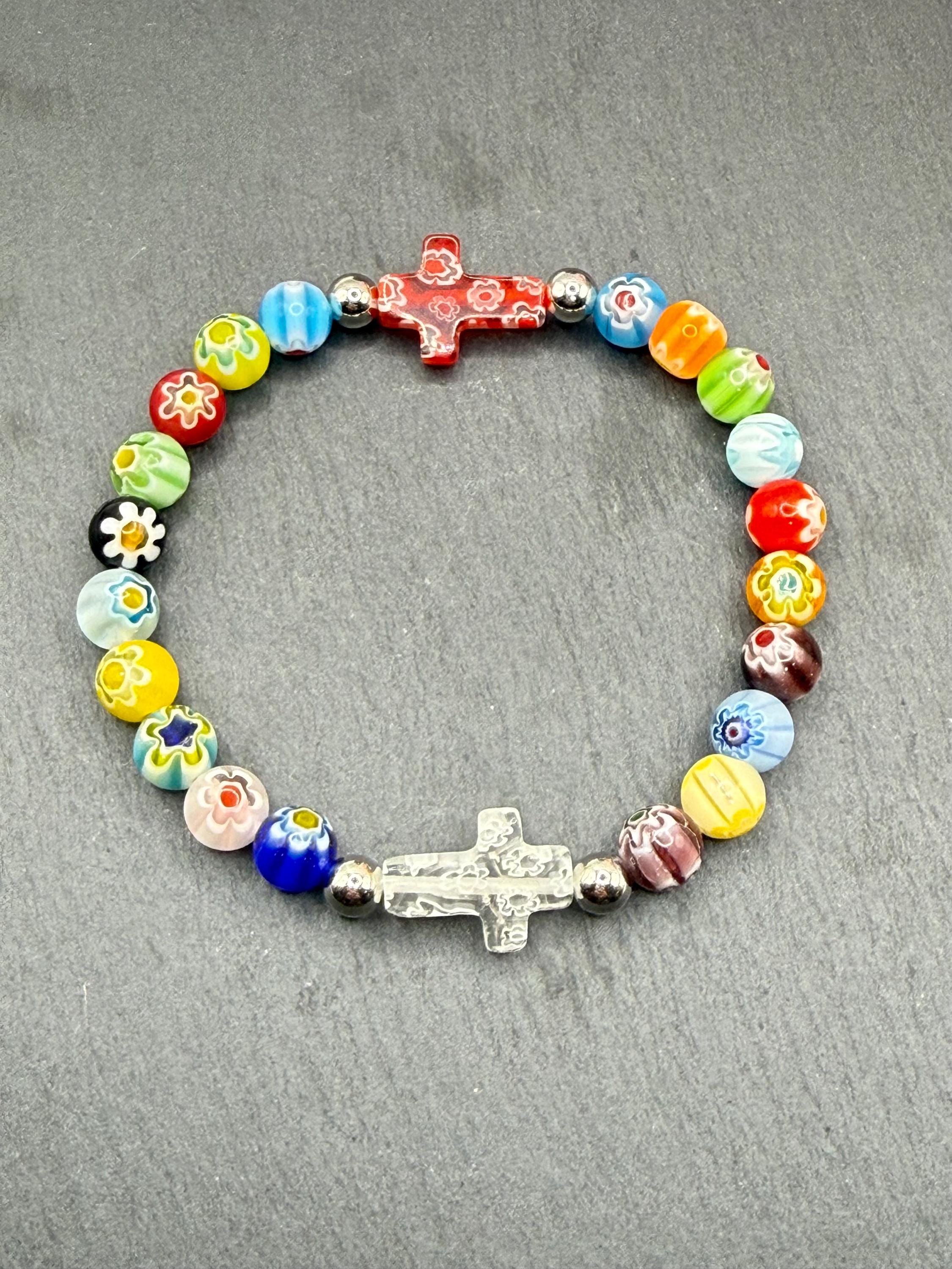 ✔ Handmade with authentic millefiori round glass beads and a symbolic cross bead