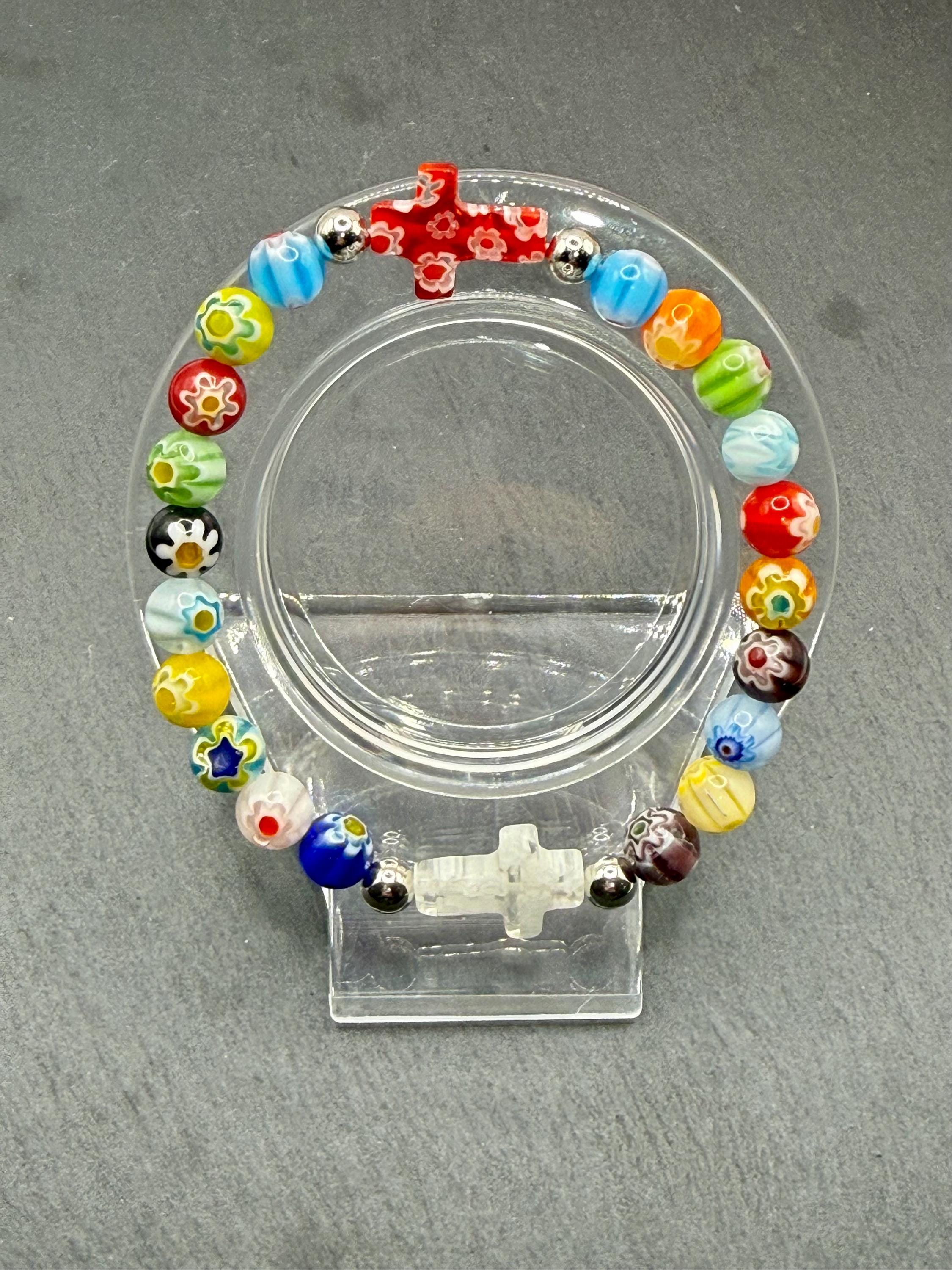 Experience a meaningful blend of artistry and devotion with this handmade 2 decade rosary bracelet, crafted to accompany your daily prayers with grace. Featuring vibrant millefiori glass beads, this unisex faith jewelry is designed to inspire reflection and spiritual connection wherever life takes you. Whether you're seeking a catholic prayer gift or a personal faith gift, this bracelet offers both beauty and purpose.
