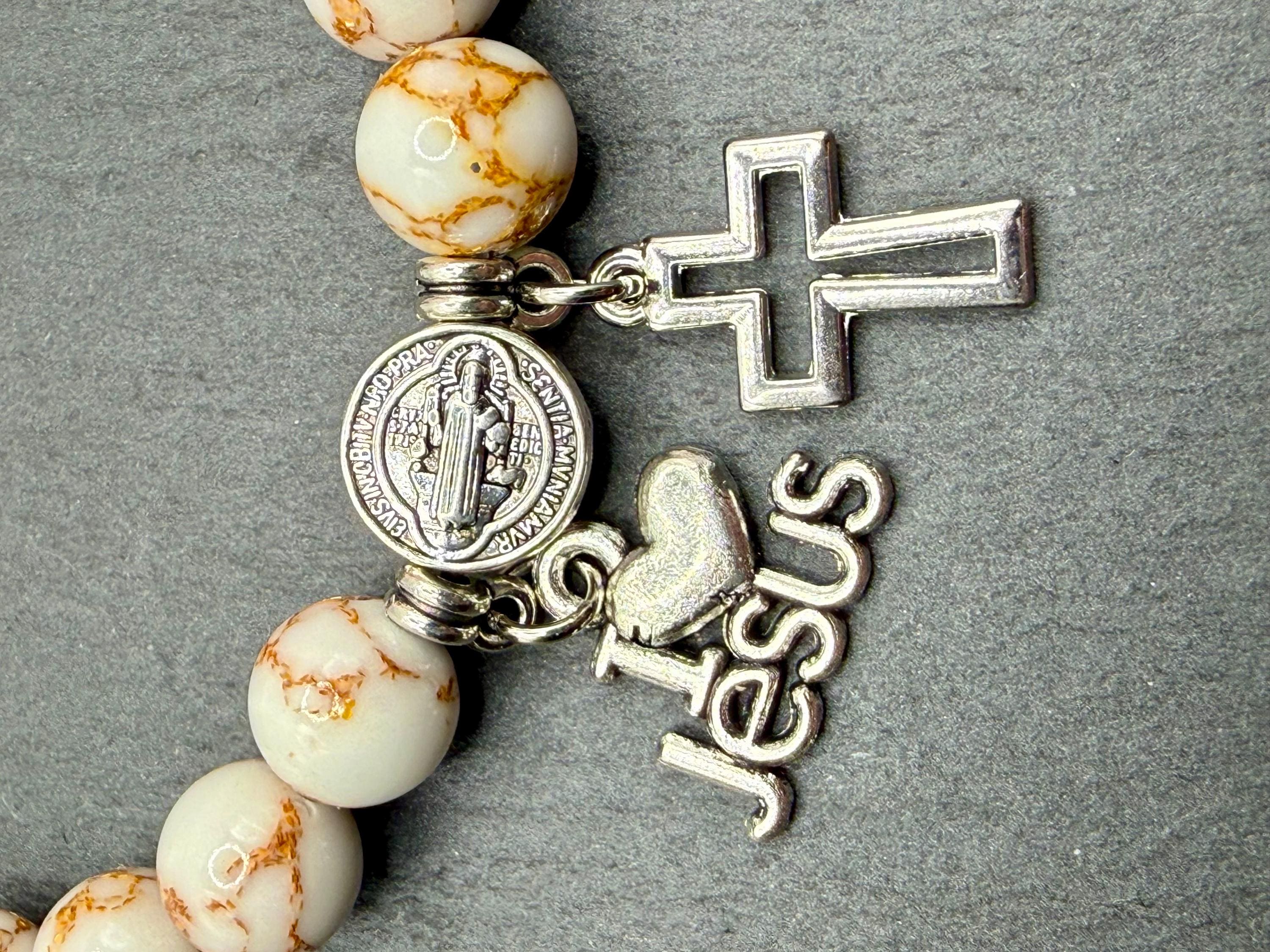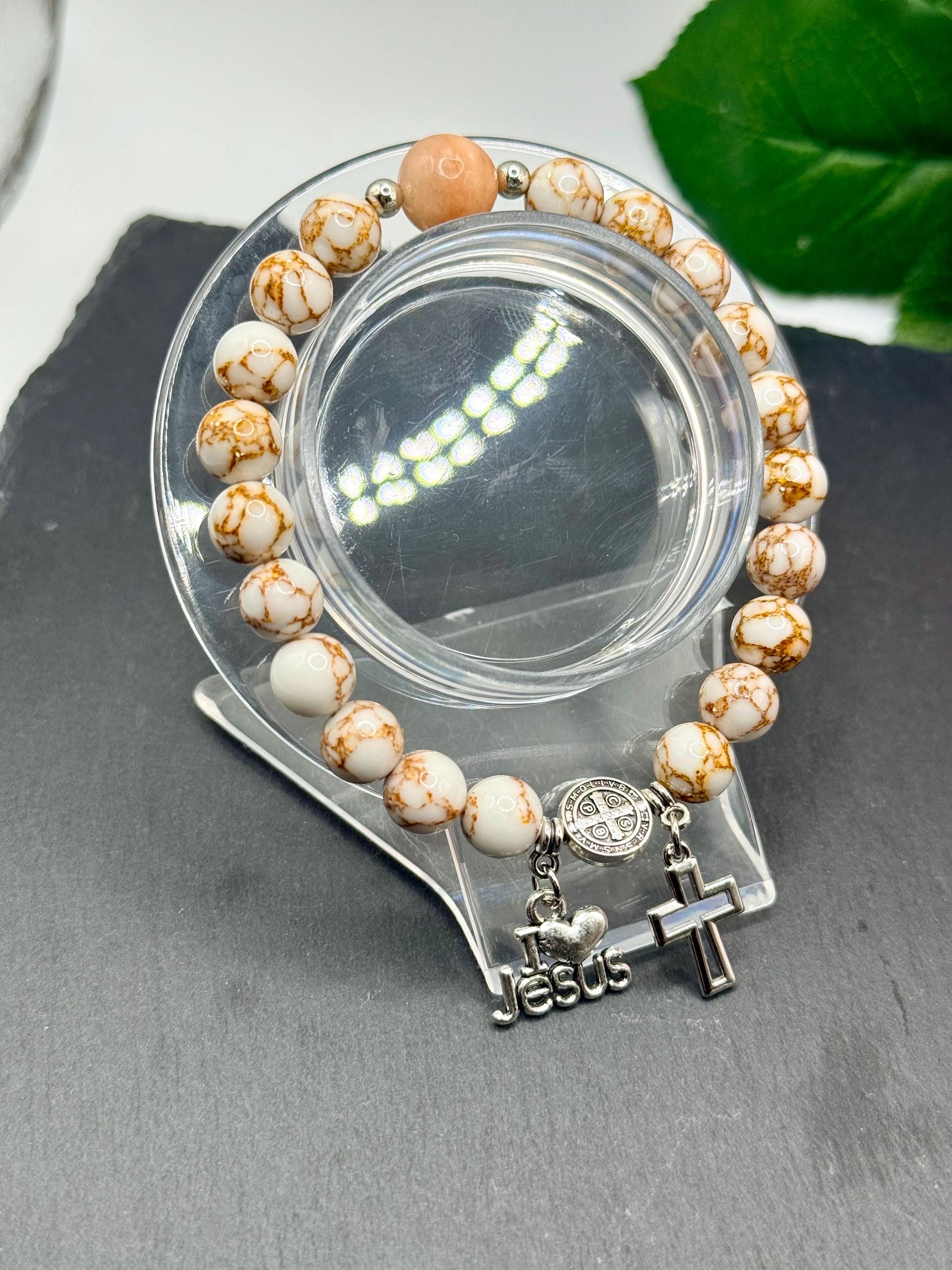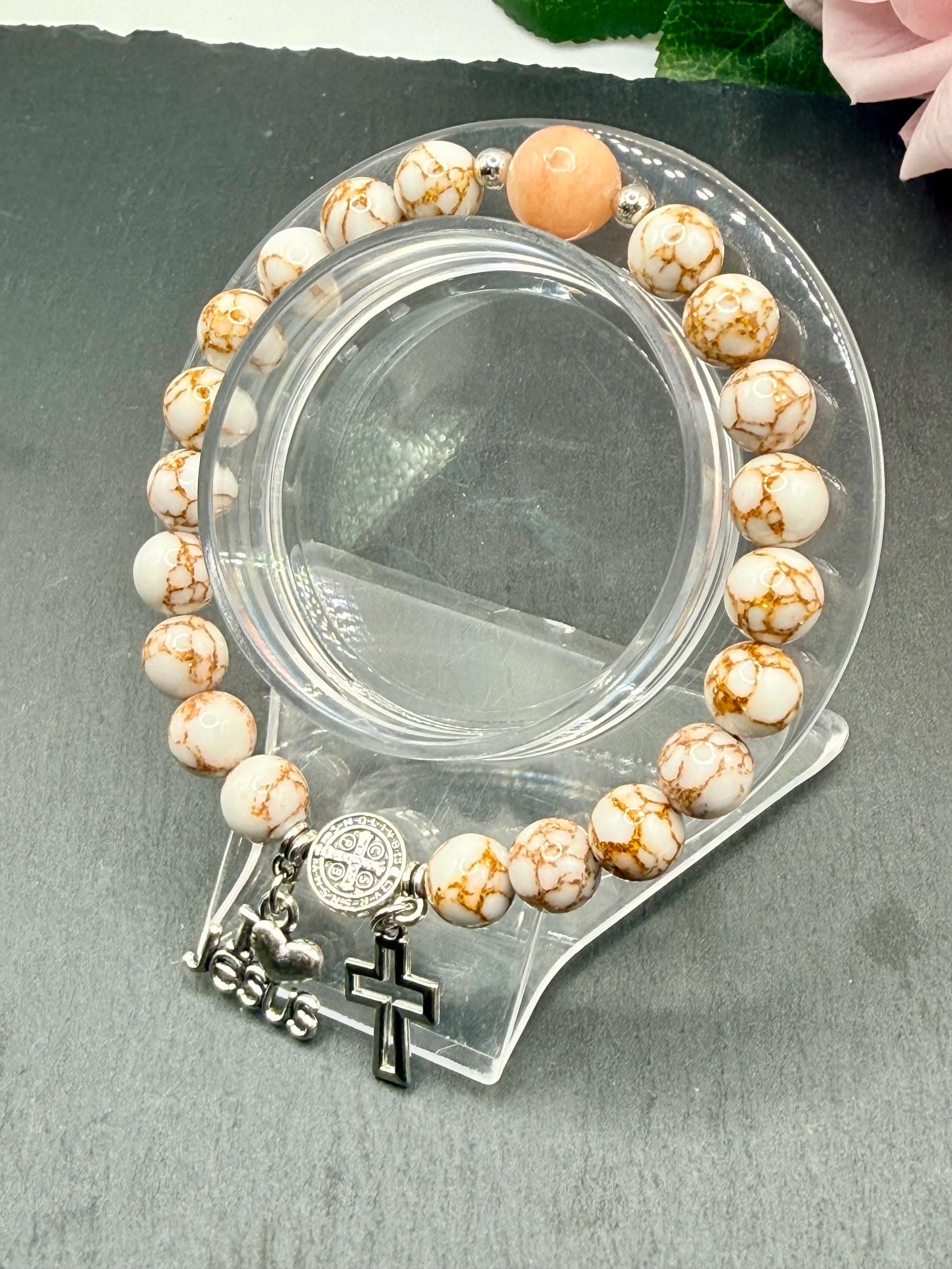 - Includes an opal bead and silver Saint Benedict Father bead for spiritual significance