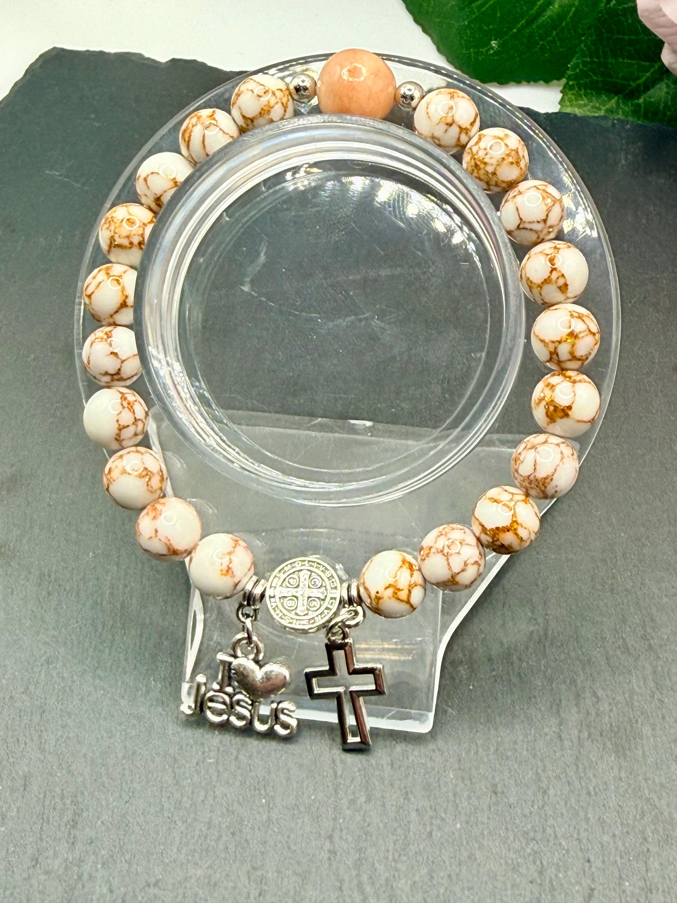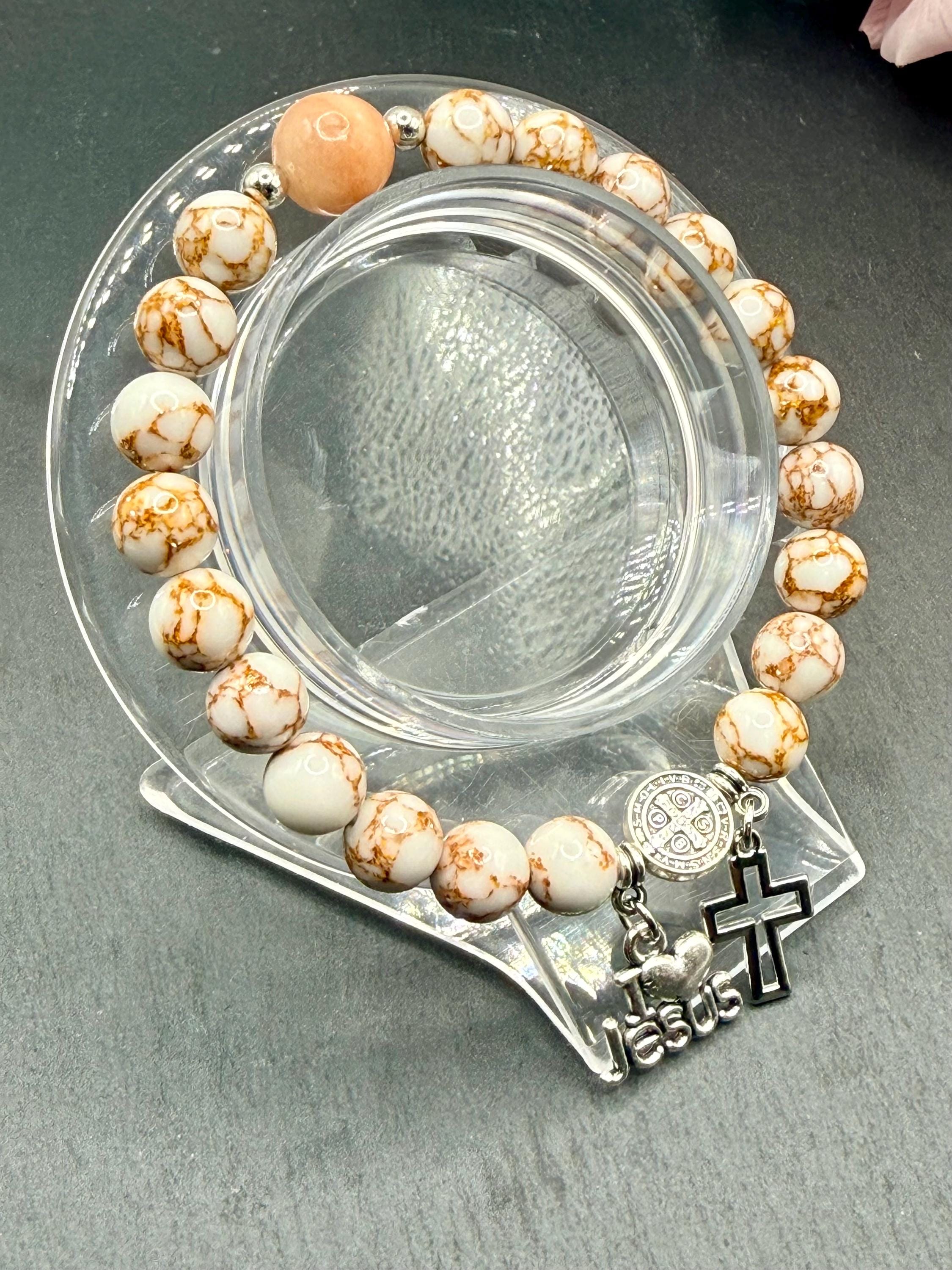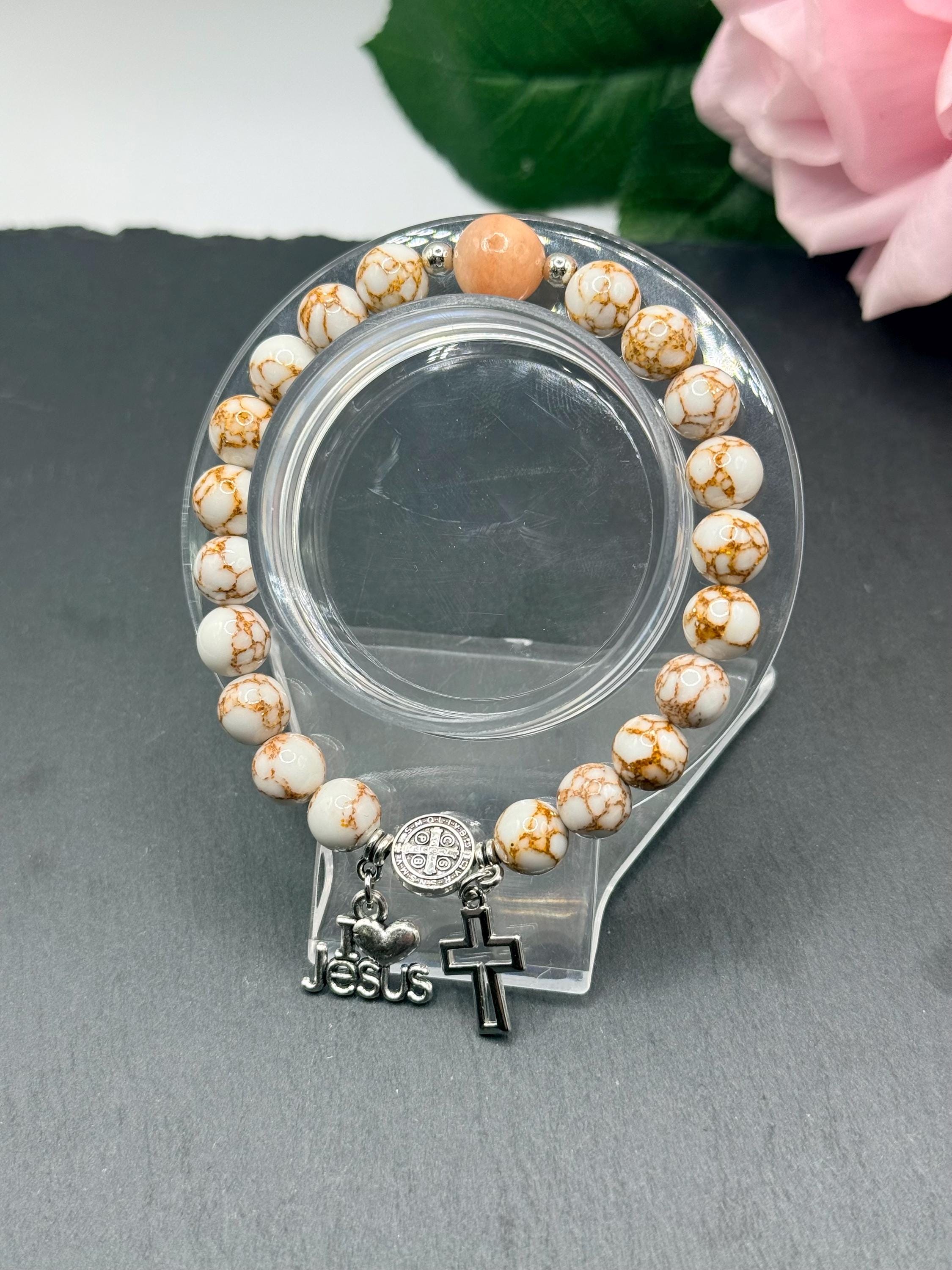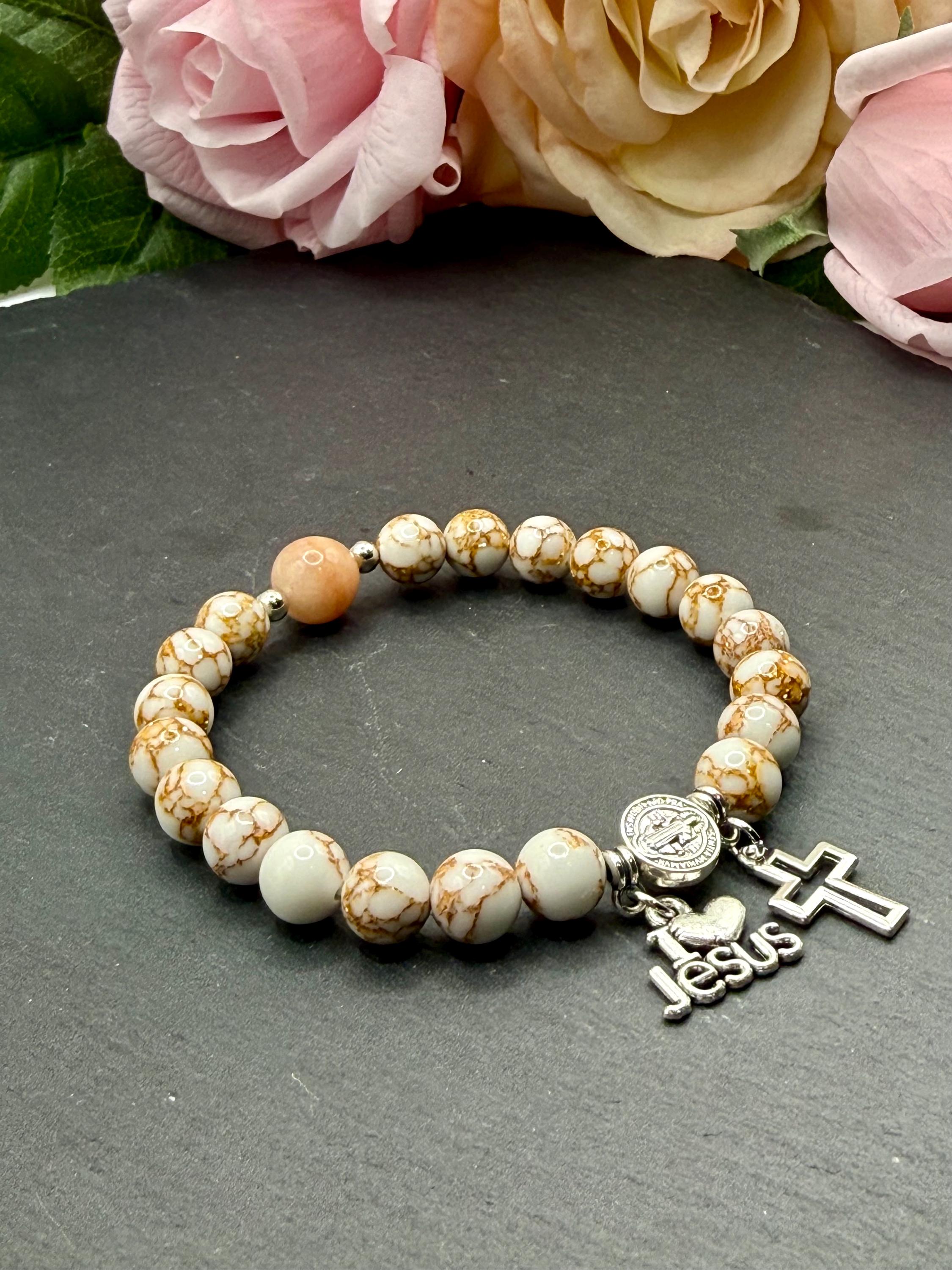 - Includes an opal bead and silver Saint Benedict Father bead for spiritual significance