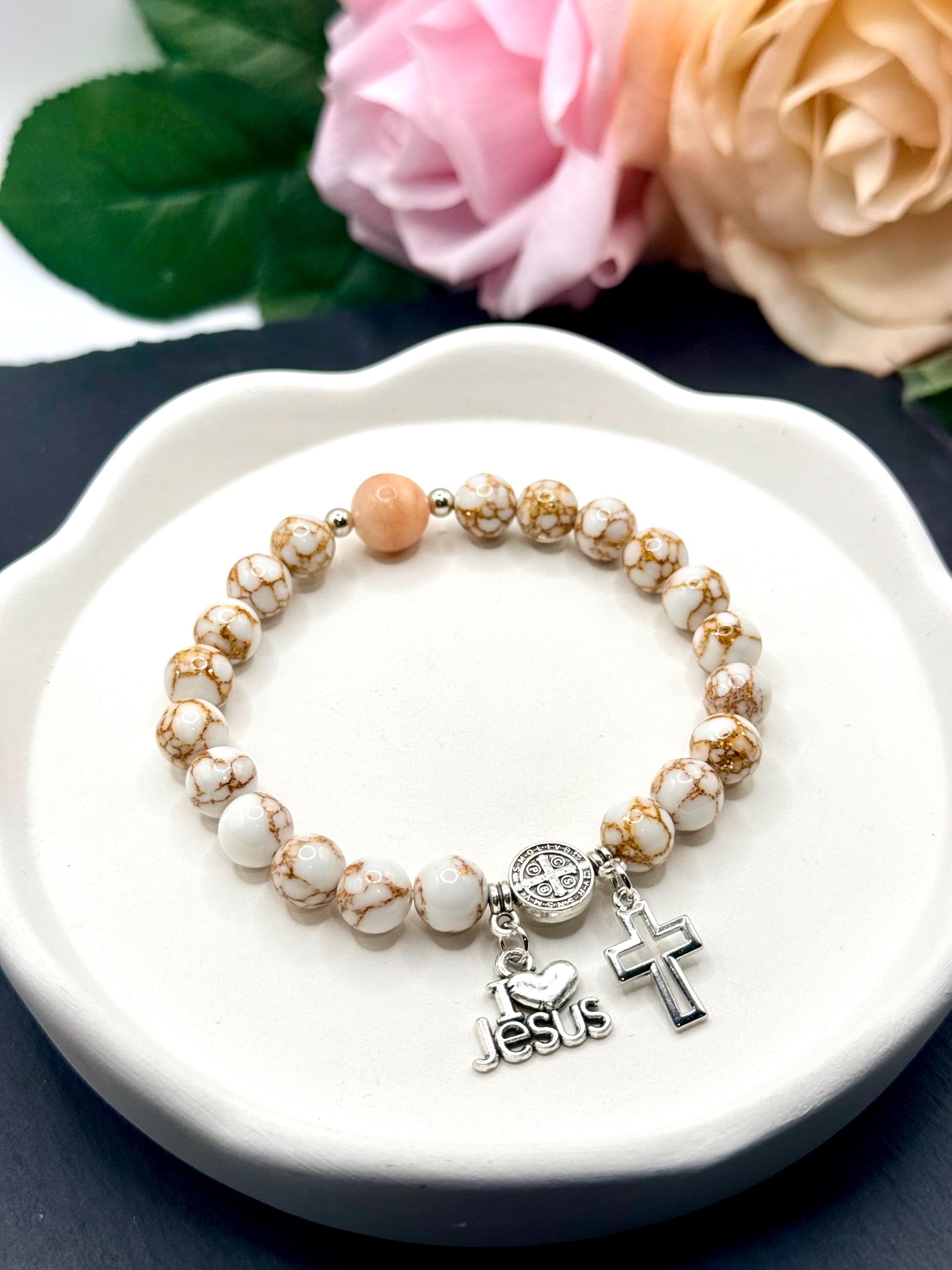 - 2-decade rosary bracelet measuring 6.75" for a comfortable fit