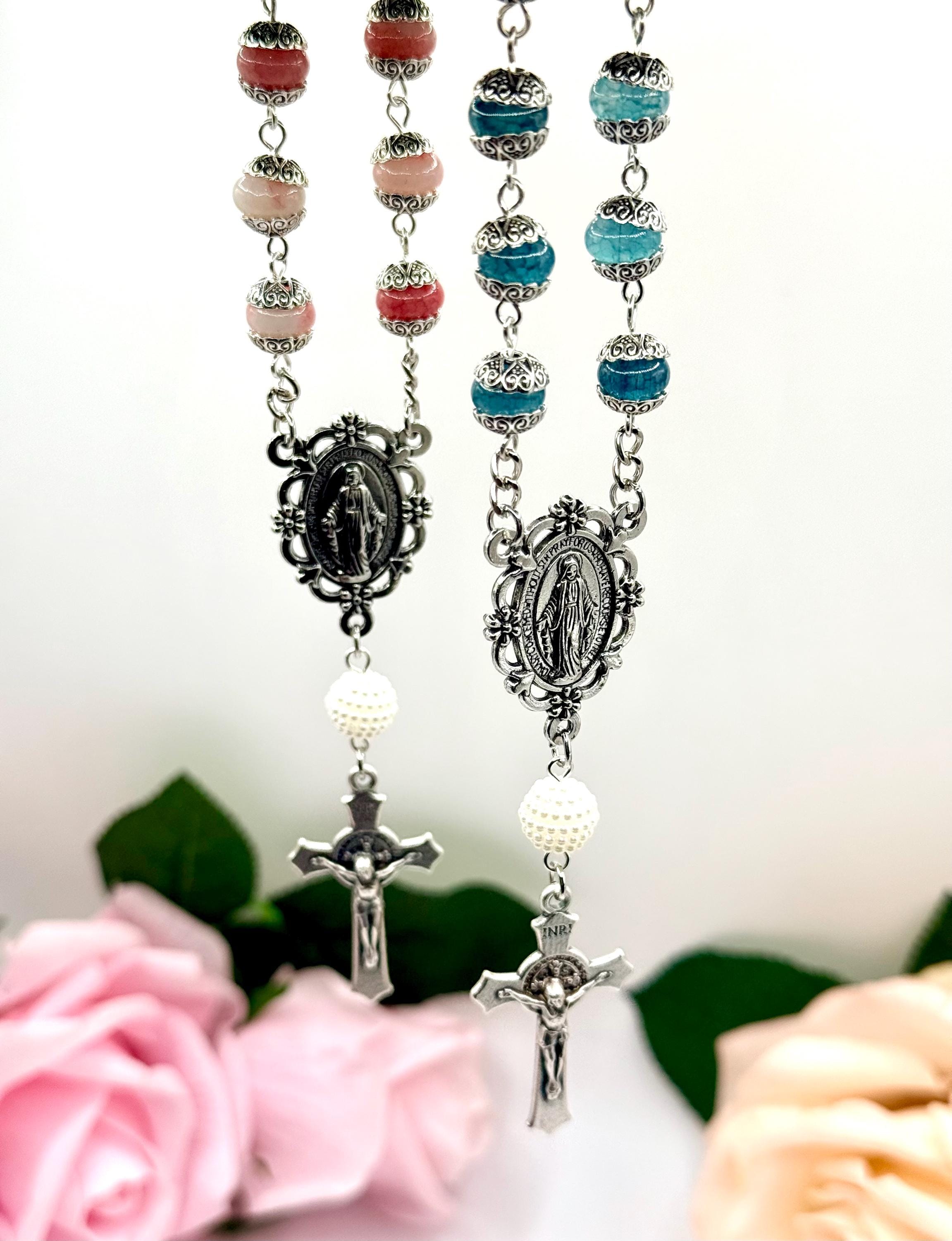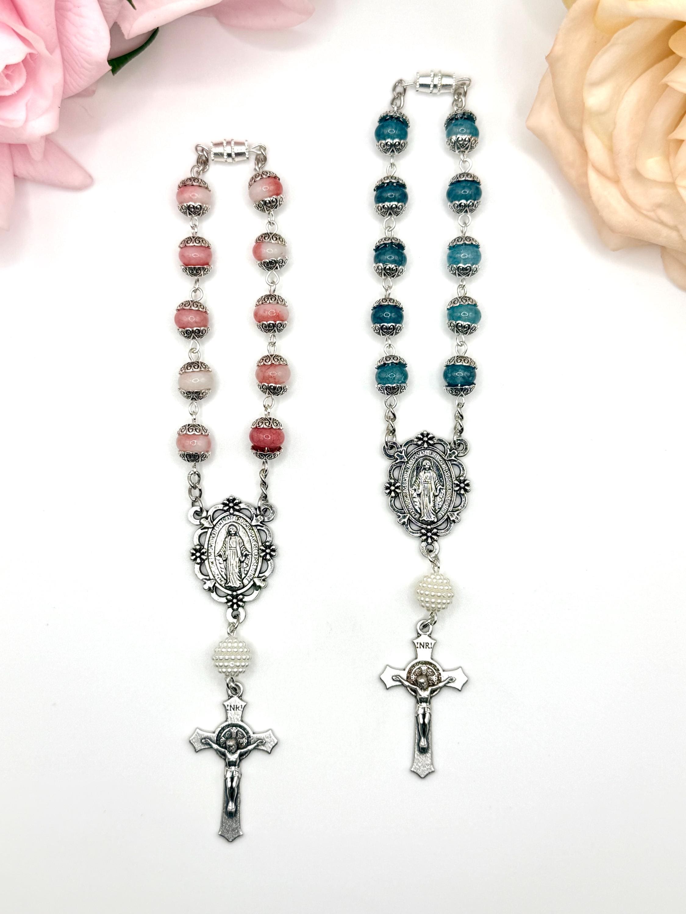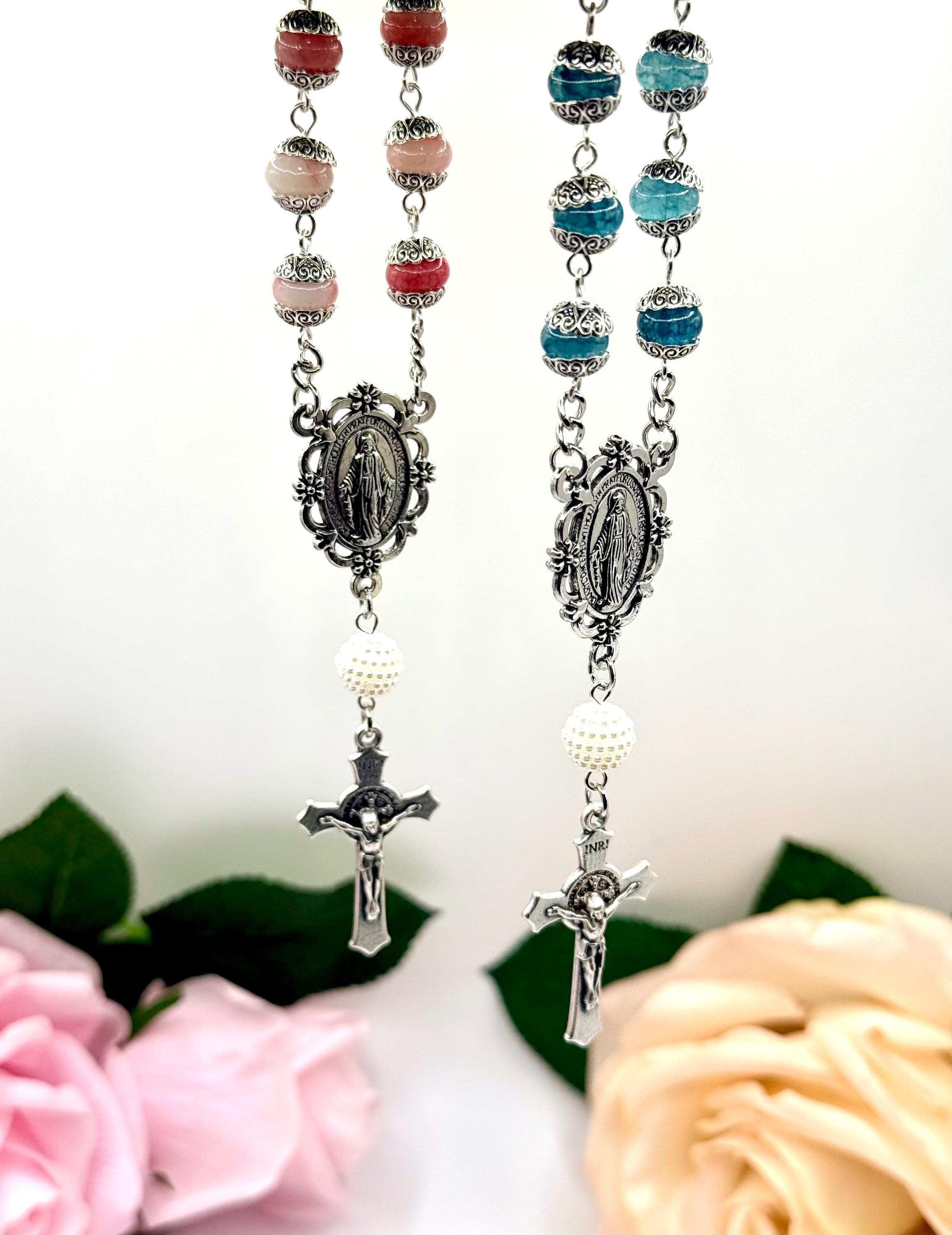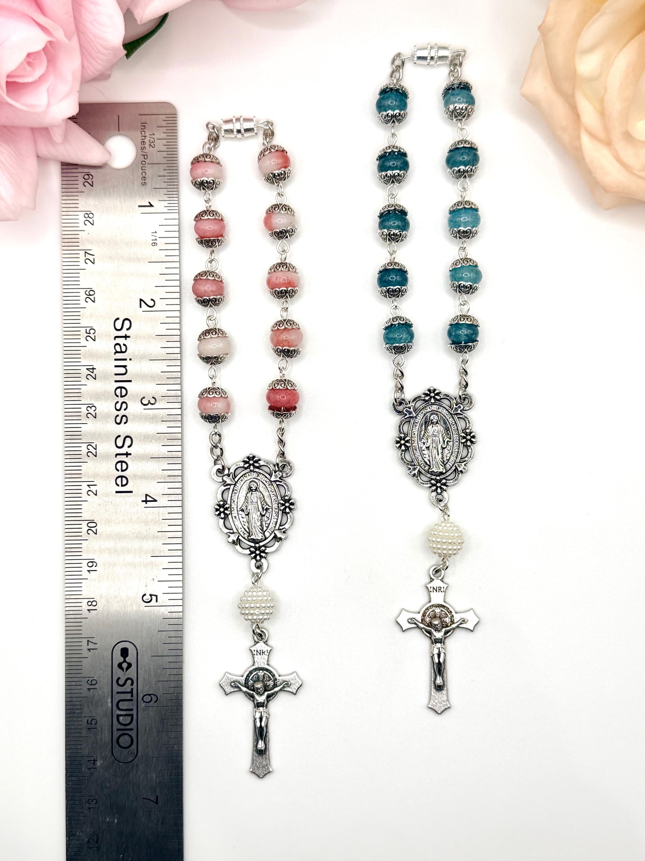 Faith and protection accompany every journey with this handmade car rosary, thoughtfully designed to inspire daily devotion. Crafted with natural stone beads and featuring a Miraculous Medal centerpiece, this compact car rosary blends spiritual significance with durable elegance. Whether adorning your vehicle or given as a faith travel gift, it serves as a meaningful symbol of prayer and grace.