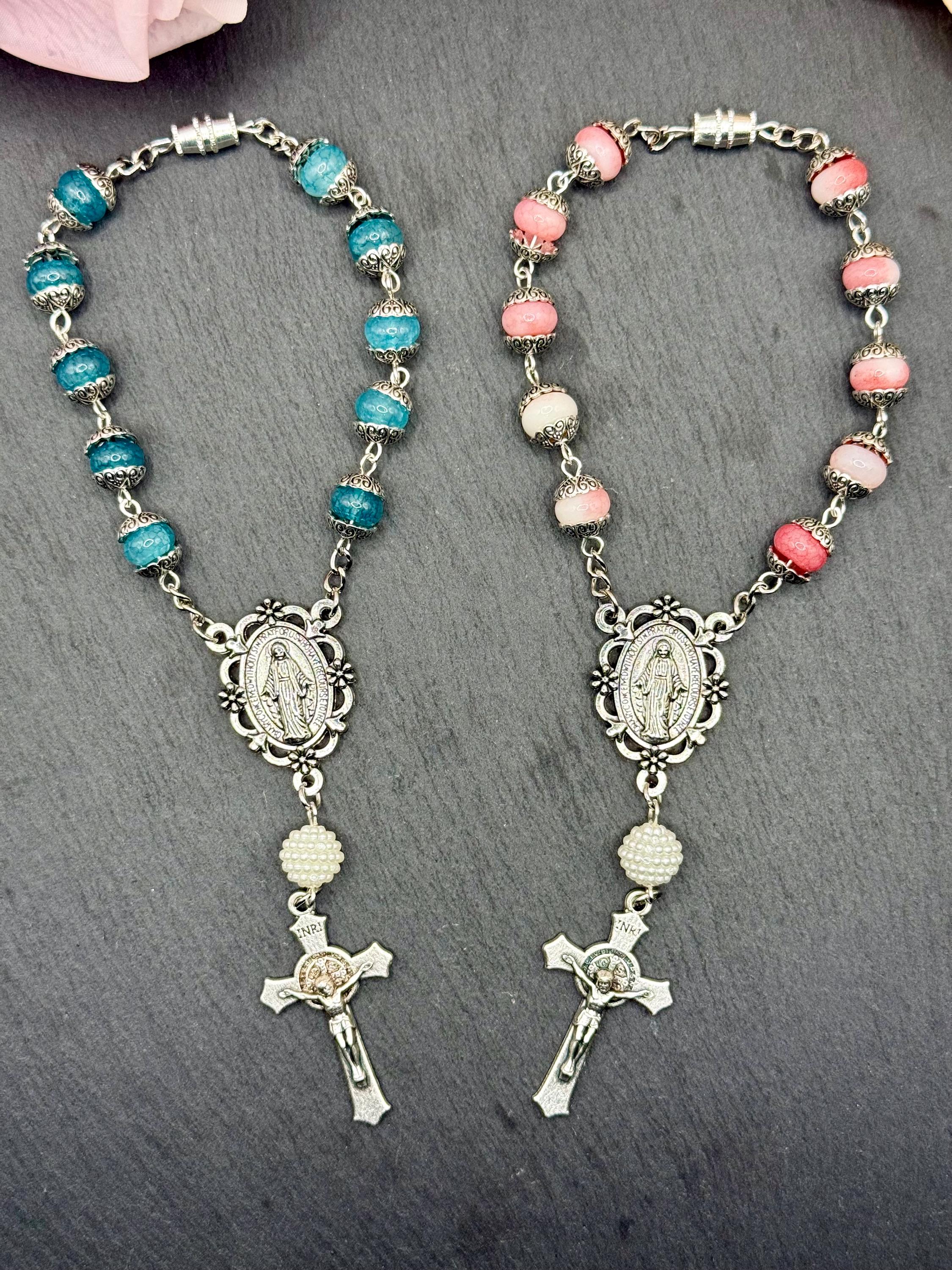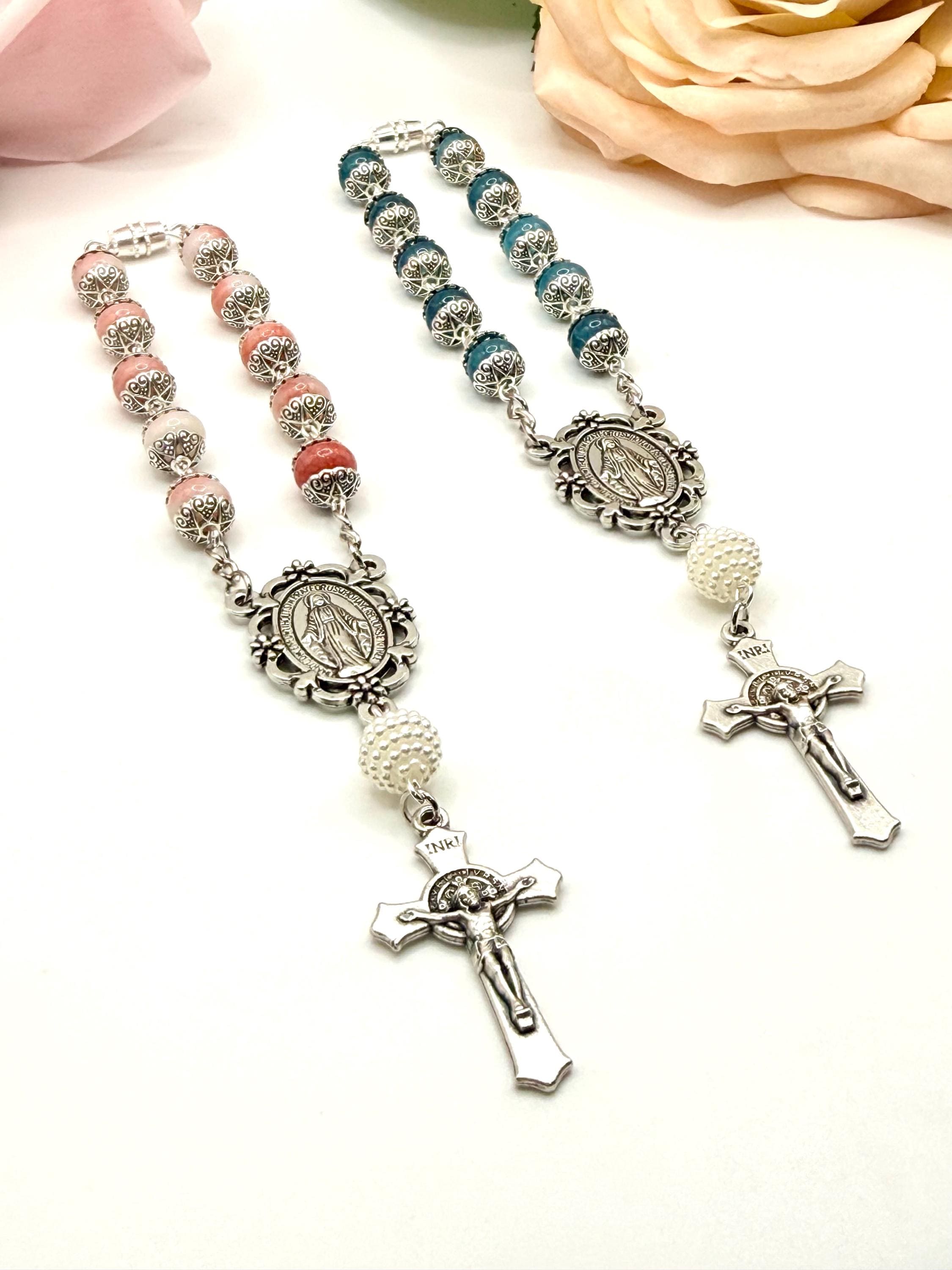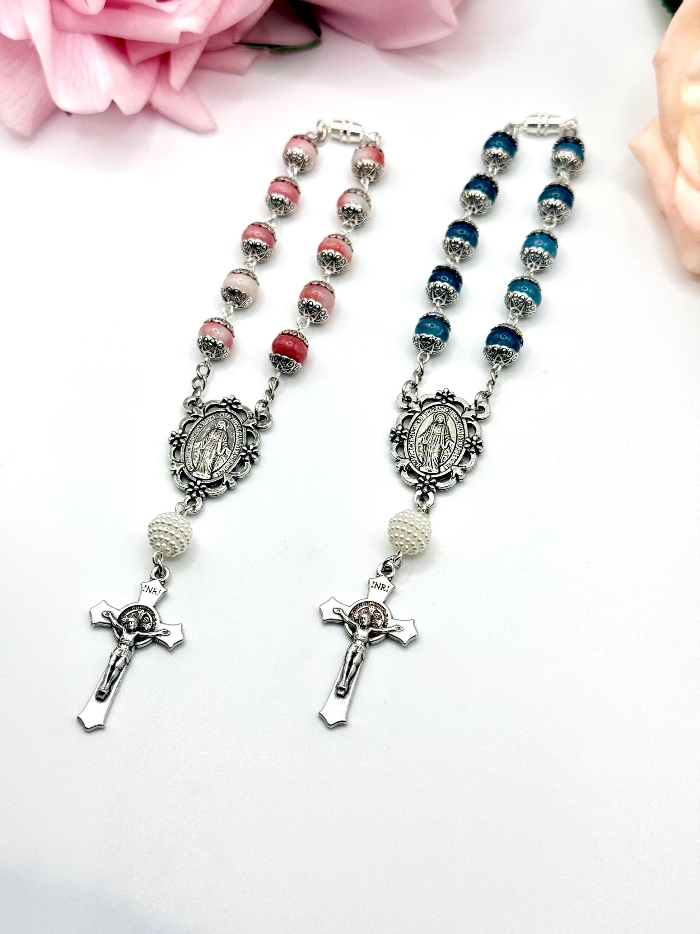 Faith and protection accompany every journey with this handmade car rosary, thoughtfully designed to inspire daily devotion. Crafted with natural stone beads and featuring a Miraculous Medal centerpiece, this compact car rosary blends spiritual significance with durable elegance. Whether adorning your vehicle or given as a faith travel gift, it serves as a meaningful symbol of prayer and grace.