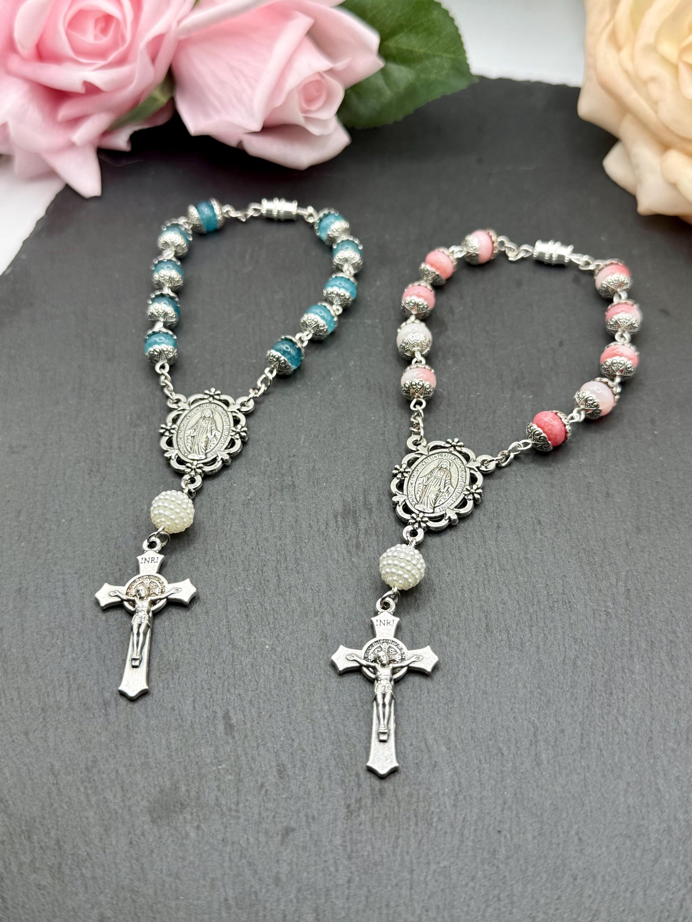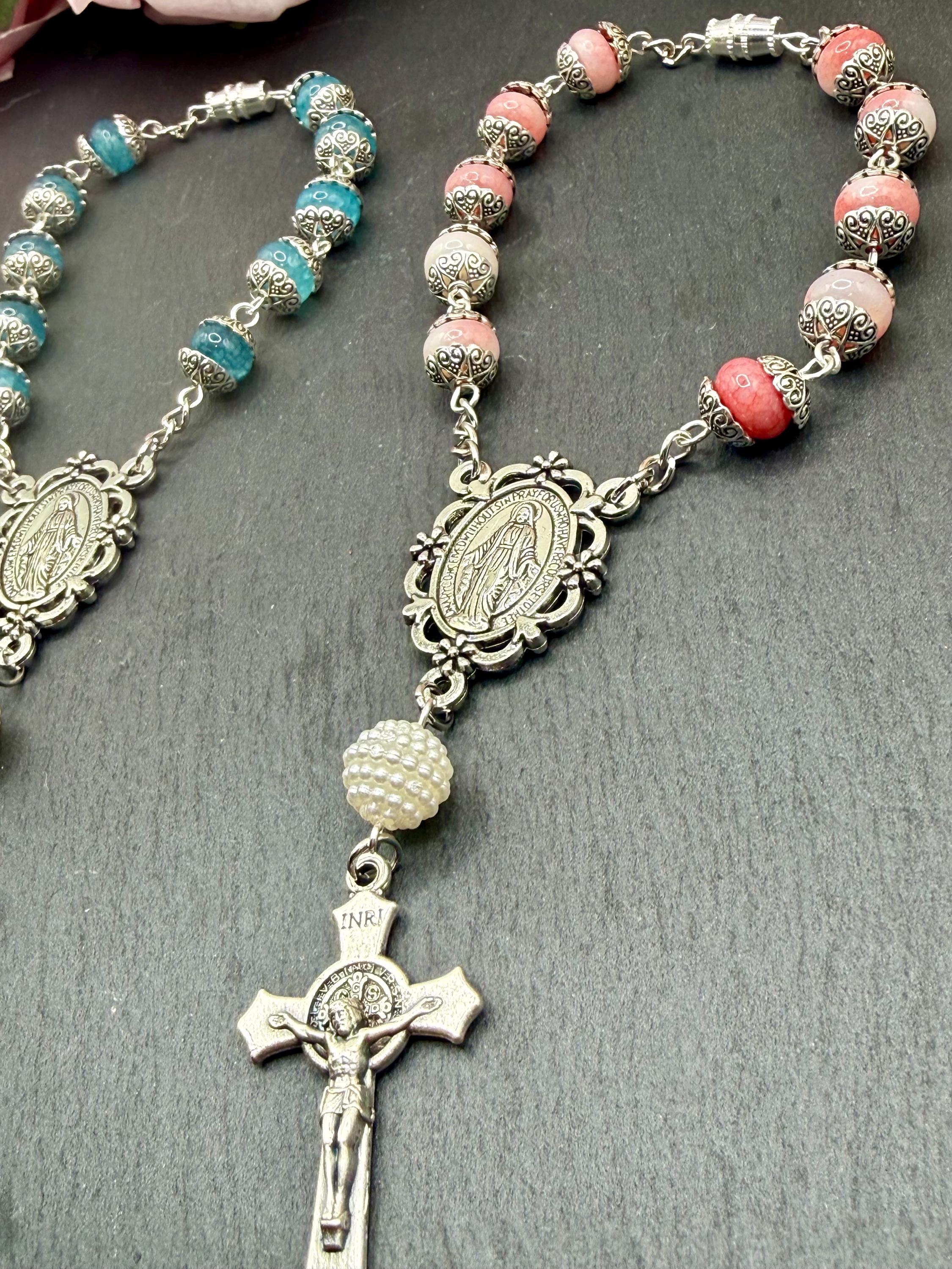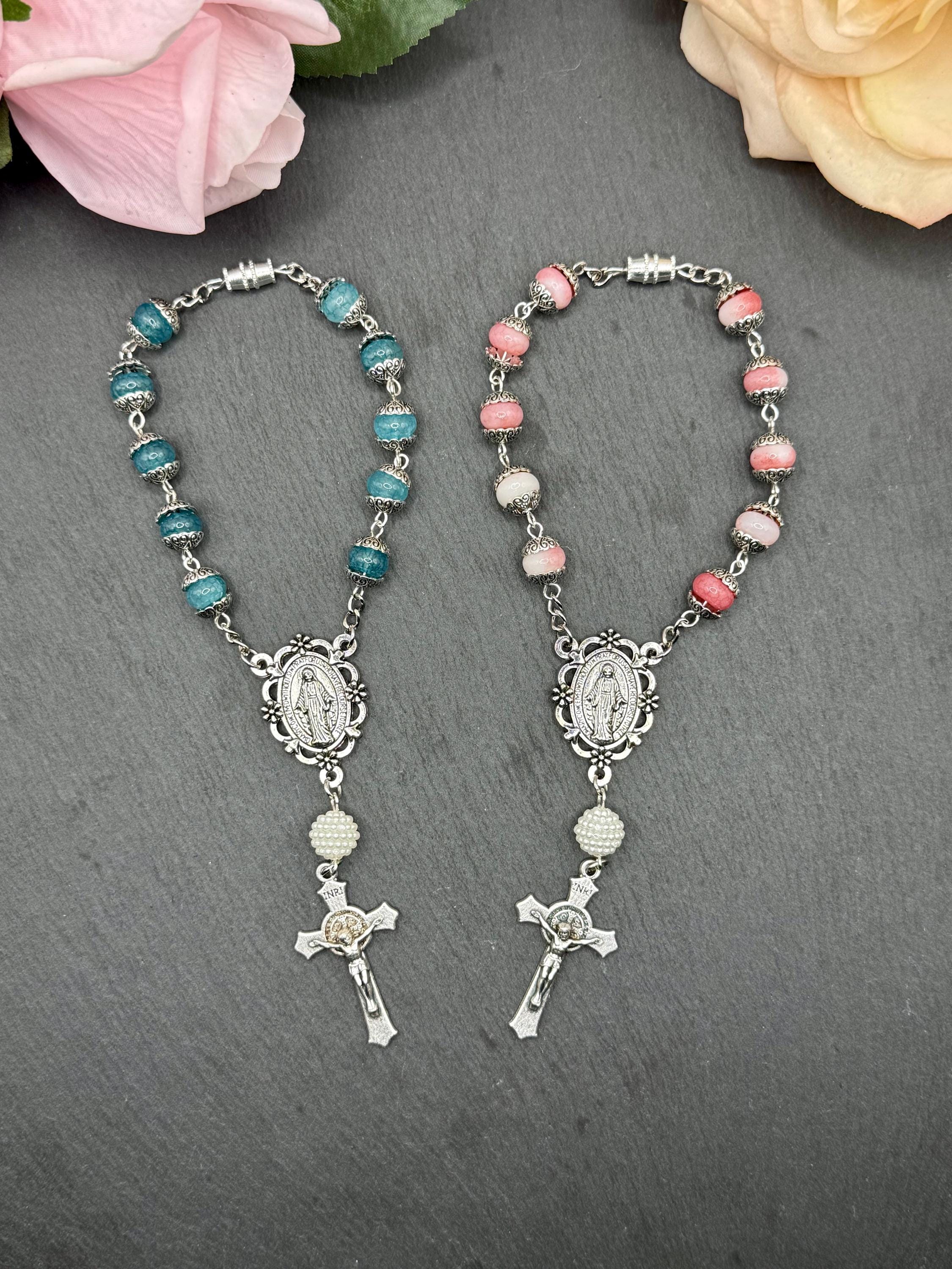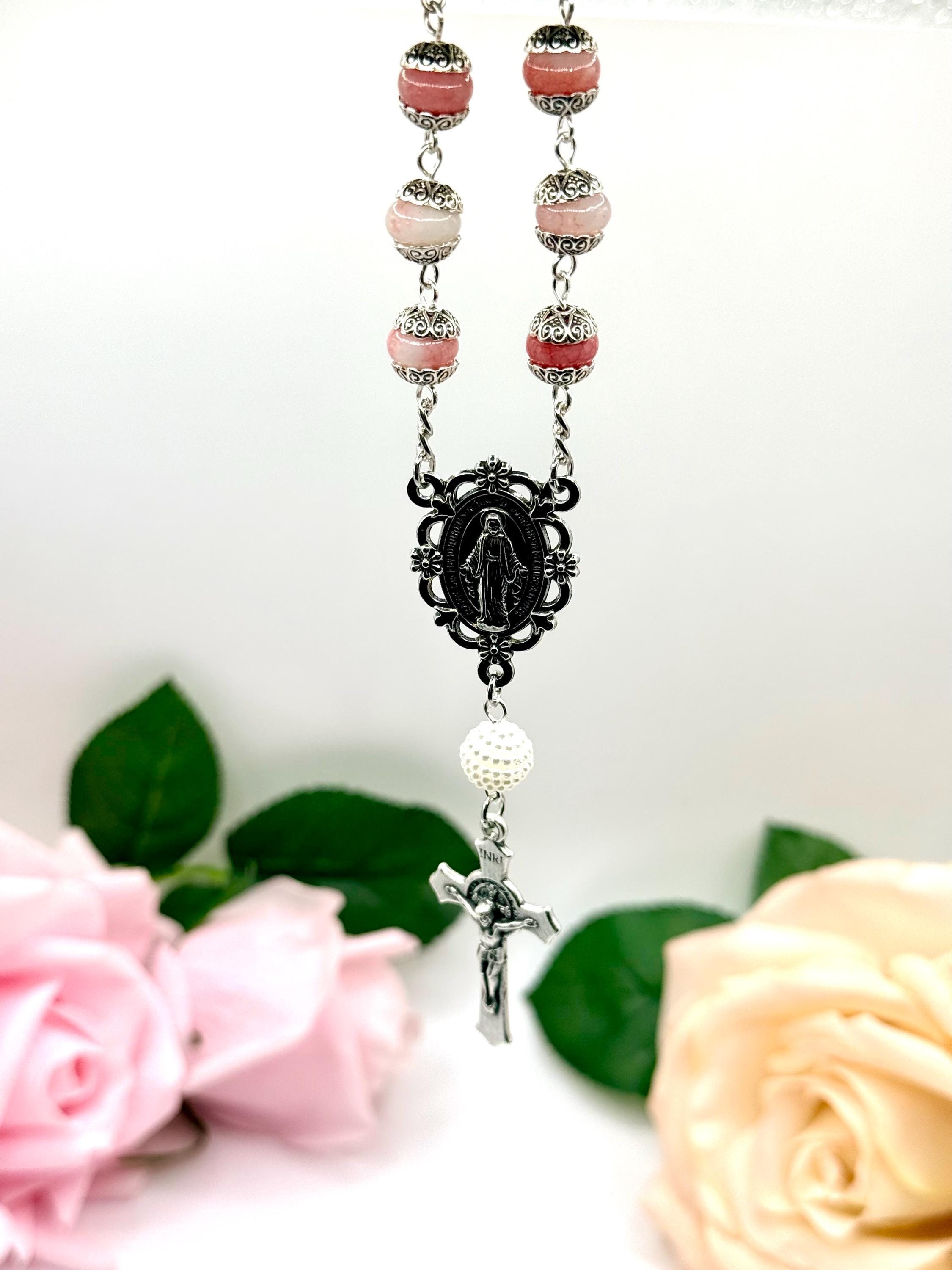 Faith and protection accompany every journey with this handmade car rosary, thoughtfully designed to inspire daily devotion. Crafted with natural stone beads and featuring a Miraculous Medal centerpiece, this compact car rosary blends spiritual significance with durable elegance. Whether adorning your vehicle or given as a faith travel gift, it serves as a meaningful symbol of prayer and grace.
